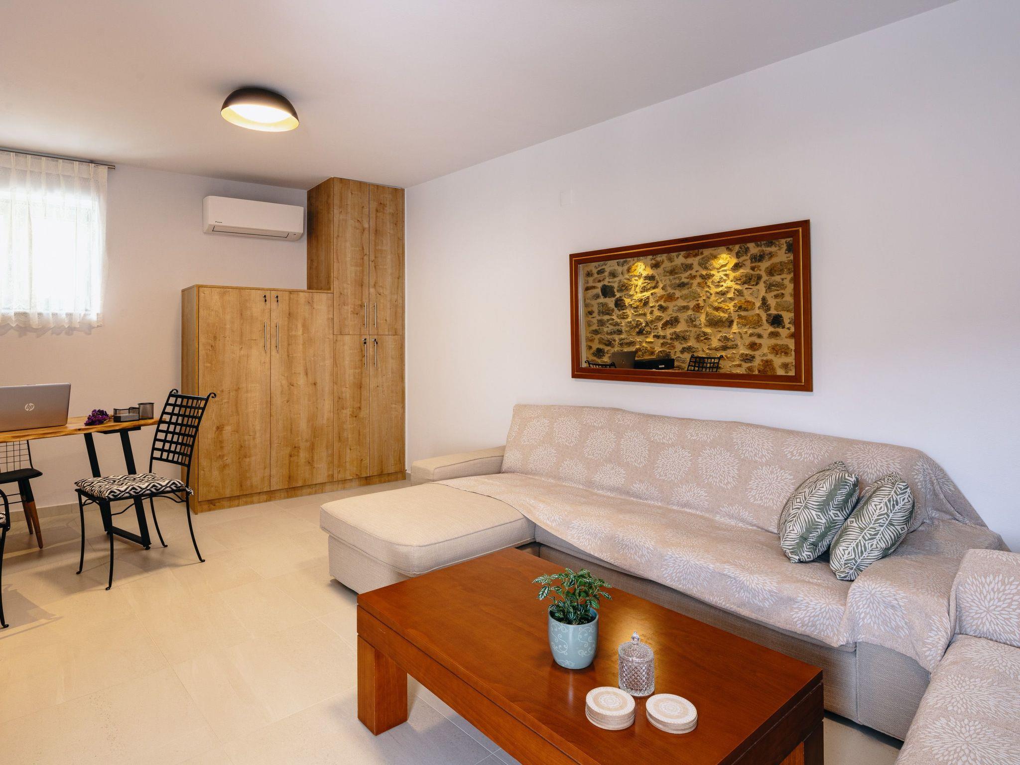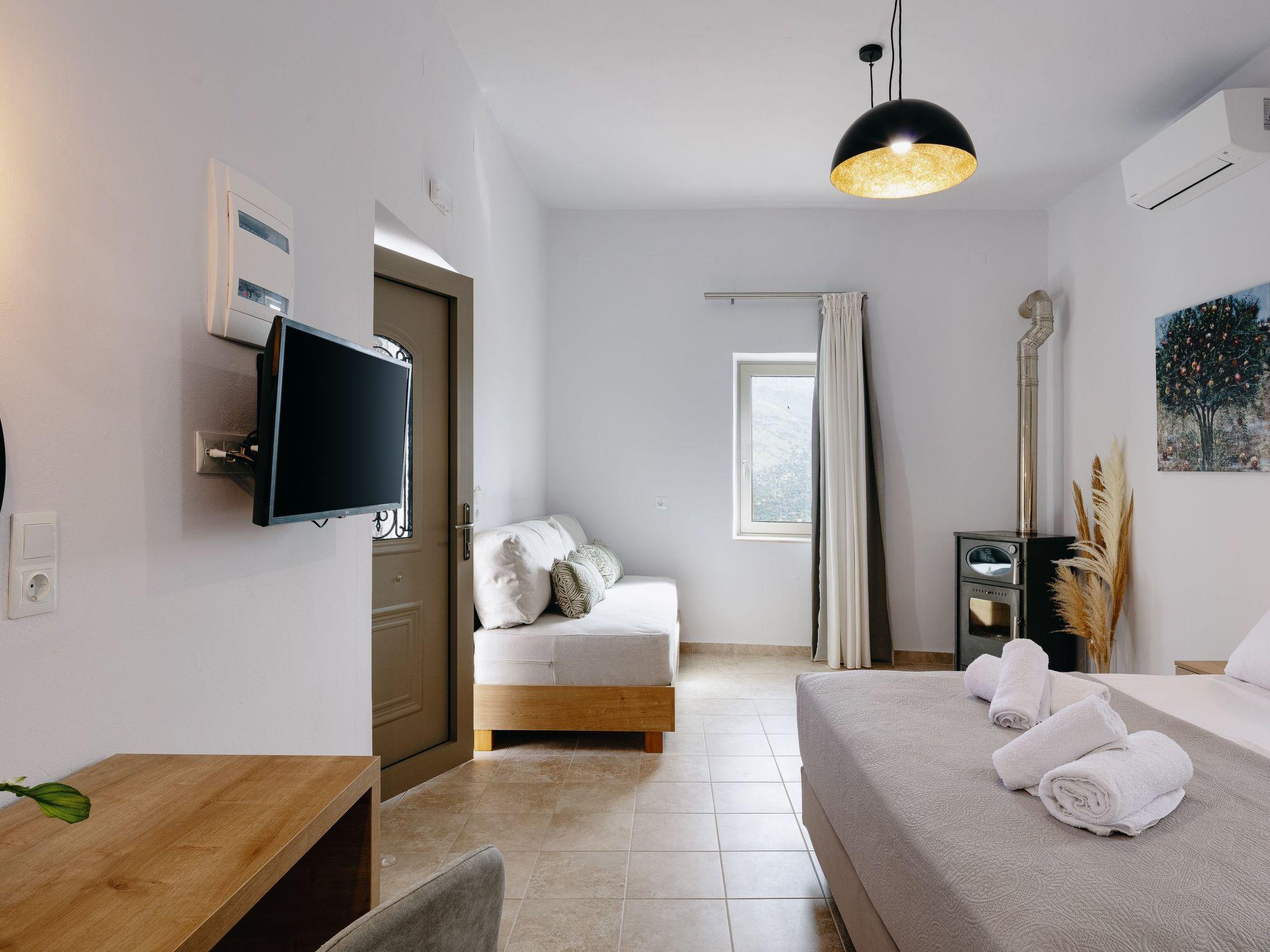 Orne's picturesque surroundings are complemented by the villa’s strategic location on the outskirts of Rethymno. This positioning allows easy access to explore the broader region, take leisurely walks through the historic village, and engage with the land’s rich history and culture. The close proximity to the village of Krya Vrysi also opens up further avenues for local exploration, ensuring visitors have a truly immersive experience in this unique part of Crete.