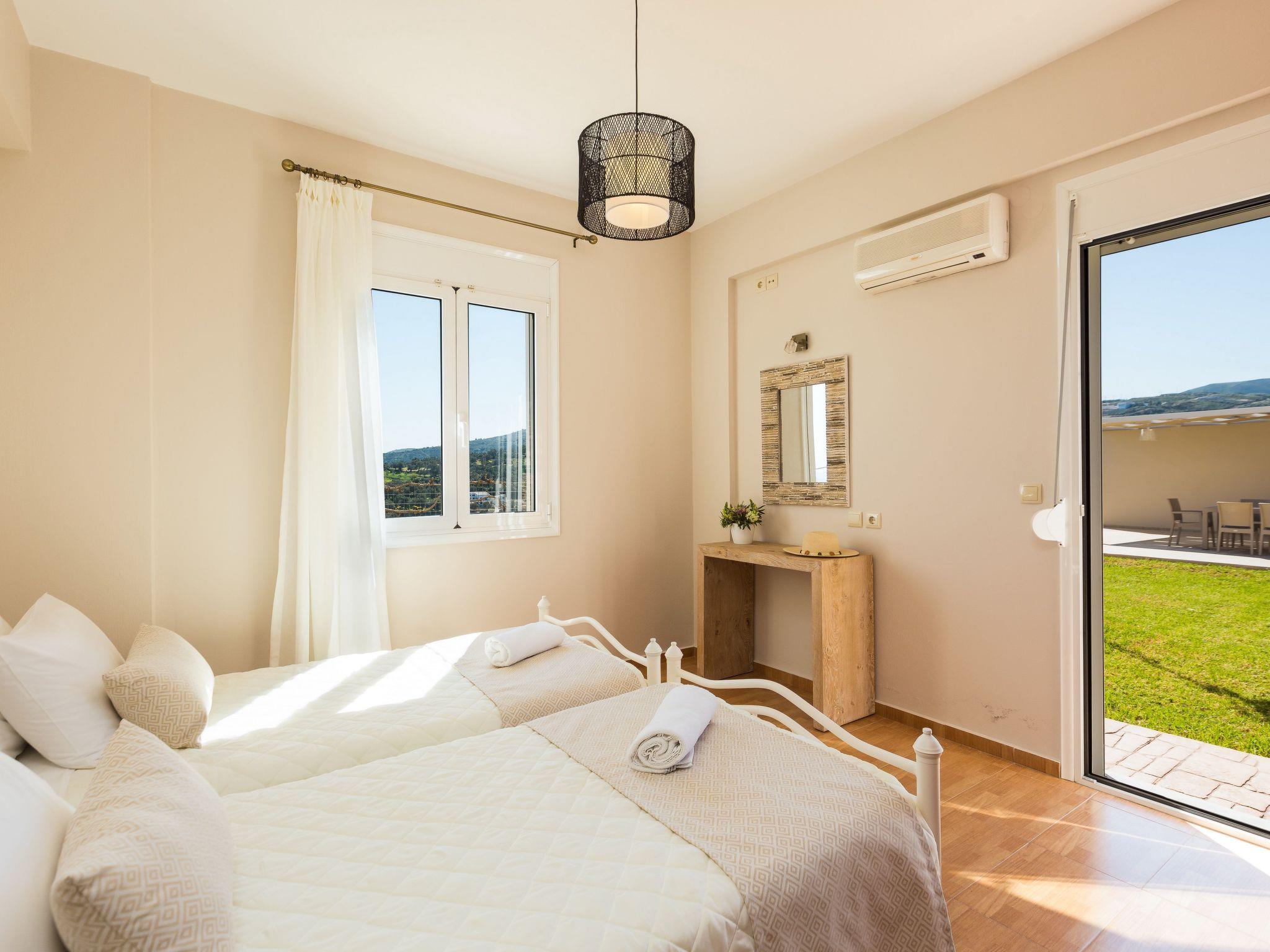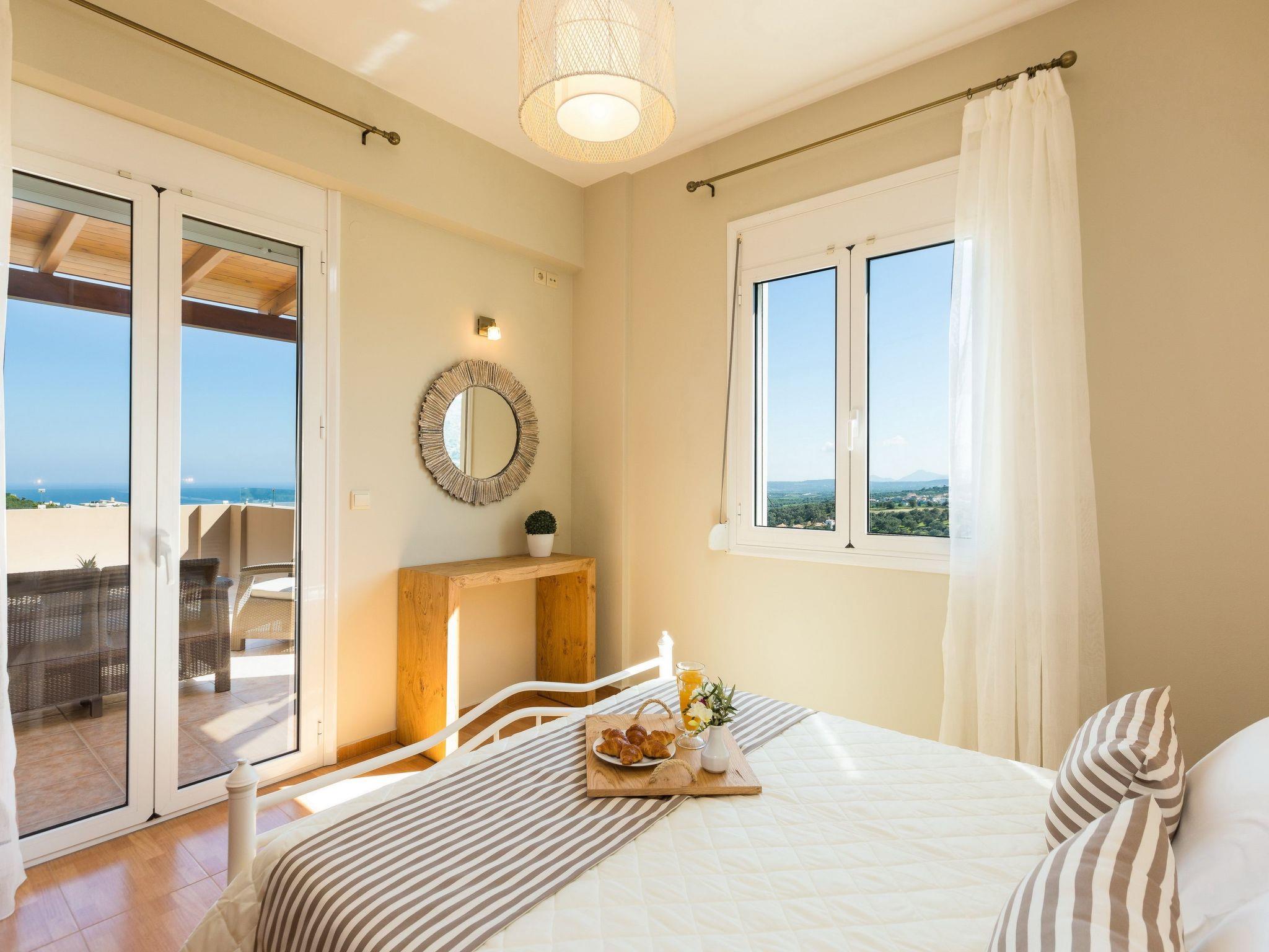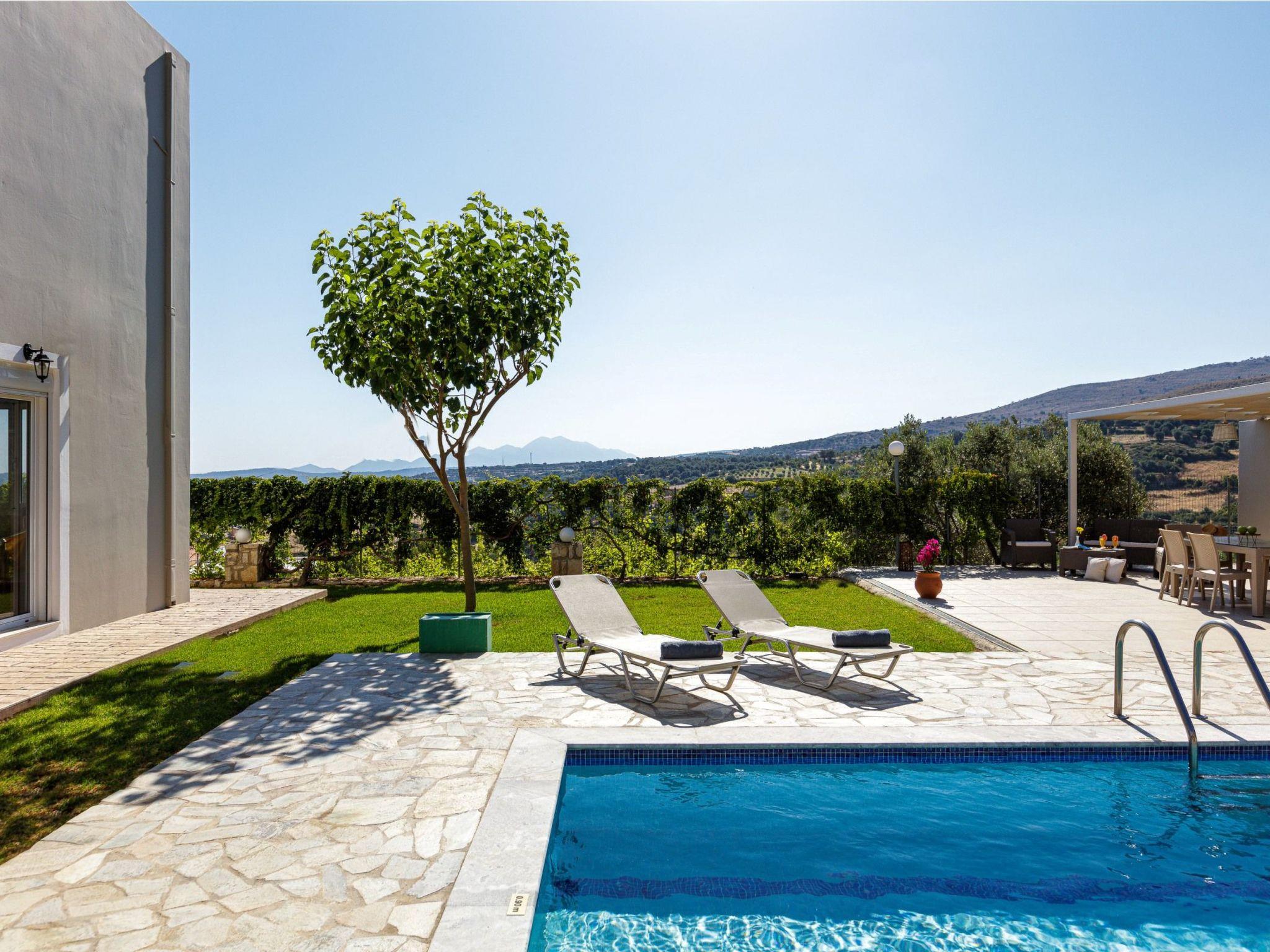 Nefeli Villa is a recently constructed holiday house in accordance with the traditional values offering modern standards, so there are lots to take in. The villa’s indoor and outdoor spaces have all the ingredients you could want for relaxing days and nights in the sunny island of Crete. Fancy taking a dip and cooling your body in the water on a hot, sunny day? Maybe a BBQ for friends and family? Not a problem, there's a 25m2 private swimming pool to revitalize yourself, plus an outdoor patio area for food, drinks and chatting with your family or friends. A large part of the terrace is covered by lawn, making it a great spot for your yoga or meditation practice, with uninterrupted views.Indoors, the first level is consisted by the living room, as well as an open fireplace and a well-equipped kitchen with a dining table. Few steps away you will find the twin bedroom and a bathroom. The other two bedrooms are located on the second level; each of them features a double bed and has access to a balcony with amazing views.Nefeli Villa is also good value for the location given; it has a private pool, surrounded by a spacious 370 m2 outdoor terrace and unobstructed views that costs a fortune. You can appreciate the stunning views of the countryside and coast from your own villa, as well as a glimpse of the vast sea.