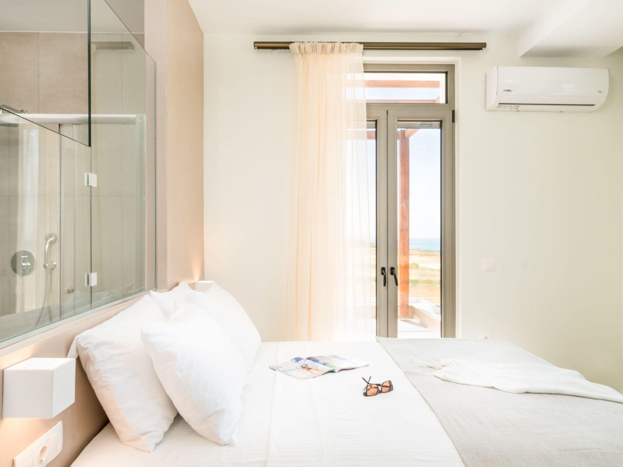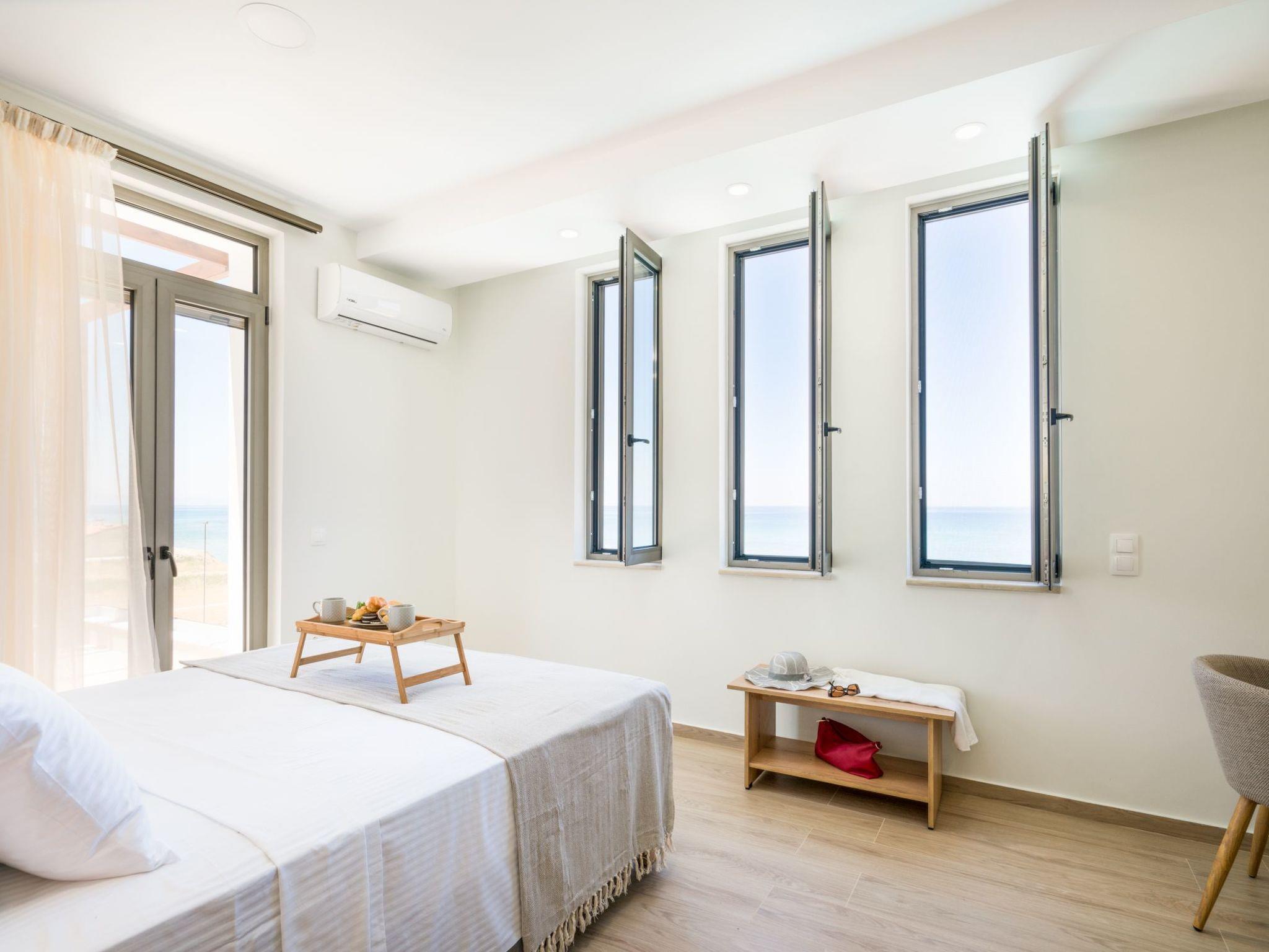 Brand new Beachfront villa ‘’Nymphes’’is a complex of 2 independent houses, which offer modern comforts and a magnificent ambiance to all guests. Each holiday property has a large private swimming pool and a spacious garden with children’s play area in the area of Sfakaki, 9 km from Rethymno. Enjoy the sea views while seated on the outdoor furniture or on the grass next to the large 40 sq meter private swimming pool. All bedrooms have en suite bathrooms and private balconies with breathtaking views. Within a close distance you can find many restaurants to enjoy a big variety of Cretan delicacies.