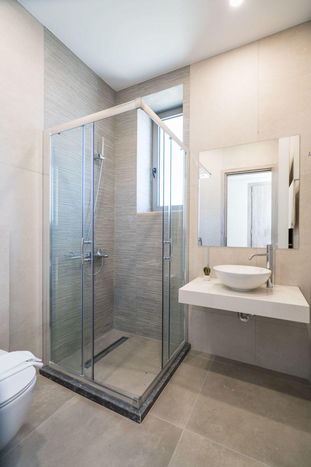 Floors Layout: -Lower Ground floor: Storage & Laundry Room - Ground floor: living room, kitchen, dining area, bathroom, double bedroom in each villa. - First floor: 1 twin bed bedroom with ensuite bathroom and private balcony, 1 double bedroom with ensuite bathroom and private balcony in each villa.