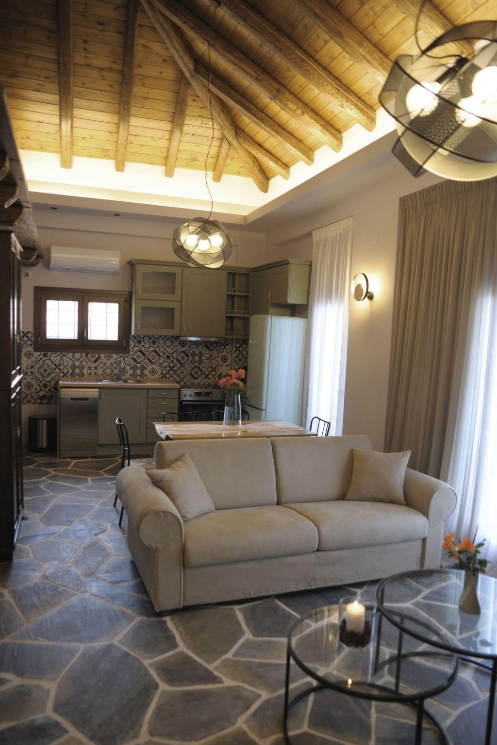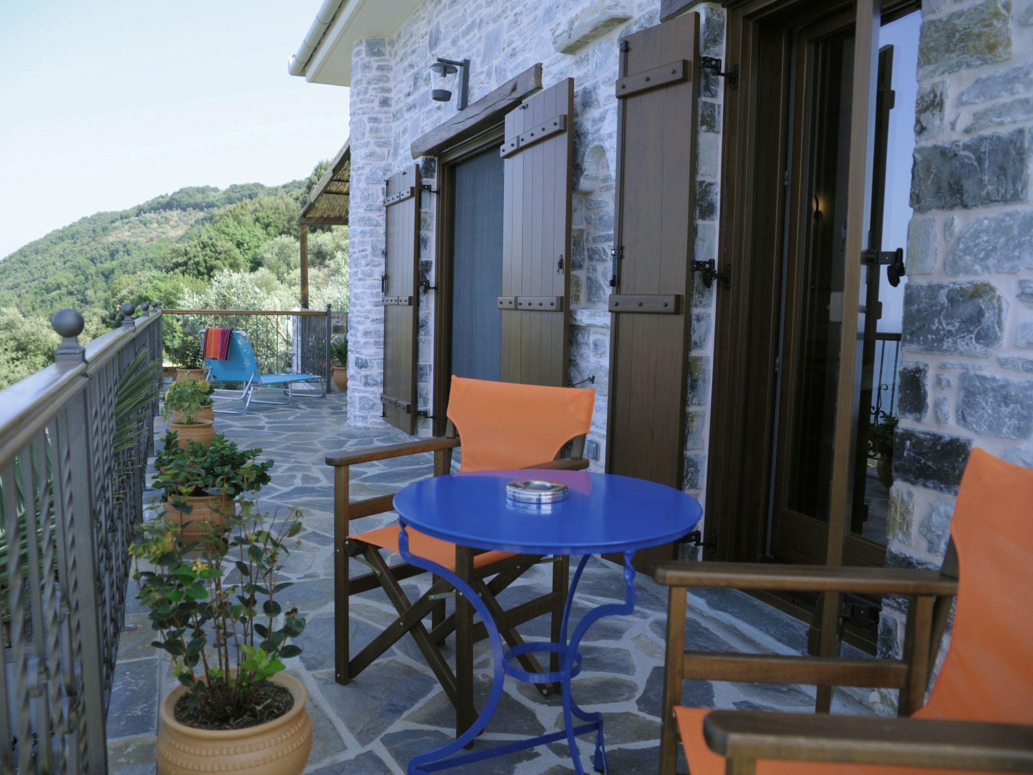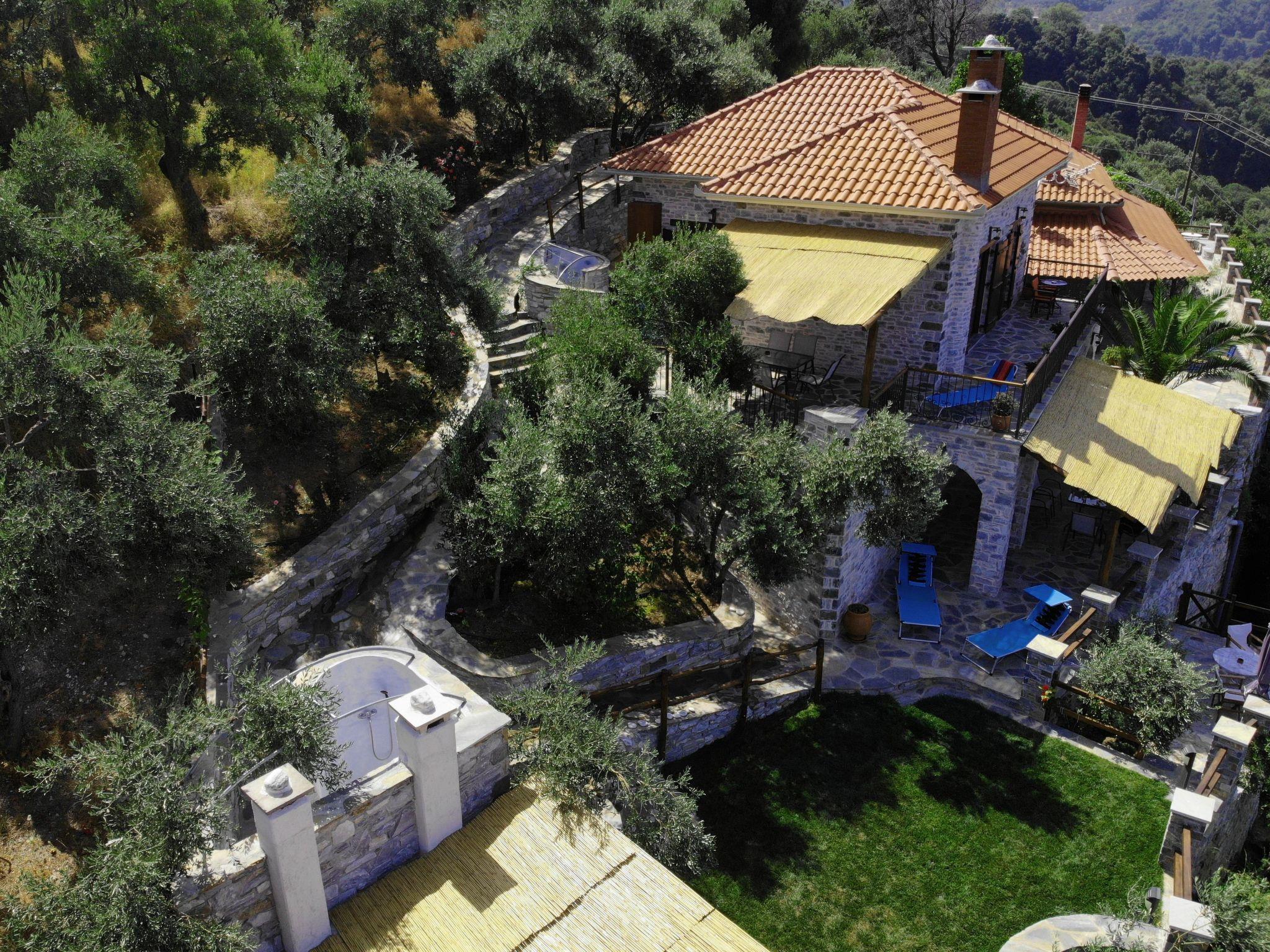 The villa is built of stone in 2021 in the foothills of Pelion, Greece. It is surrounded by green mountains and at the same time 2 km from the transparent Aegean Sea. The climate is very pleasant even when it is very hot. The view is of the sea and the mountain. From the villa there are hiking trails in the mountain where the fauna is very varied and very beautiful. In the surrounding area there are several small villages characteristic of Pelion with small restaurants ( Greek taverns ) where you can try tasty, traditional local dishes. The beaches are clean and equipped to satisfy even the most demanding travellers. You can visit small coves and swim in the transparent waters away from many people.