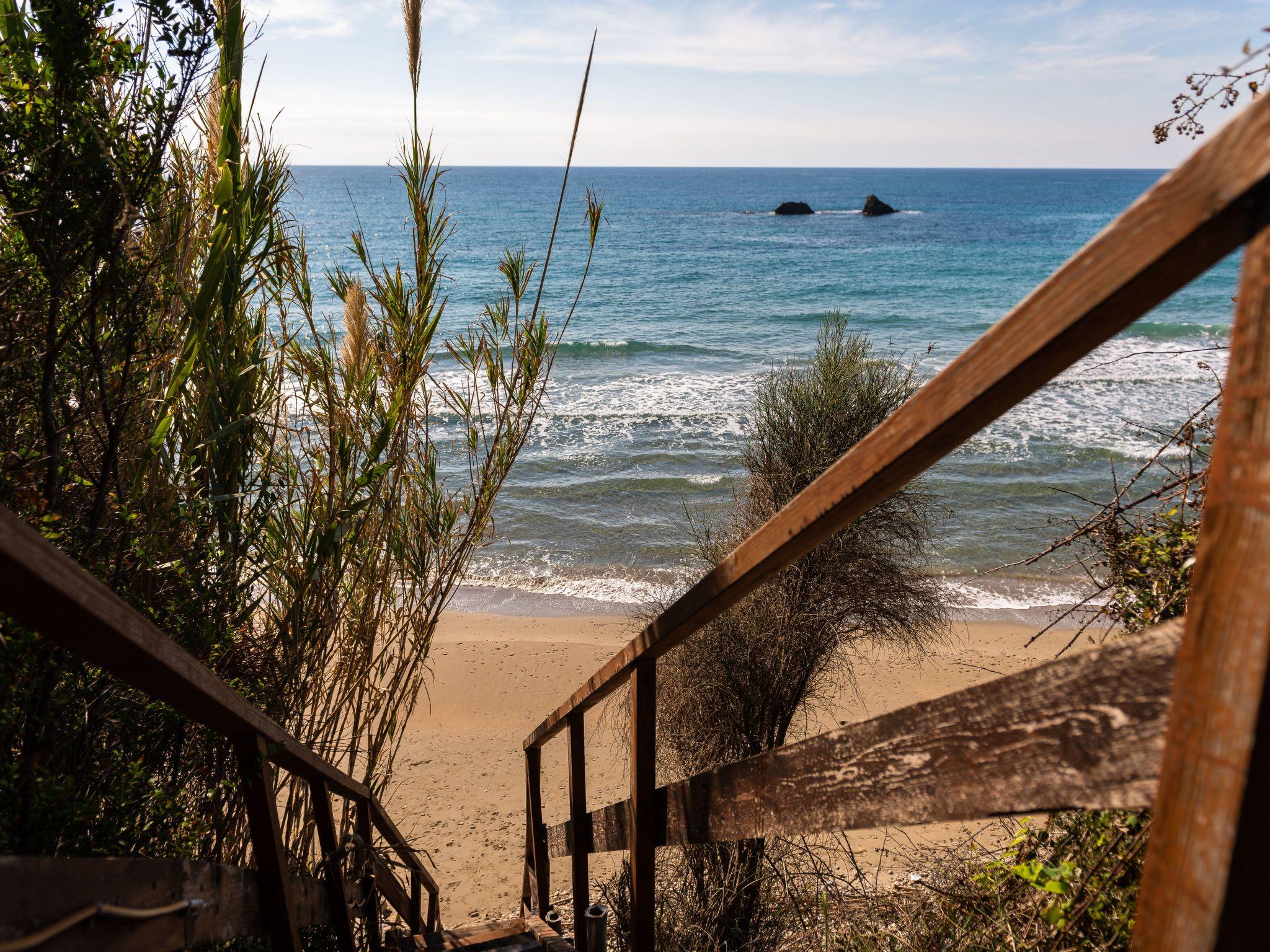 The secluded sandy beach at Kannouli is accessed via stairs. As it is otherwise difficult to access, you are mostly undisturbed there. The sea is very flatly shelved and therefore also suitable for smaller children. You can use the mud on the slopes of the beach to have a mud bath with healing effects, and feel like you are in a natural wellness area. There are shops and entertainment just 4km from the villa and it is 27km to the airport.