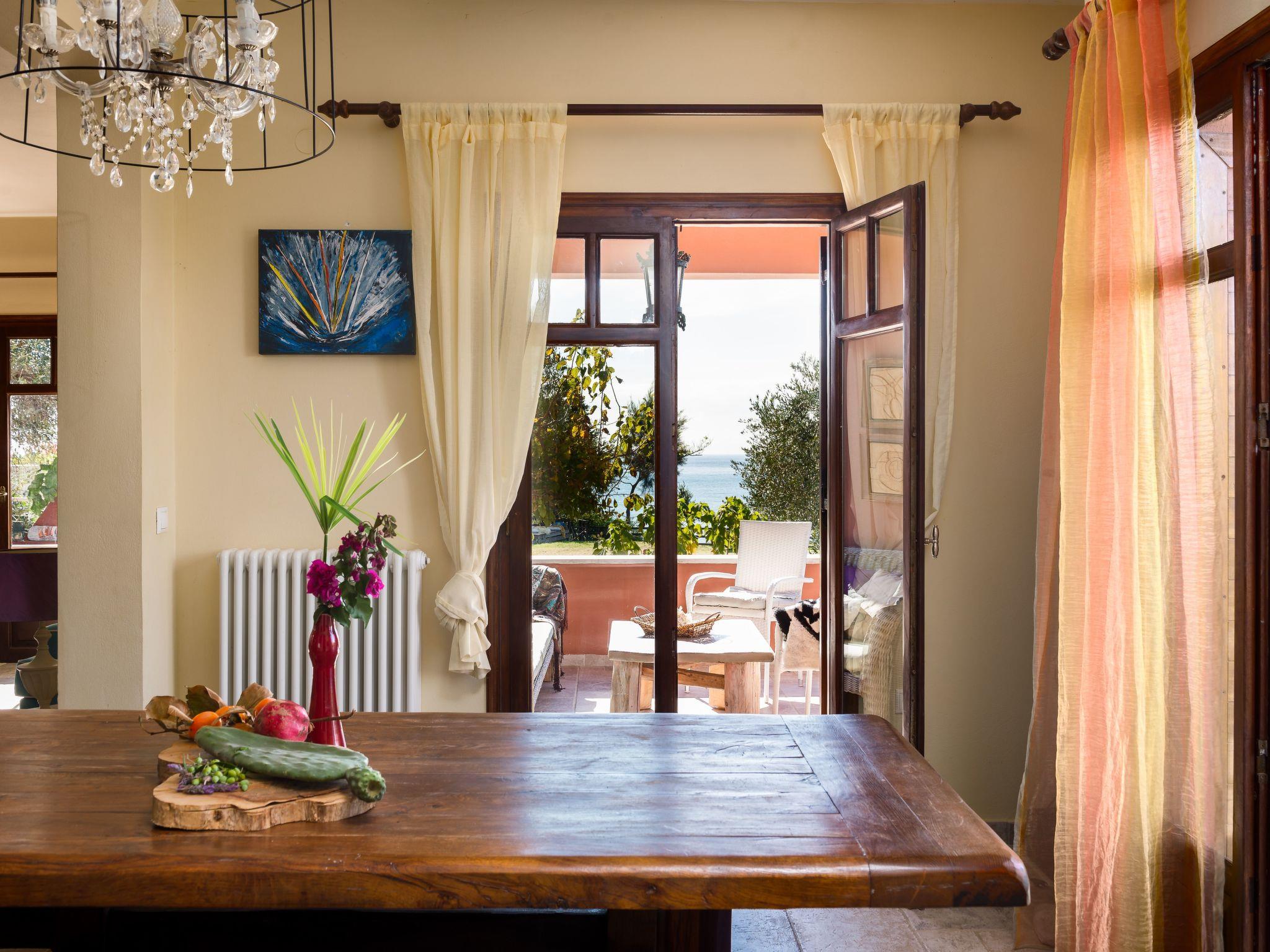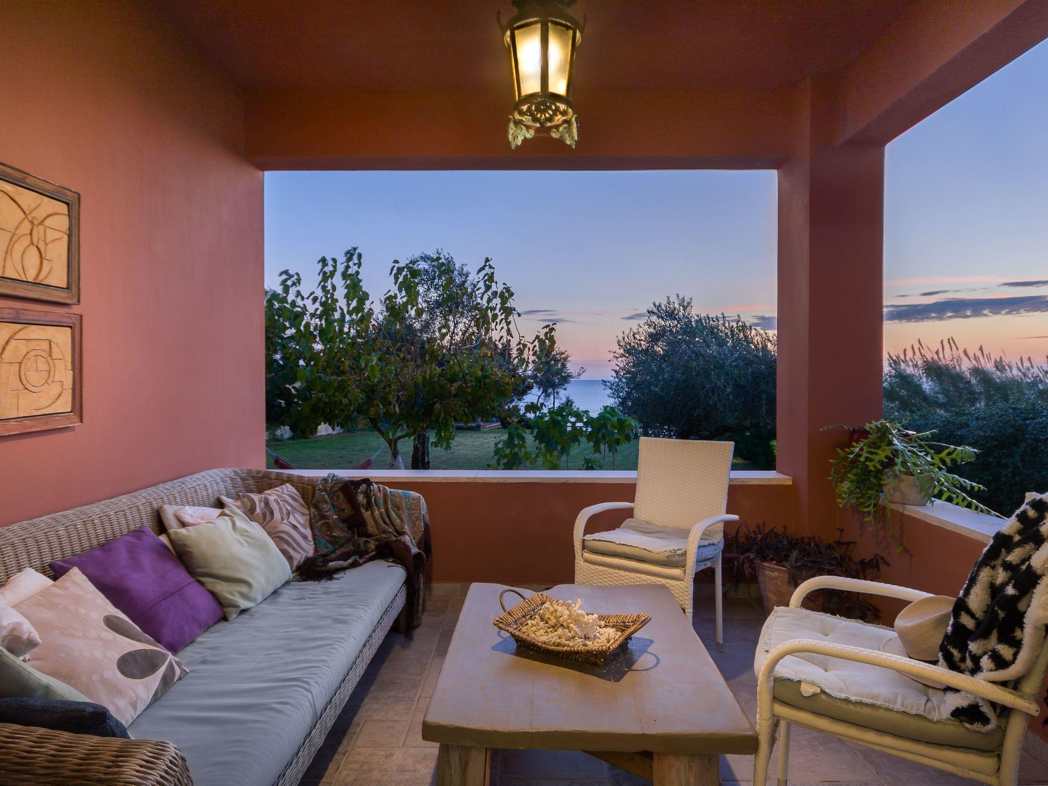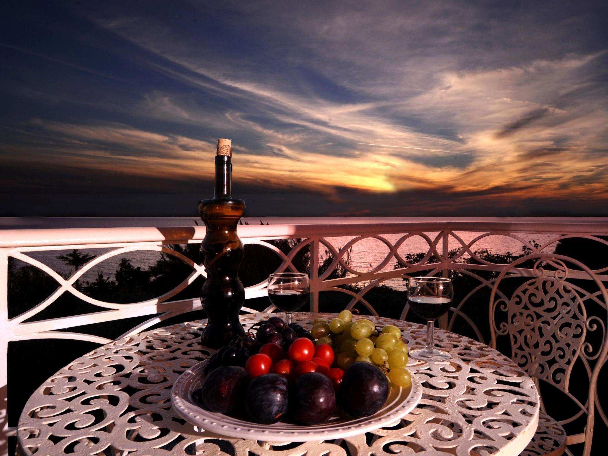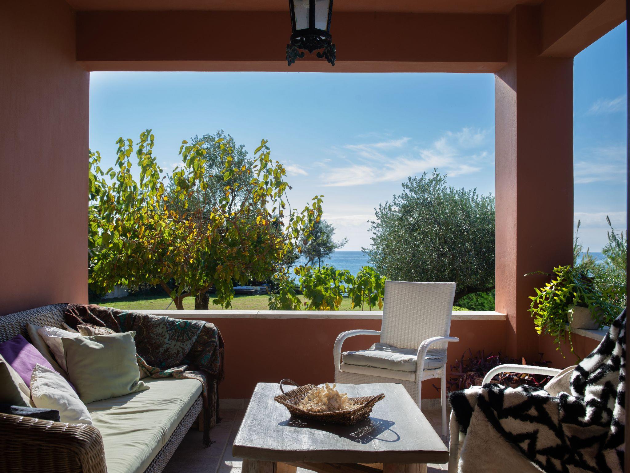 The veranda with its comfortable bamboo sofas is ideal for cosy hours and the perfect place to relax. You can enjoy unique sunsets here. On the edge of the site there is a gazebo, from which you can enjoy a fabulous view of the sea below. The villa is surrounded by olive groves and wine grapes are cultivated in the garden. All the rooms in the house afford a great view of the surroundings. There is also a terrace with a grill.