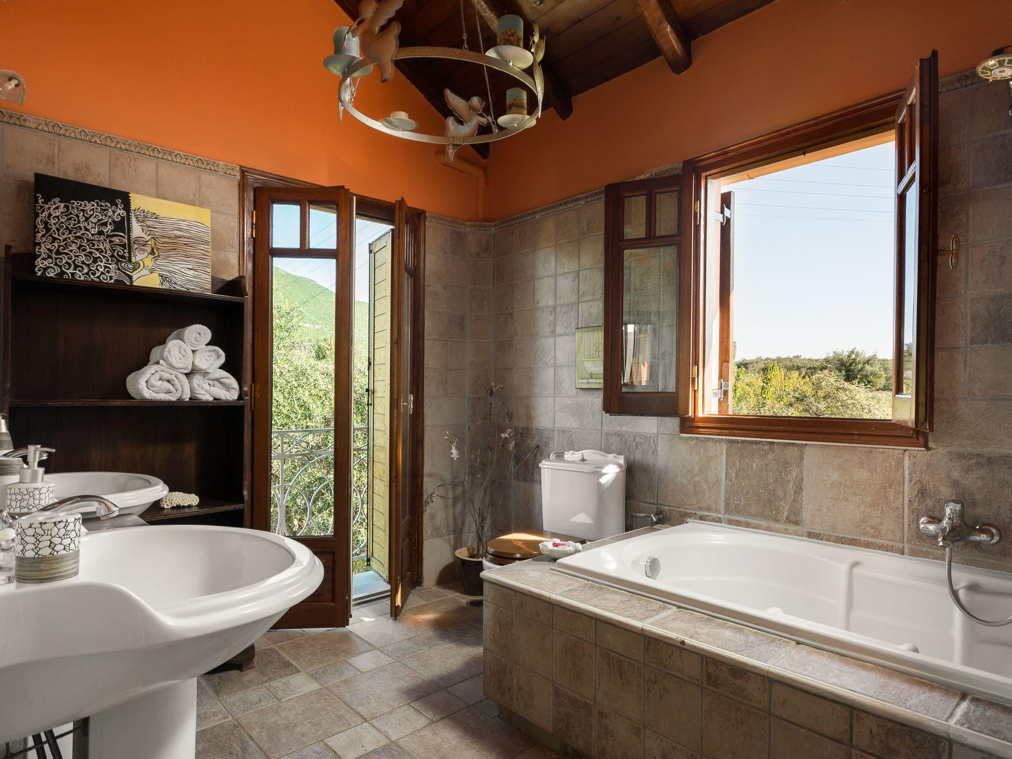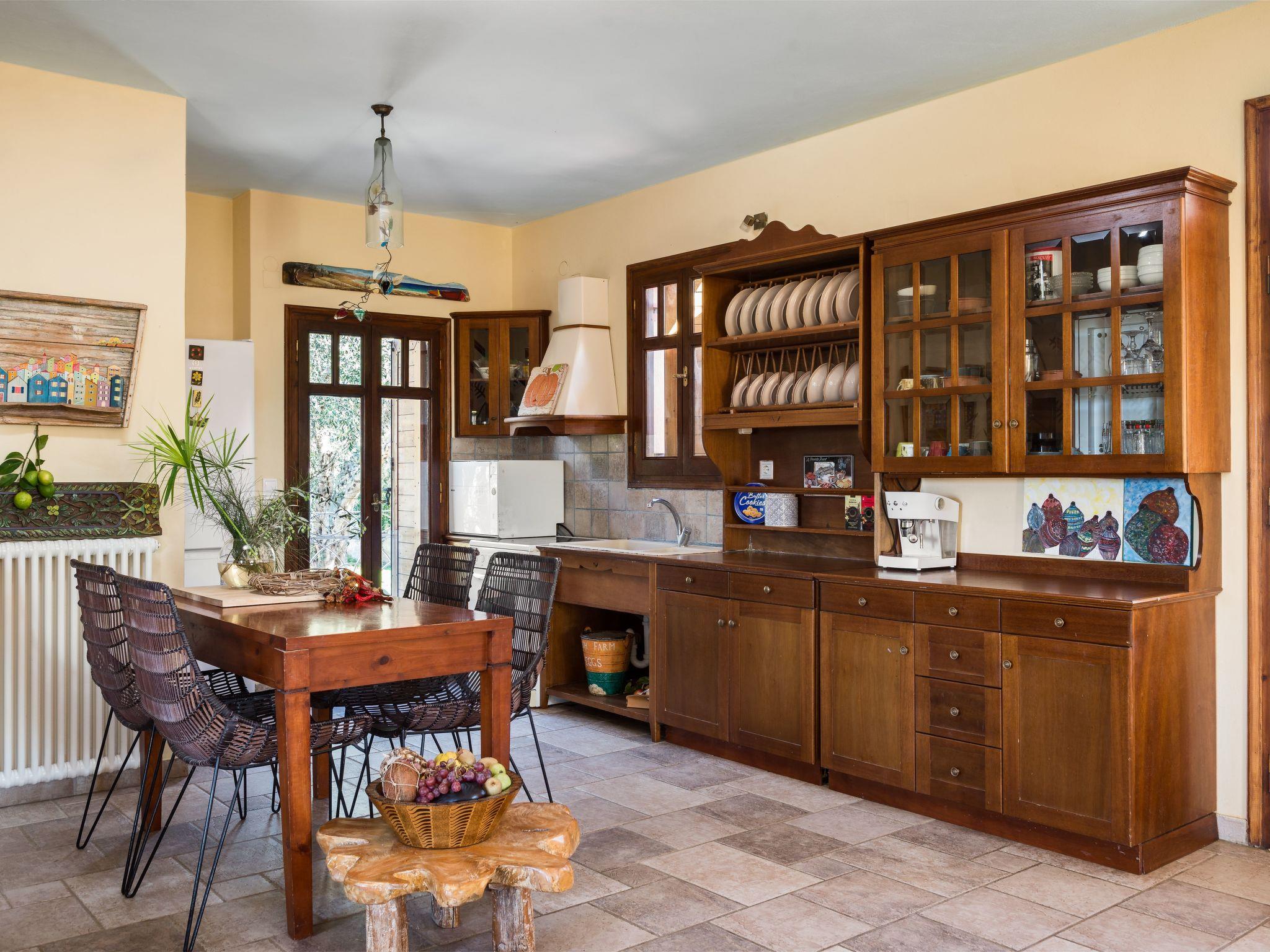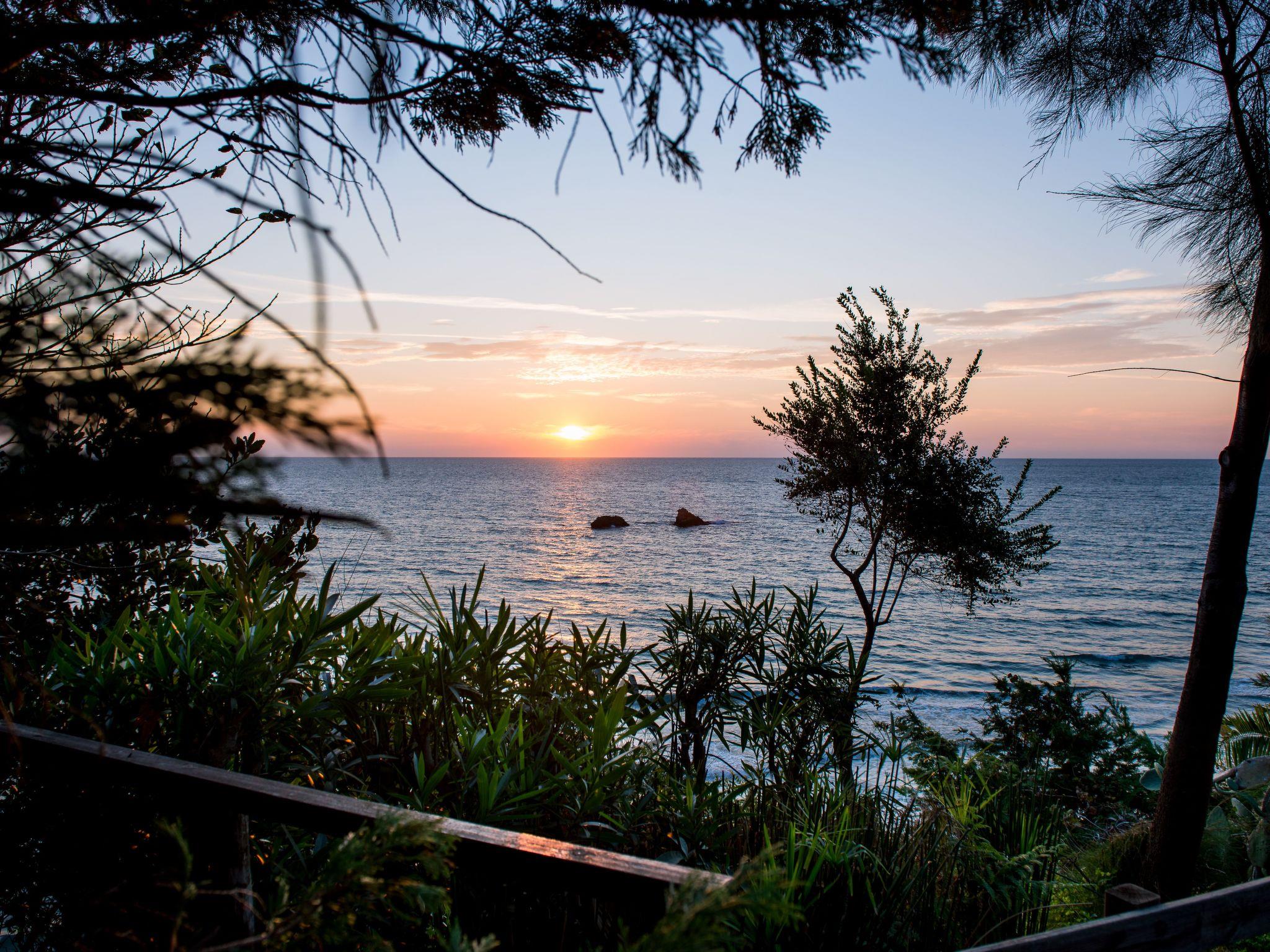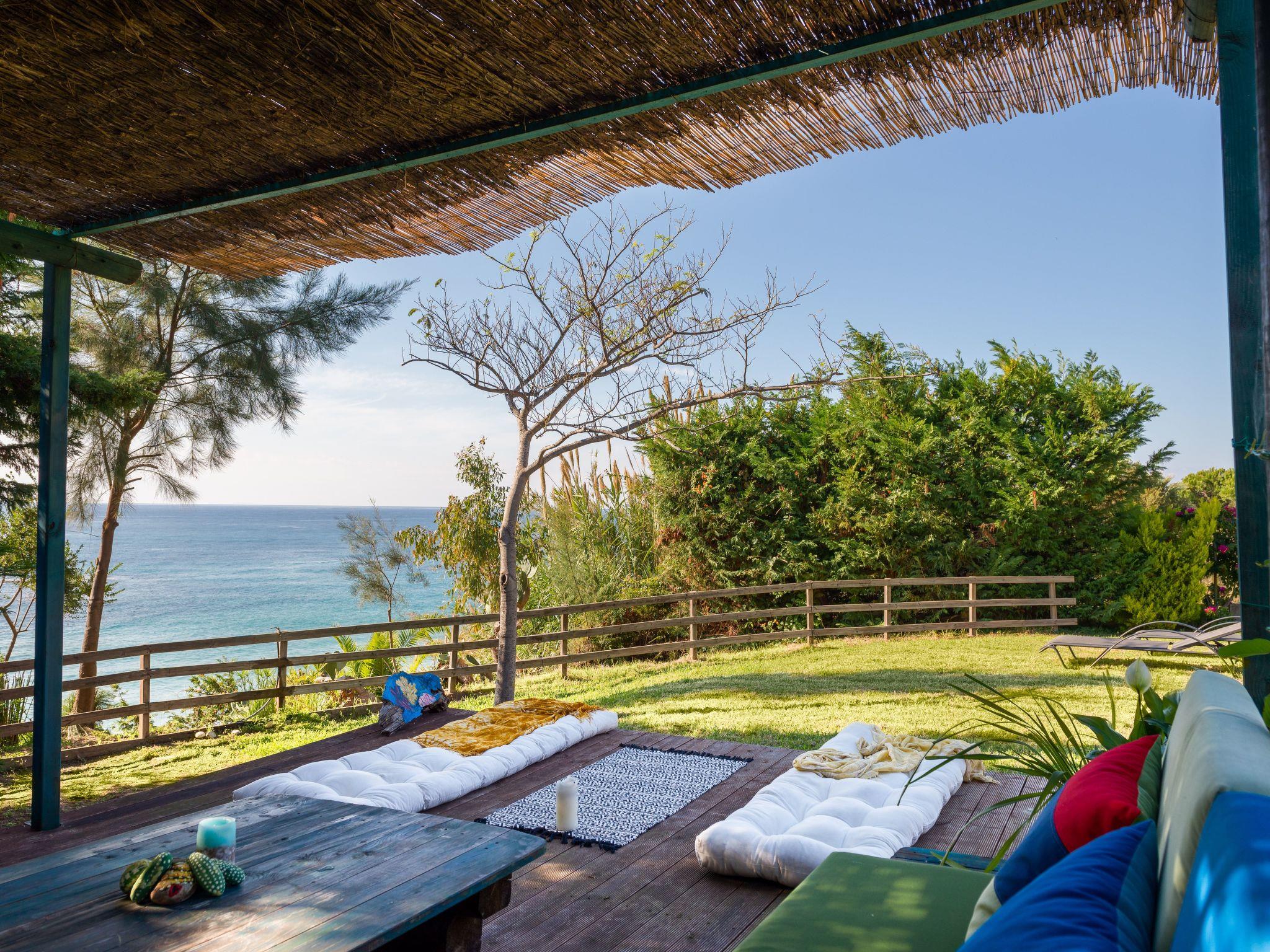 The veranda with its comfortable bamboo sofas is ideal for cosy hours and the perfect place to relax. You can enjoy unique sunsets here. On the edge of the site there is a gazebo, from which you can enjoy a fabulous view of the sea below. The villa is surrounded by olive groves and wine grapes are cultivated in the garden. All the rooms in the house afford a great view of the surroundings. There is also a terrace with a grill.