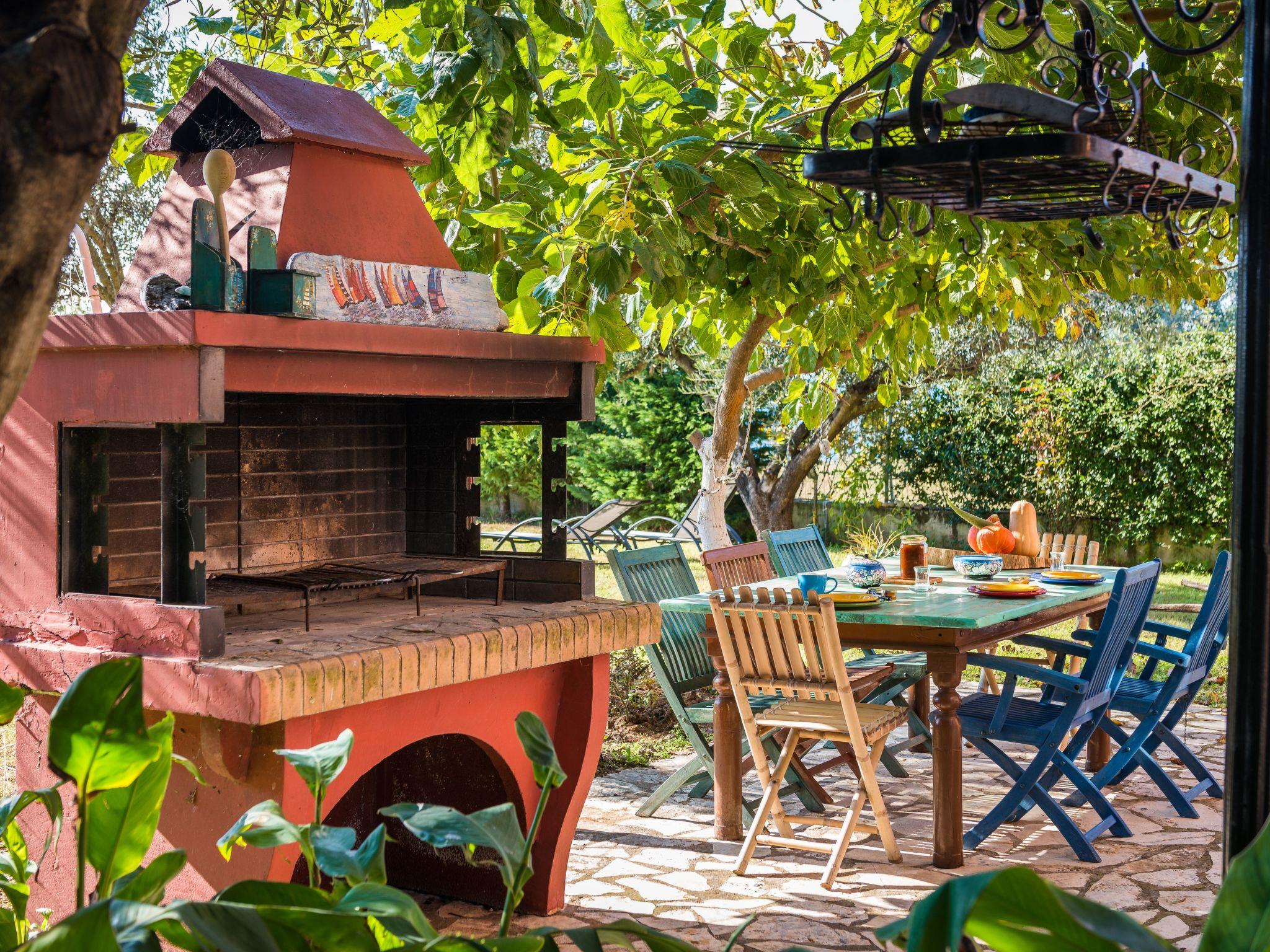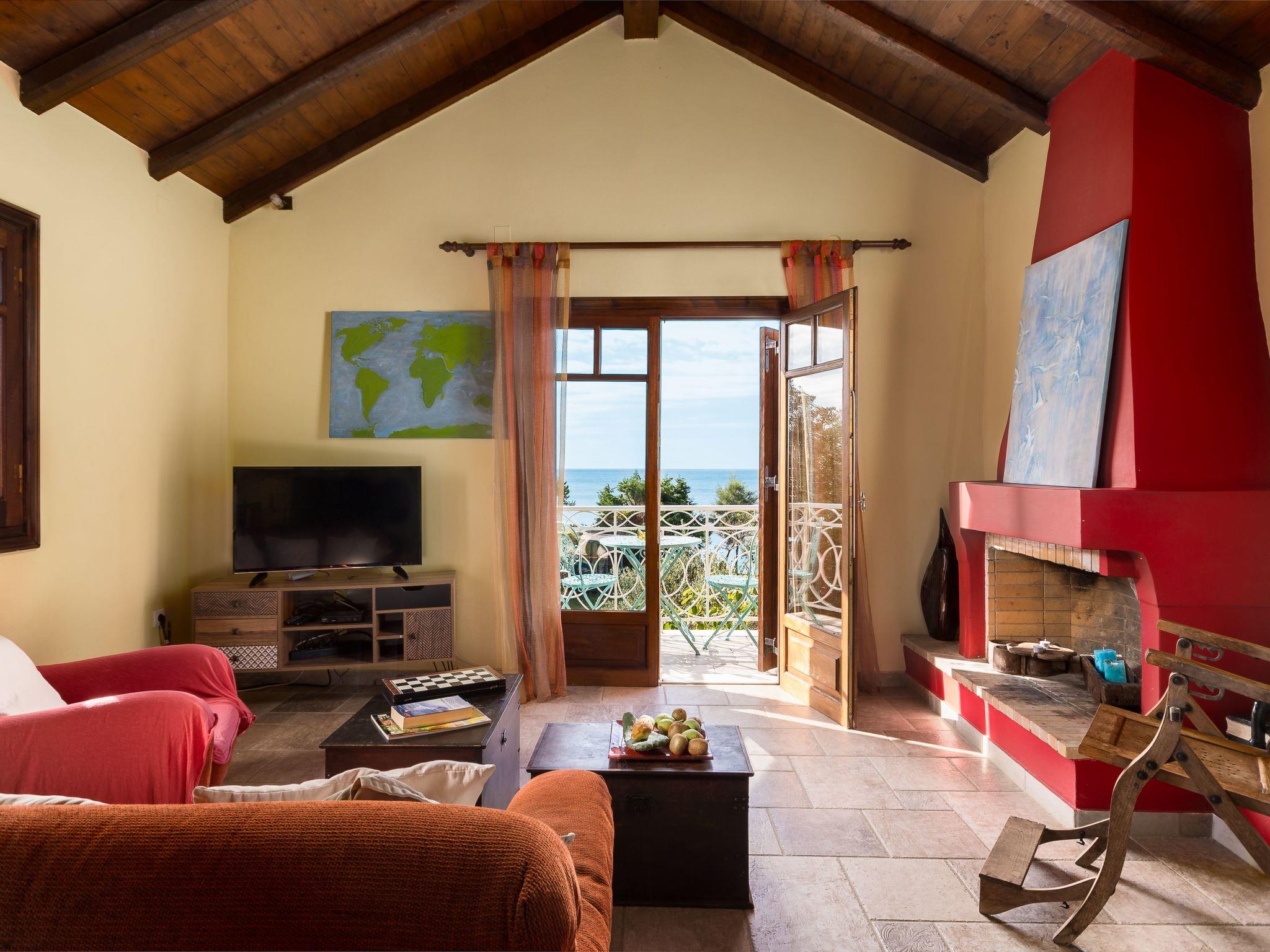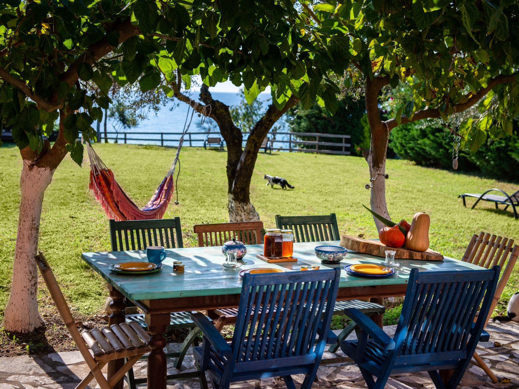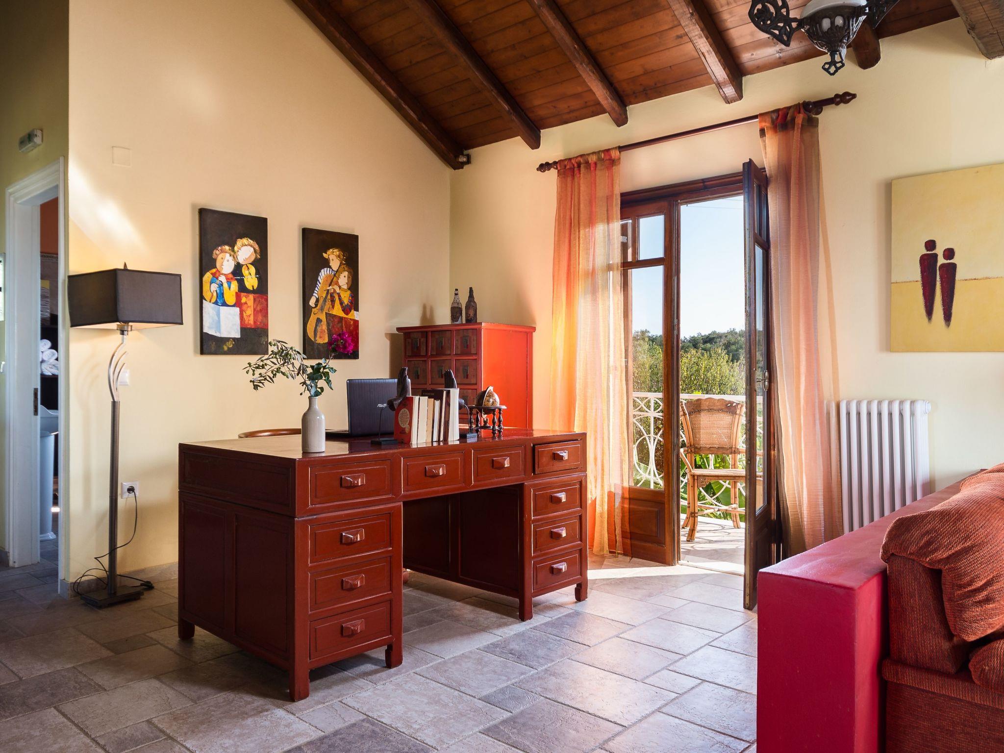 The veranda with its comfortable bamboo sofas is ideal for cosy hours and the perfect place to relax. You can enjoy unique sunsets here. On the edge of the site there is a gazebo, from which you can enjoy a fabulous view of the sea below. The villa is surrounded by olive groves and wine grapes are cultivated in the garden. All the rooms in the house afford a great view of the surroundings. There is also a terrace with a grill.
