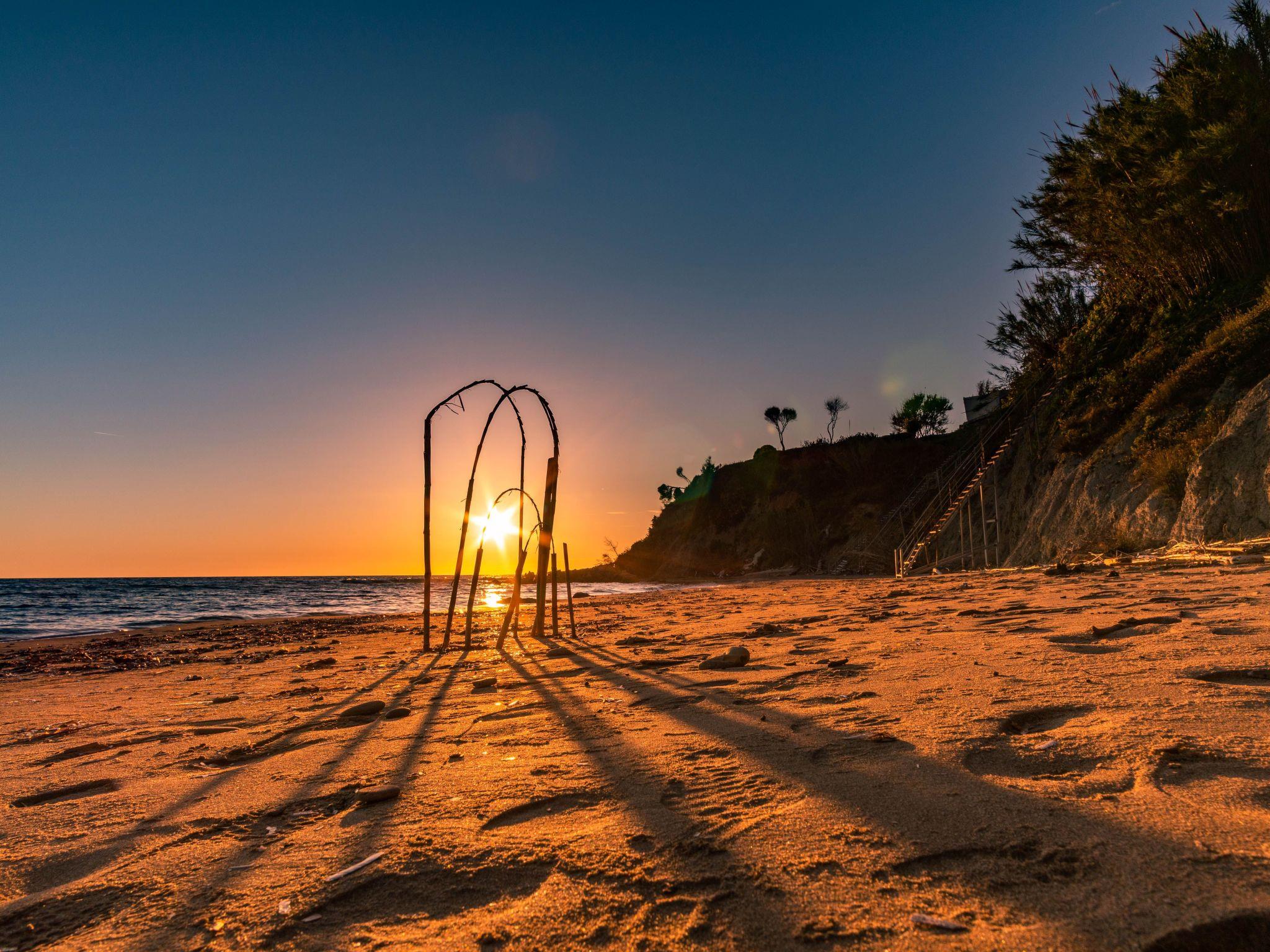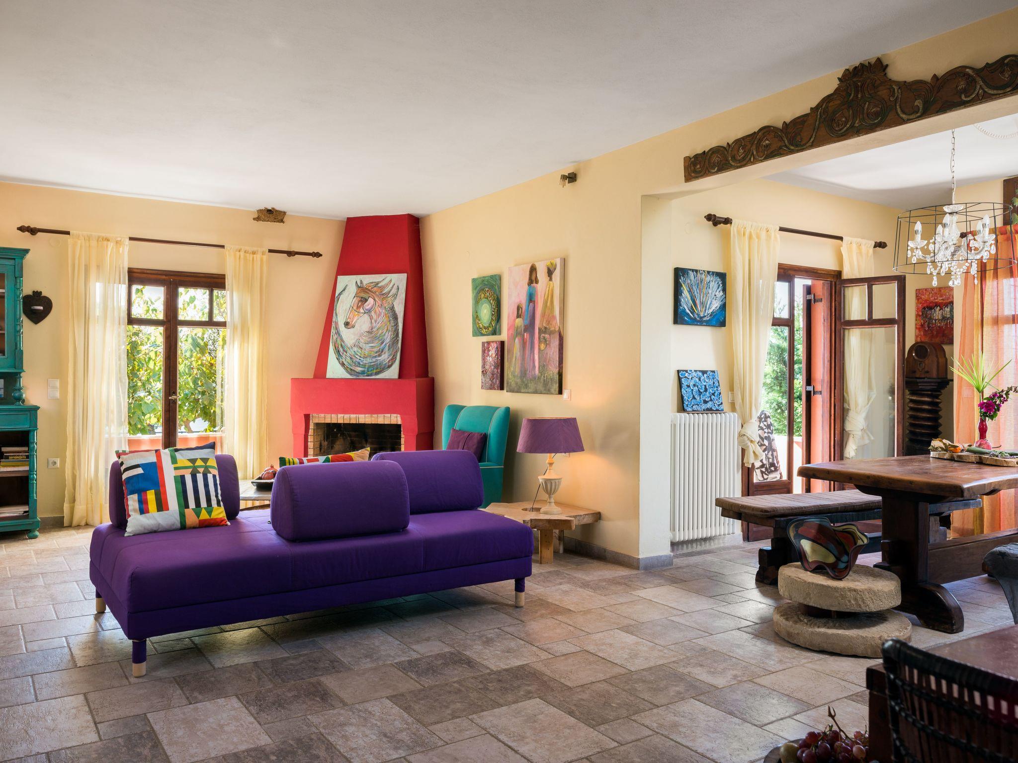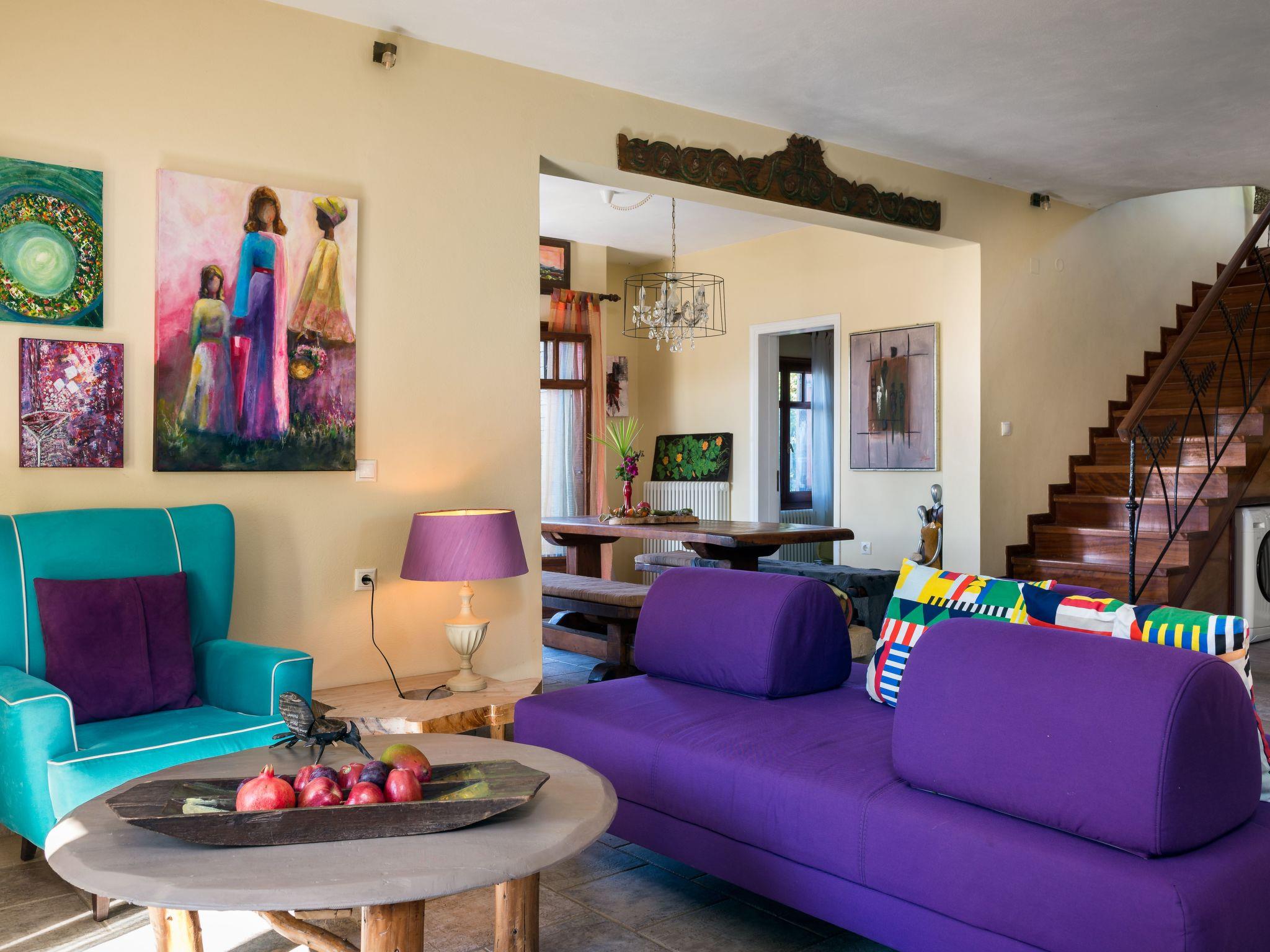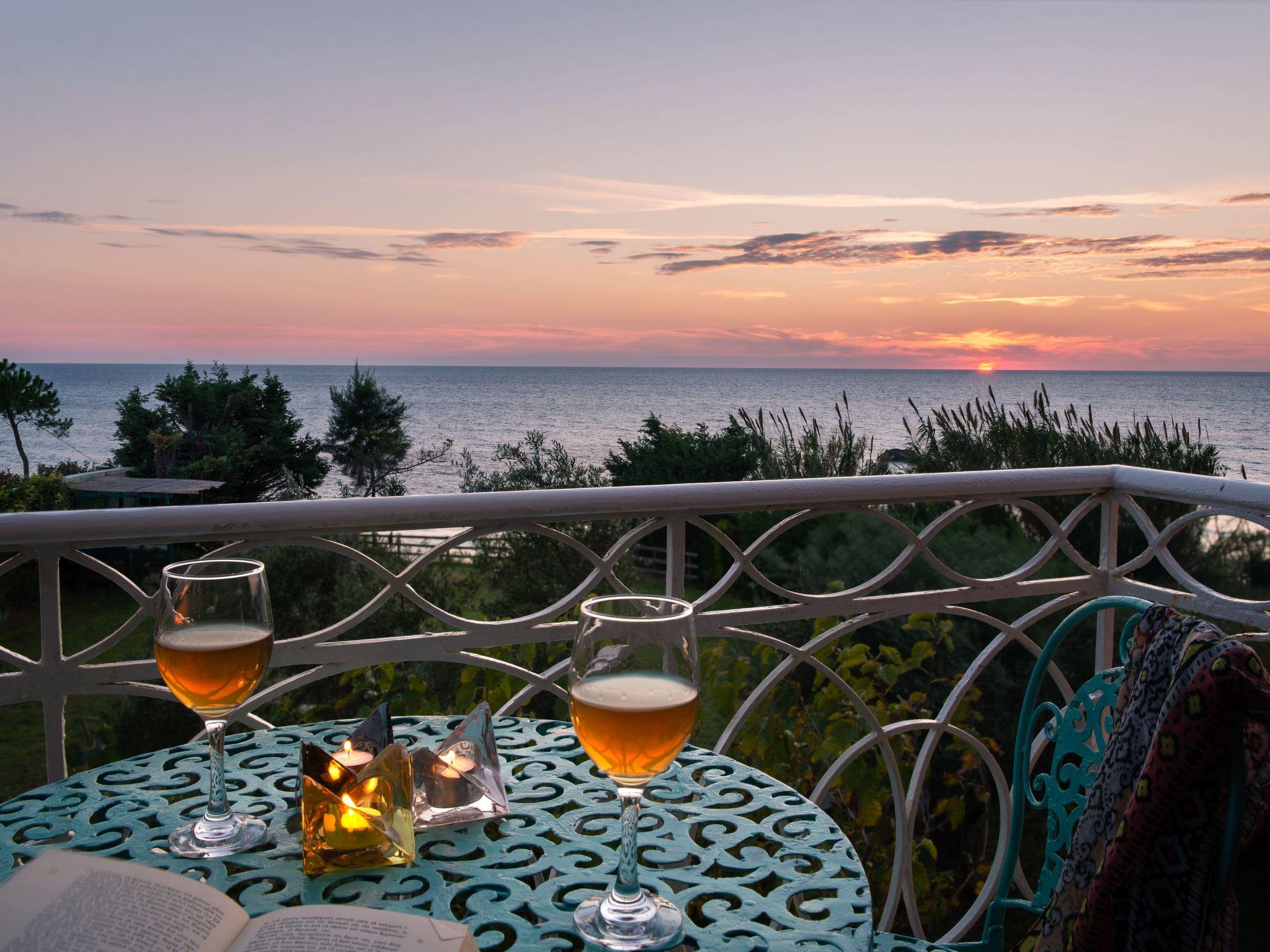 The veranda with its comfortable bamboo sofas is ideal for cosy hours and the perfect place to relax. You can enjoy unique sunsets here. On the edge of the site there is a gazebo, from which you can enjoy a fabulous view of the sea below. The villa is surrounded by olive groves and wine grapes are cultivated in the garden. All the rooms in the house afford a great view of the surroundings. There is also a terrace with a grill.