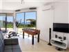 Comfortable living room with a double sofa bed Dining area Child's highchair Media & Technology
