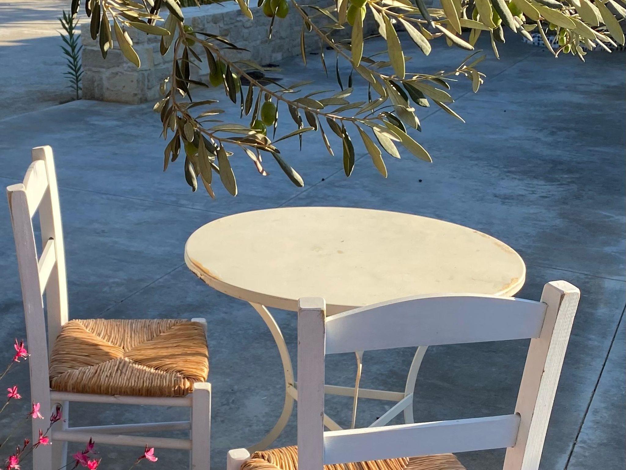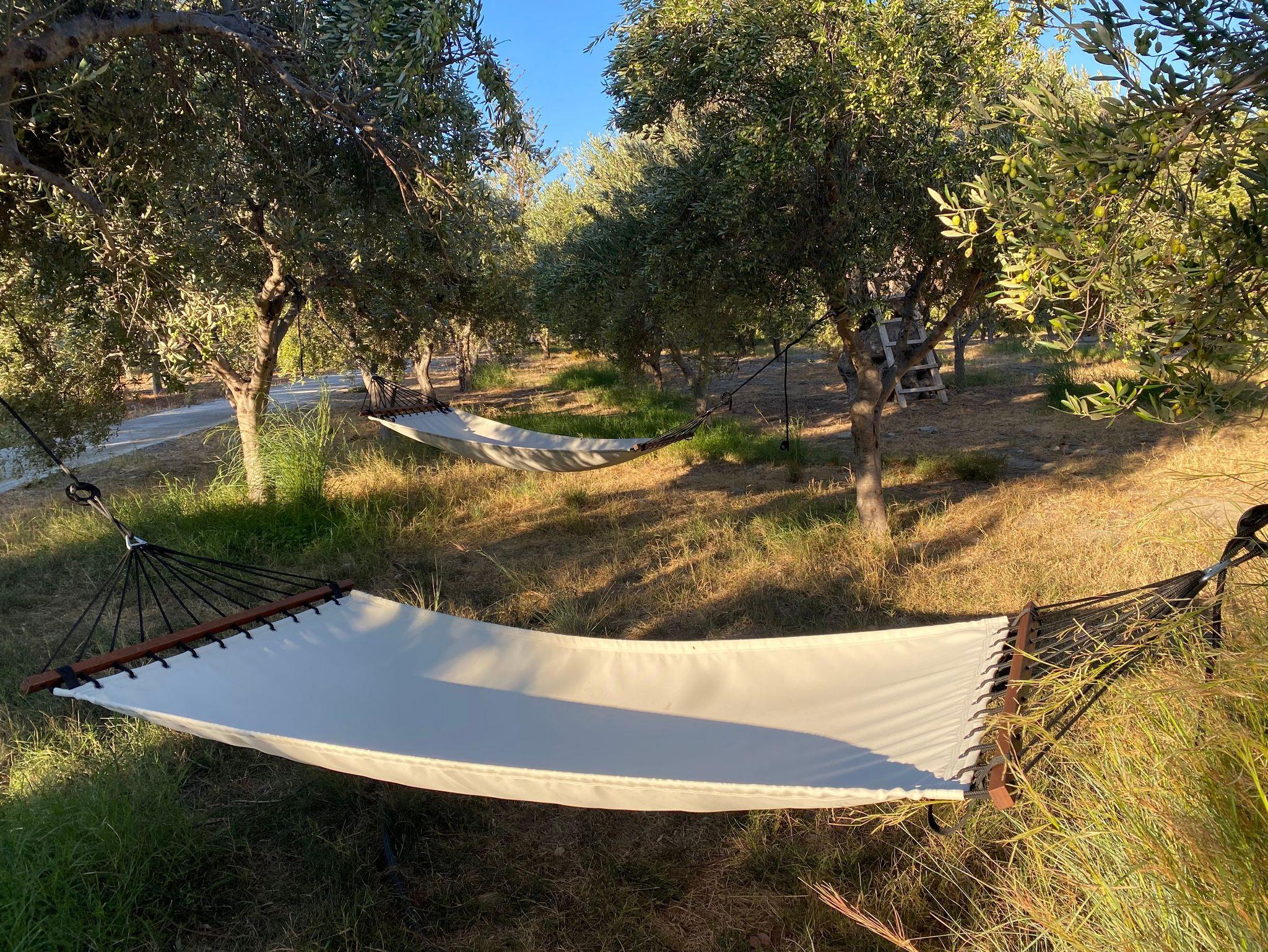 Die vielen Obst- und Olivenbäume laden die Gäste unter den ausladenden Blätterdächern zum Entspannen ein.
