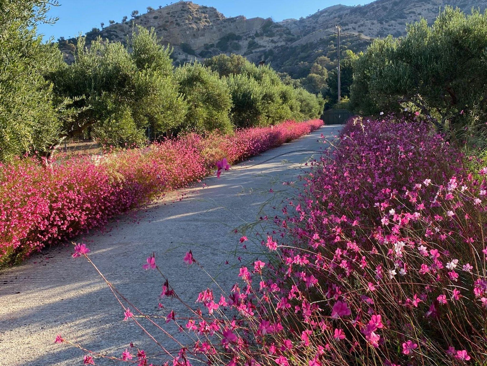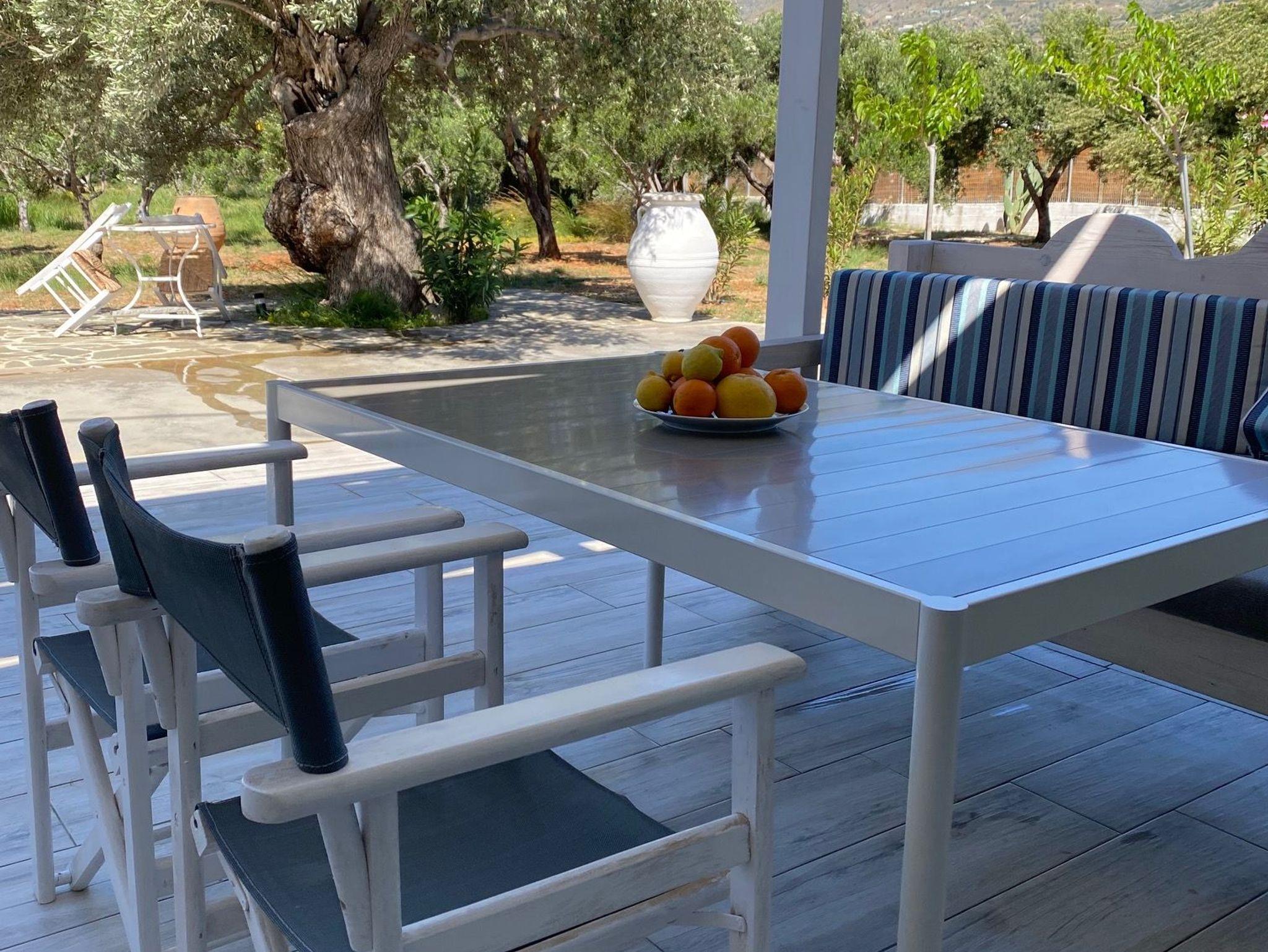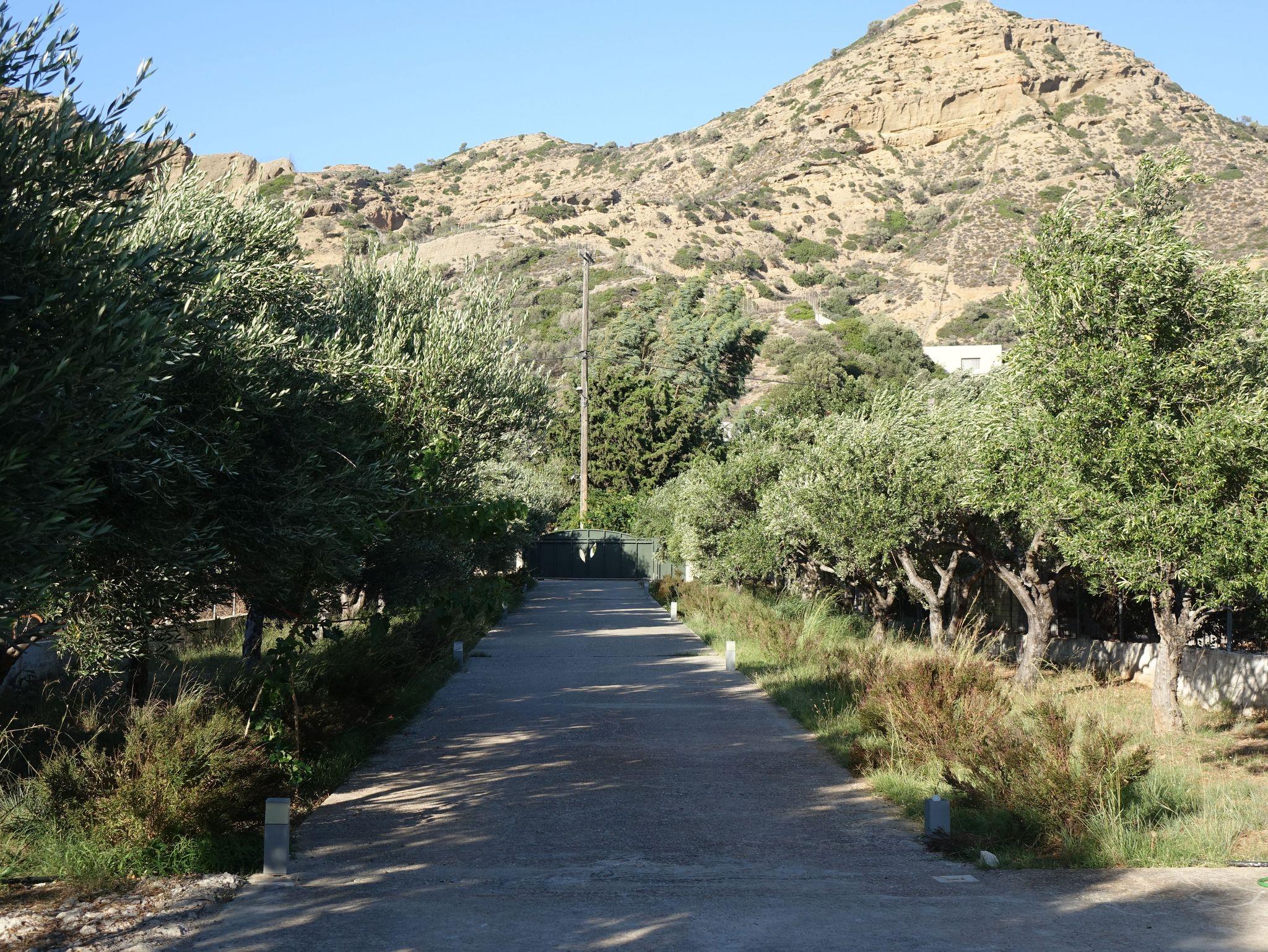 Das Grundstück hat mehr als 5000 qm mit 150 Olivenbäumen. Orangen-, Mandarinen- und Feigenbäume geben den Gästen das Gefühl im Paradies zu wohnen. Zum nahen Naturstrand sind es nur 200m.