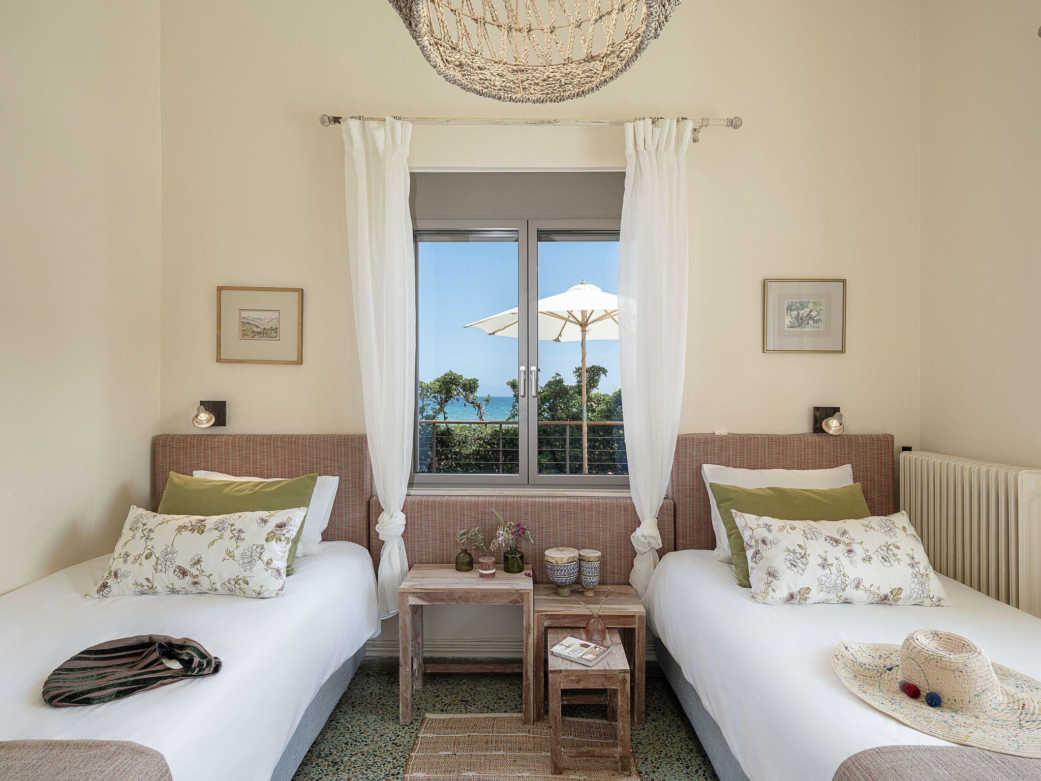 “The House by the Sea” is available from 2pm on the day of arrival. Guests are requested to vacate the house at 10 am on the day of departure. We will try to be as flexible as possible. This will depend on each individual case and other bookings. If we are notified in advance we will try to accommodate guests with difficult flight times. Luggage storage is no problem. The garden with the pool is an oasis in its own right with olive and bougainvillea trees encircling the house. This space provides ample opportunities for both relaxing and entertaining at the generous and shady garden table. From the garden, at sunset, the terrace lounge area provides an ideal setting.A swimming pool of 30m2 is builted in 2023. Inside the property is an information book giving useful tips and advice to help you make the most of your holiday and the surrounding area. Other activities (water sports, sailing courses and other water sports) are available 2 km from the property. 500 m away there is also horse riding. Special note: The houses are not suitable for guests with mobility problems. The houses can be rented together, 9 people in 2 friendly families or couples. Otherwise, they are rented separately. Smoking is allowed outside. Animals is not allowed.It is not suitable for parties and large caterings