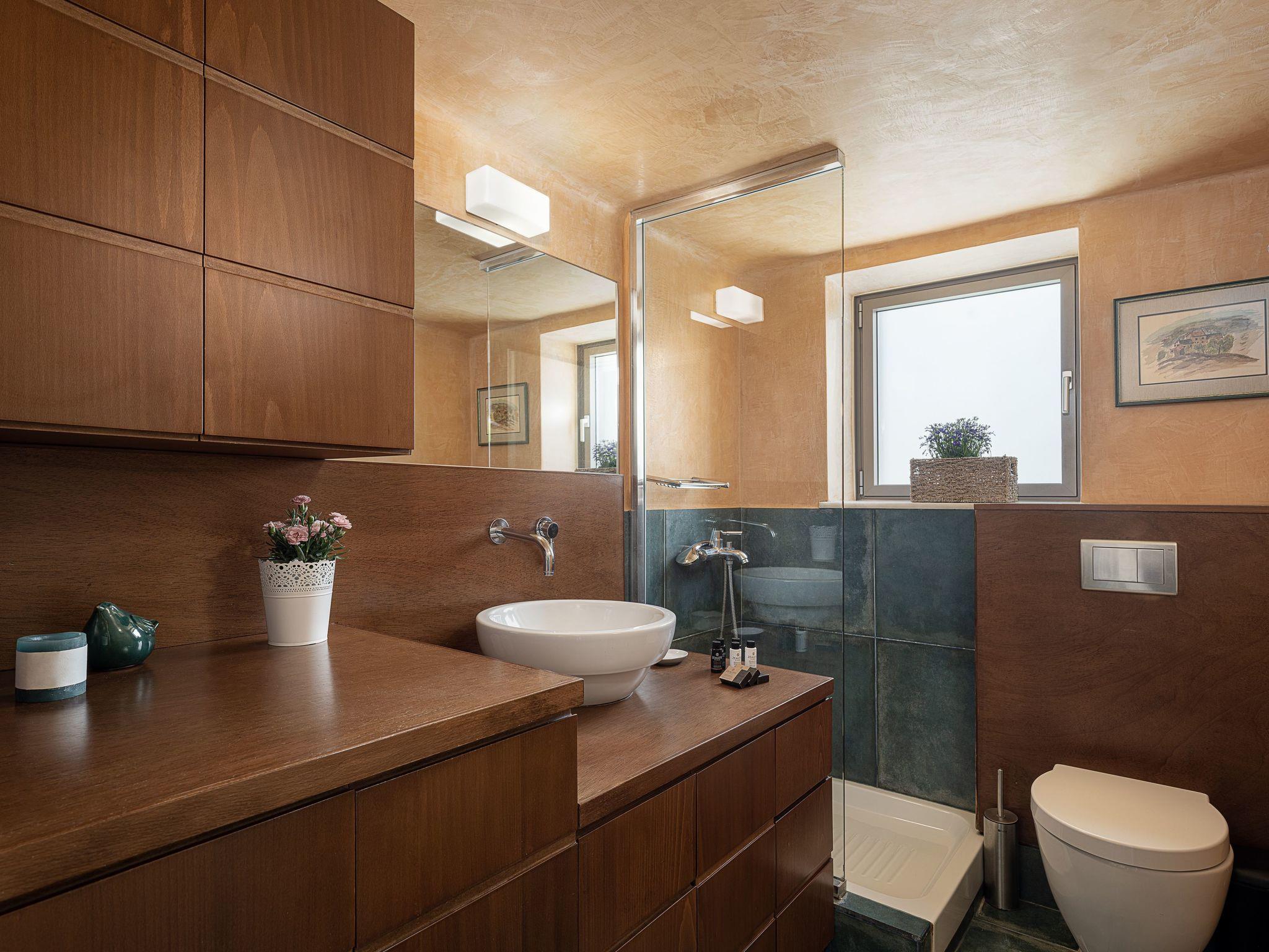 - Bathroom: elegant bright bathroom with shower, washing machine, hair dryer and towels.