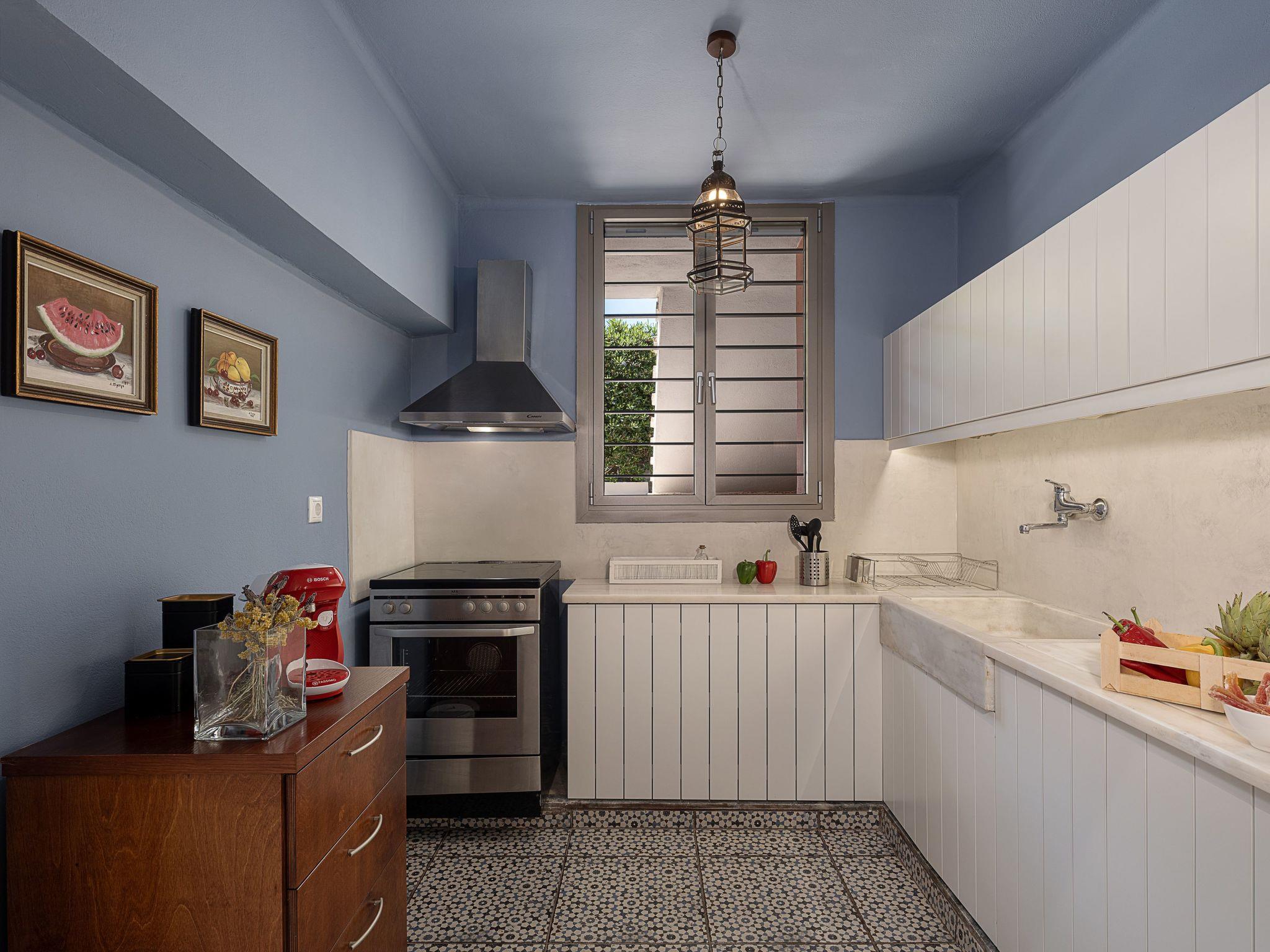 - Garden view house (100 sq.m, 8 stairs down, sleeps 4 ) The lovely living room and the bedrooms have windows with a garden view.The house has a bathroom, open plan kitchen and private parking.There is an enclosed shared garden (1000m2) The Sitting / Dining RoomA lovely bright and spacious room with a window view to the garden and dining area (including sofa, small tables, bookcase, TV, DVD player, video and CD/radio, console & mirror), a classic cosy dining room with six comfortable dining table seats.The KitchenFully equipped modern kitchen with all appliances for a comfortable stay. (Refrigerator, electric oven, coffee maker, toaster, juicer, and independent heating system for the winter)Bedroom 1Double bedroom with view across the garden. Bedroom 2Twin bedded room with view across the garden.