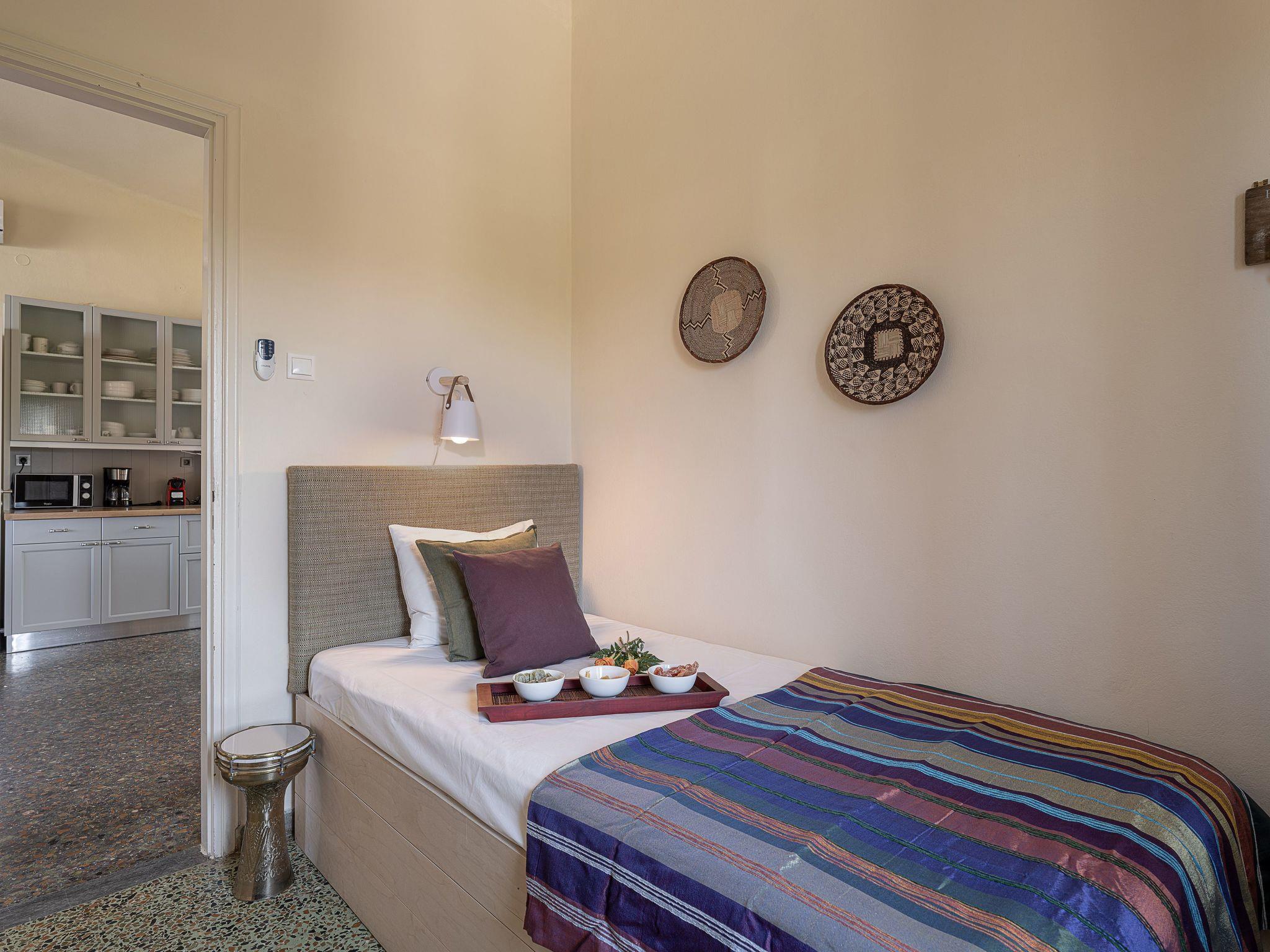 The whole villa can be booked only by one guest, one family, or two friend-families or relatives, but only by one booking. In other words, if you were more than 6, you would take the whole house. Since you were 4 people, you did not need the downstairs space, but we are not aloud to host strangers at the same time as you. This is one villa and depending on the number of the guests, we give one or both spaces.The property is as beautiful as in the pictures, with beautiful & modern decoration and full of charm, the apartment clean and well equipped, the terraces dotted with flowering plants. The owners are absolutely charming while remaining very discreet. Fantastic place, very quiet setting, recommend it to anyone who wants to spend a few days in a quiet and relaxing atmosphere! A accommodation much better than a hotel room!You will not find villas like this, so close to Chania, seafront for 10 people with such a large garden, shade,so many corners to relax, with shops to buy food, restaurants and clean, shallow sea with white sand! The house is splendid and has all sorts of details.
