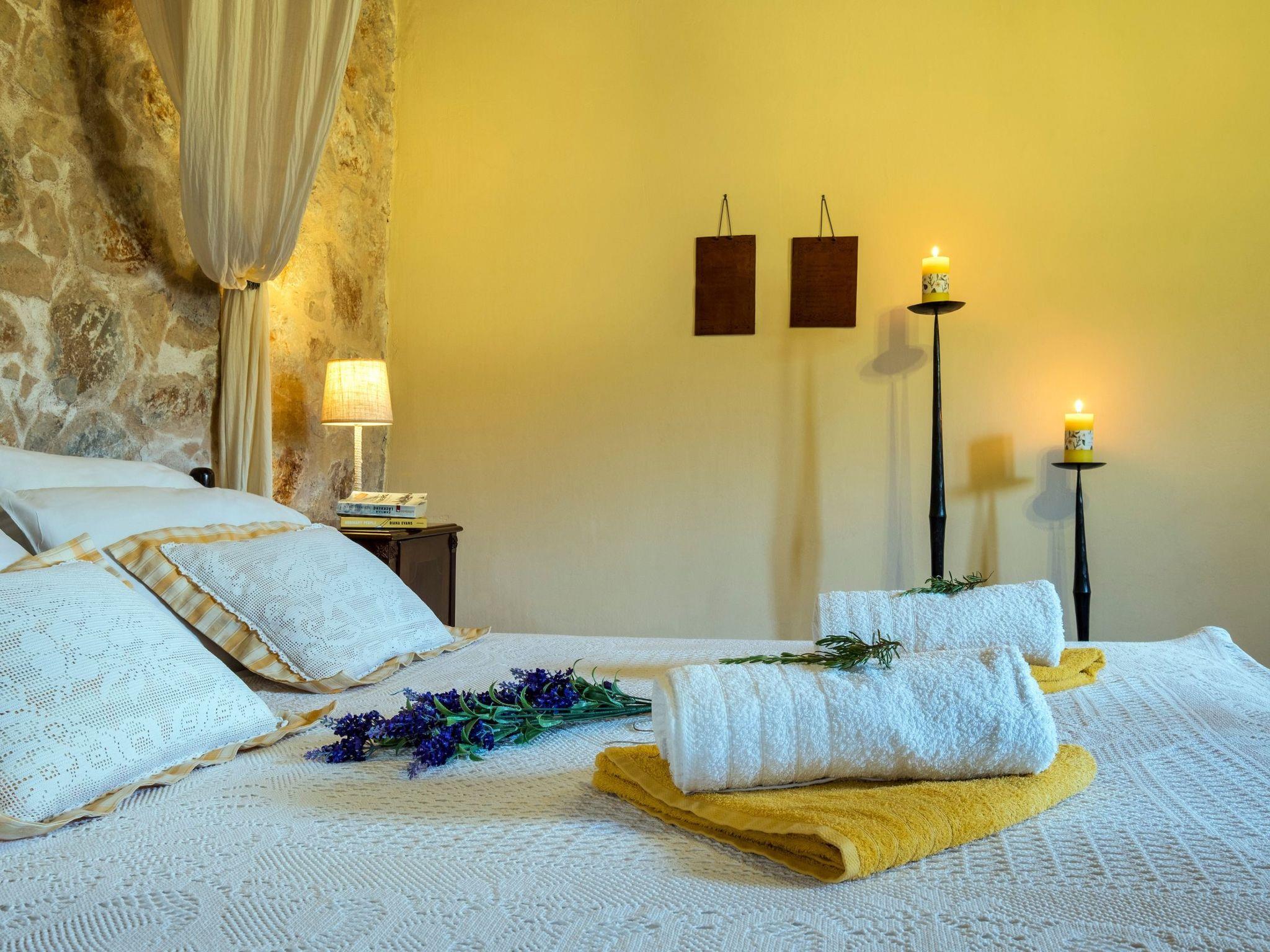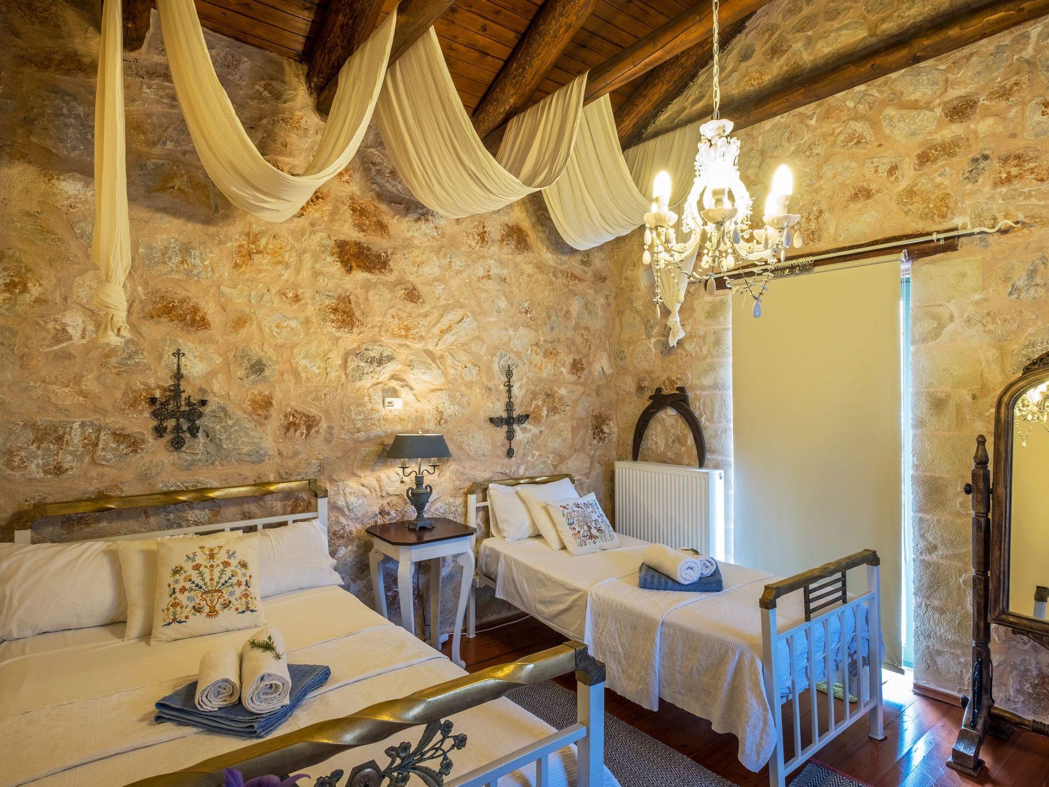 There are four little villages that make up the plateau: Ammoudari, Goni, Kares and Petres, which are all sparsely populated with a total of approximately 440 permanent residents. The location is ideal for mountain lovers who are looking for quiet holidays, it provides for a peaceful and pleasant stay.Fully detached natural stone villa with a private illuminated swimming pool and beautiful views from the sunny terrace - a mountain paradise