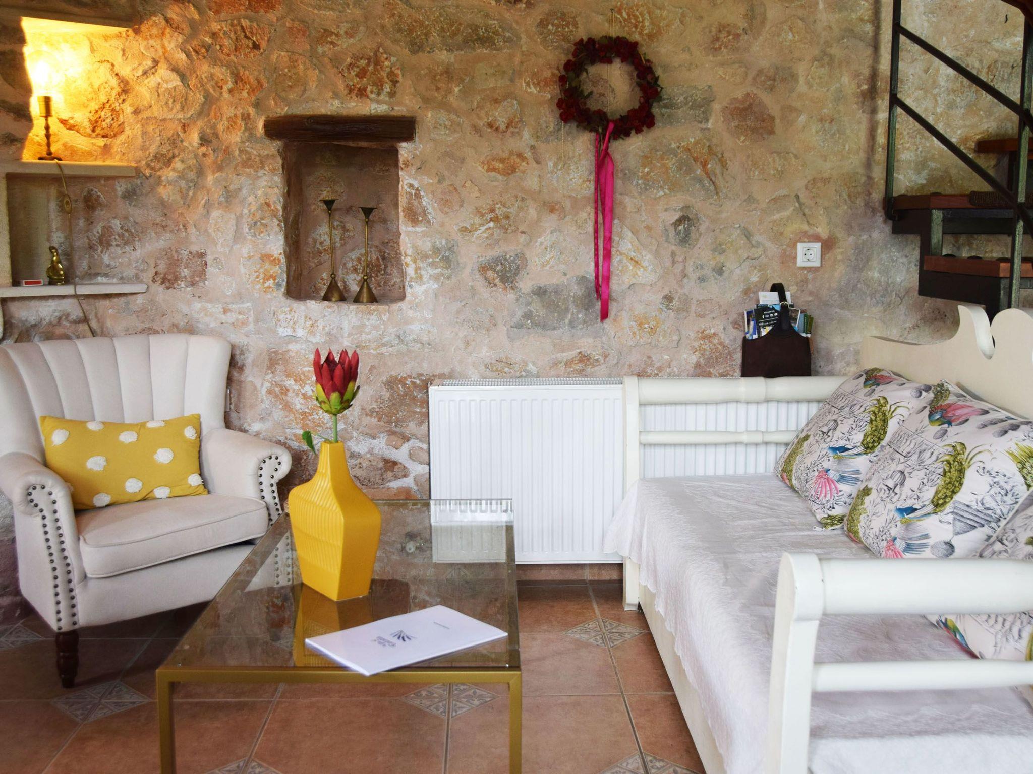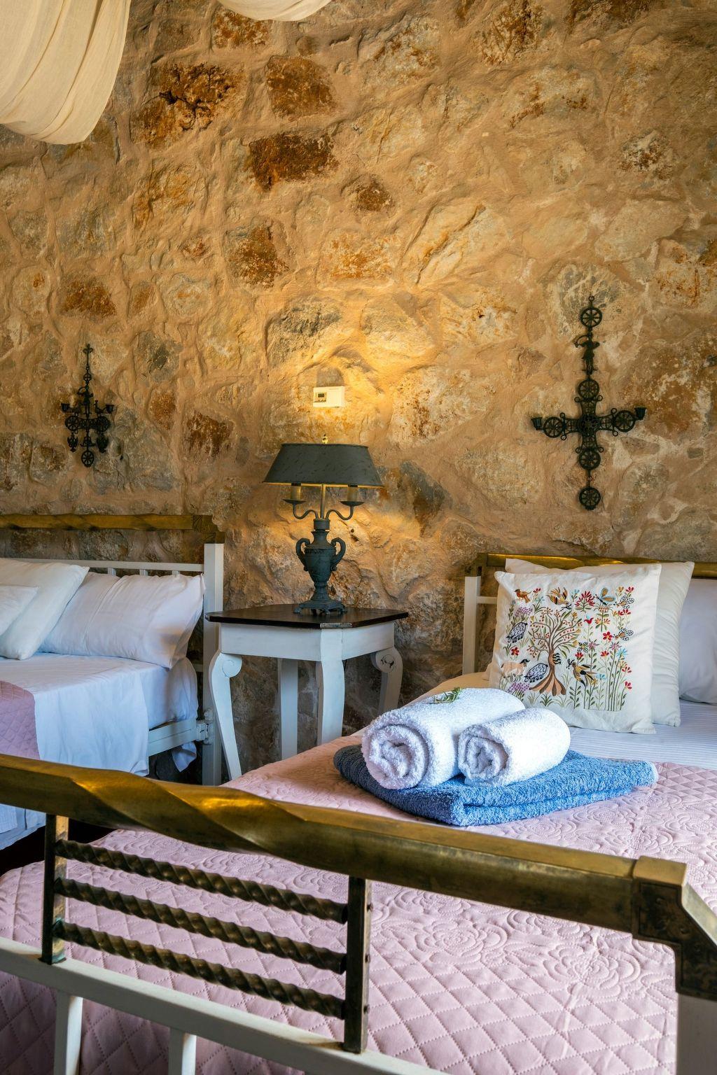 The holiday villa is a double floor stone built traditional Cretan village house of 140 square metres. Big windows on all the sides of holiday villa provide plenty of day light. It features three bedrooms and can accomodate up to seven persons. The property has 3 rooms and two baths.