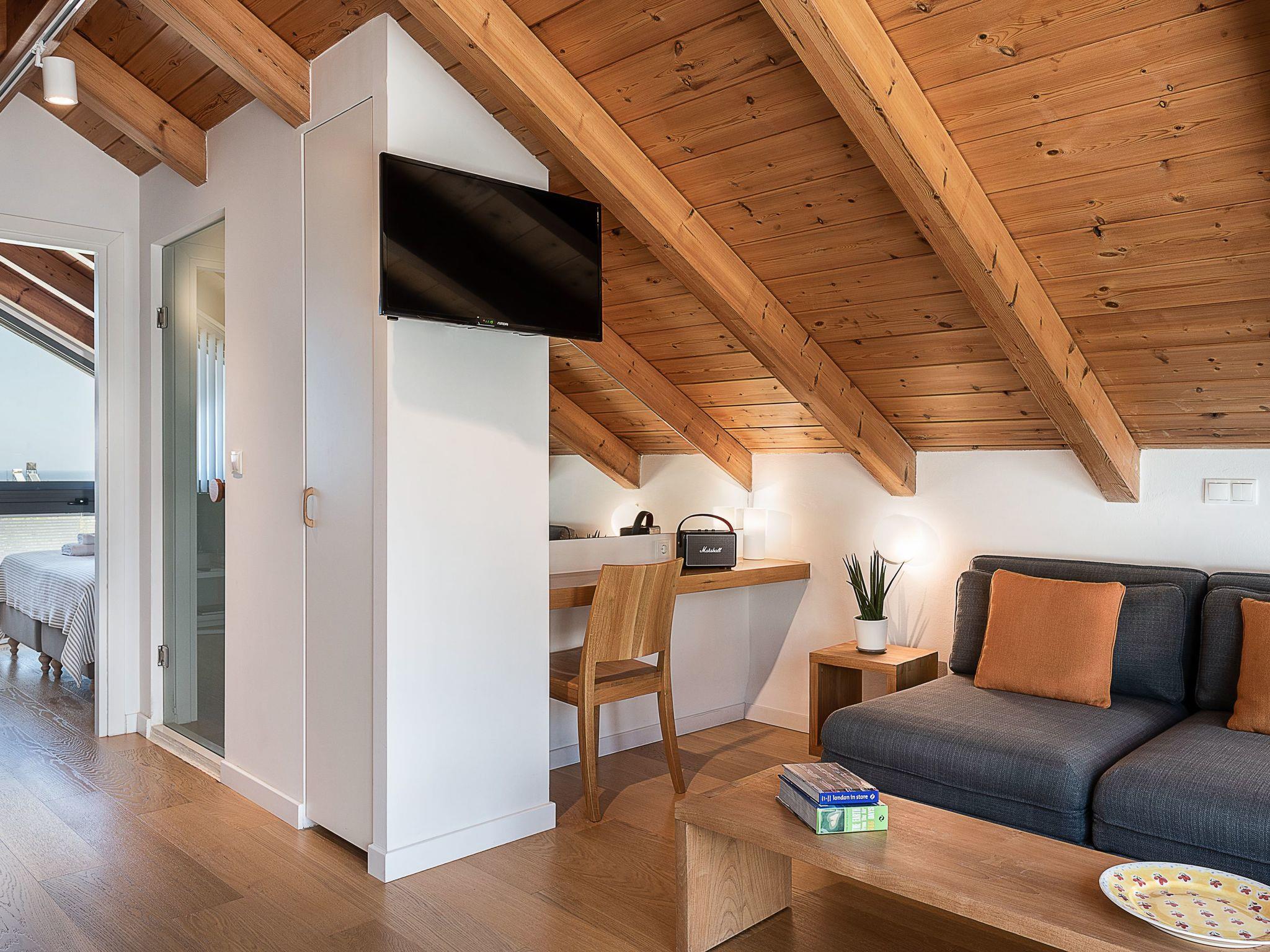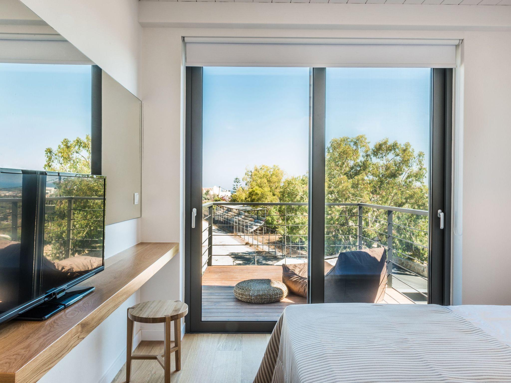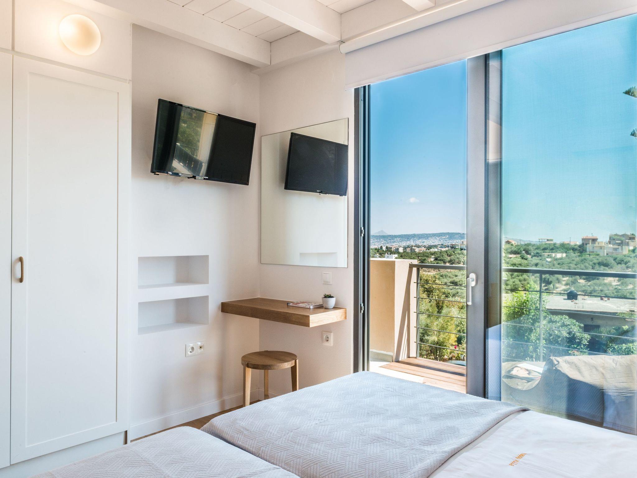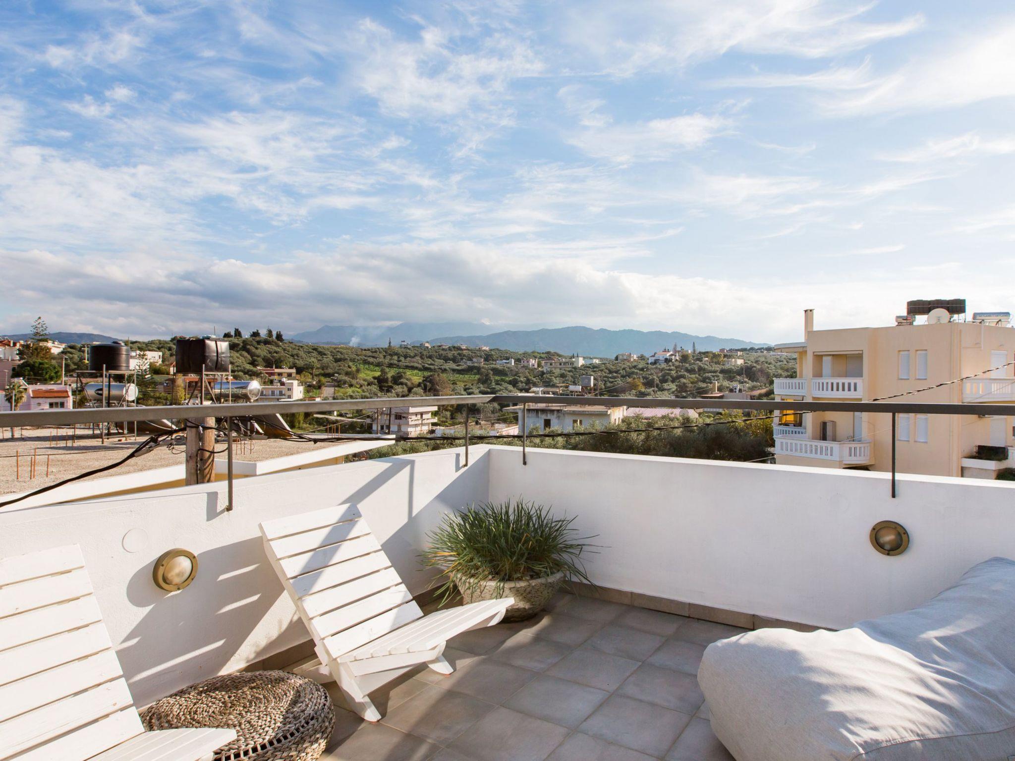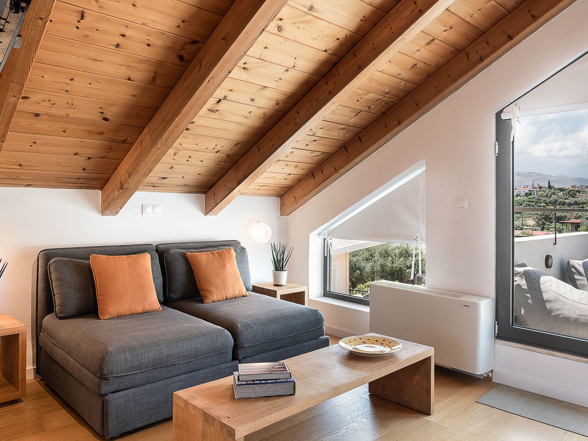 The top floor of the villa has superb views of the sea and Ag. Theodori Island, on the north side, from the south side, you can enjoy the scenery of the ‘Lefka Ori’ mountains. There is one bedroom with two single beds, one shower room, one WC and a sitting room area which can also accommodate two people with its double sofa bed.
