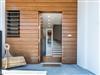 Around the 28 sqm swimming pool there is a sunbathing wooden deck and a lawn playground.