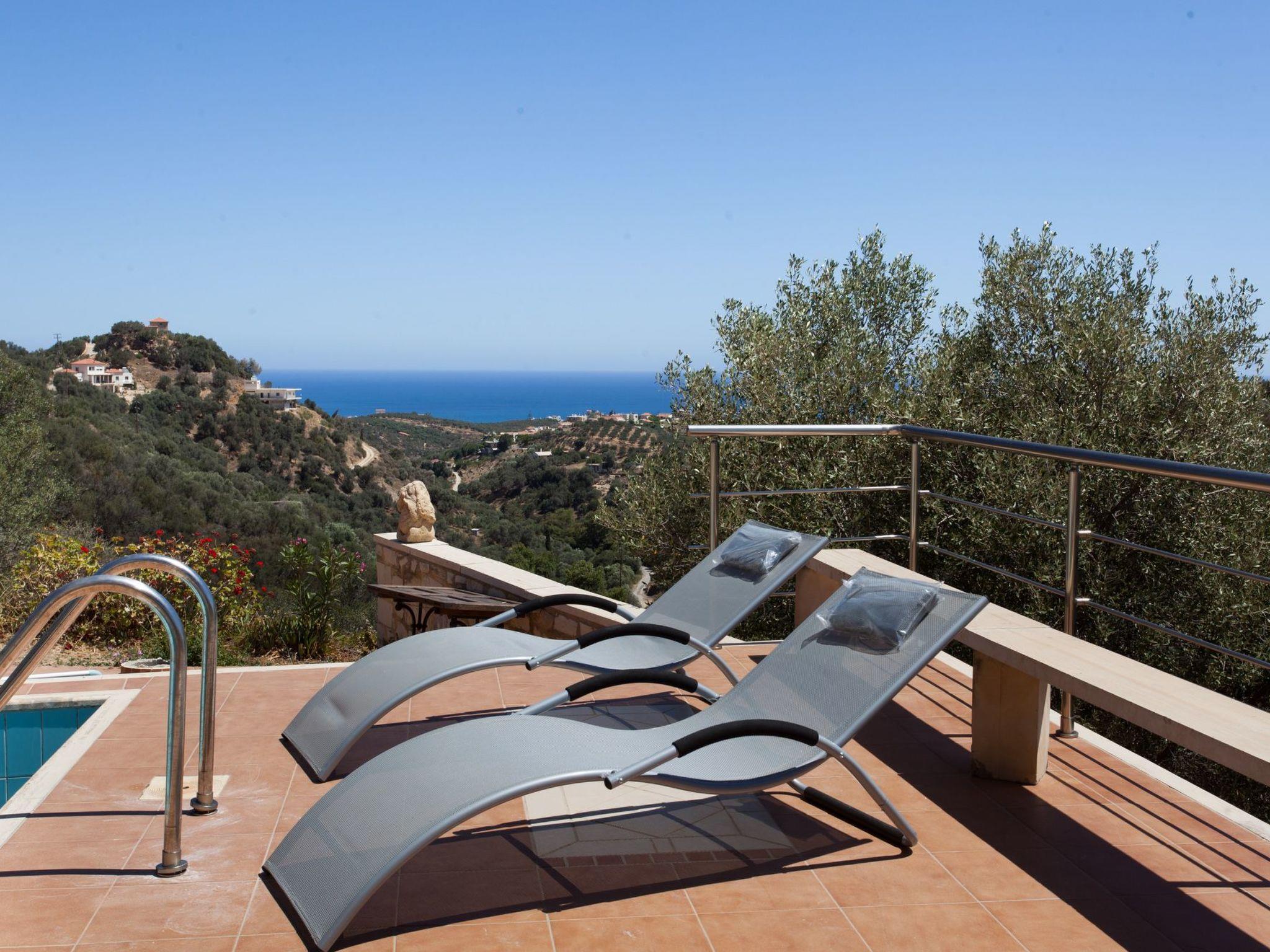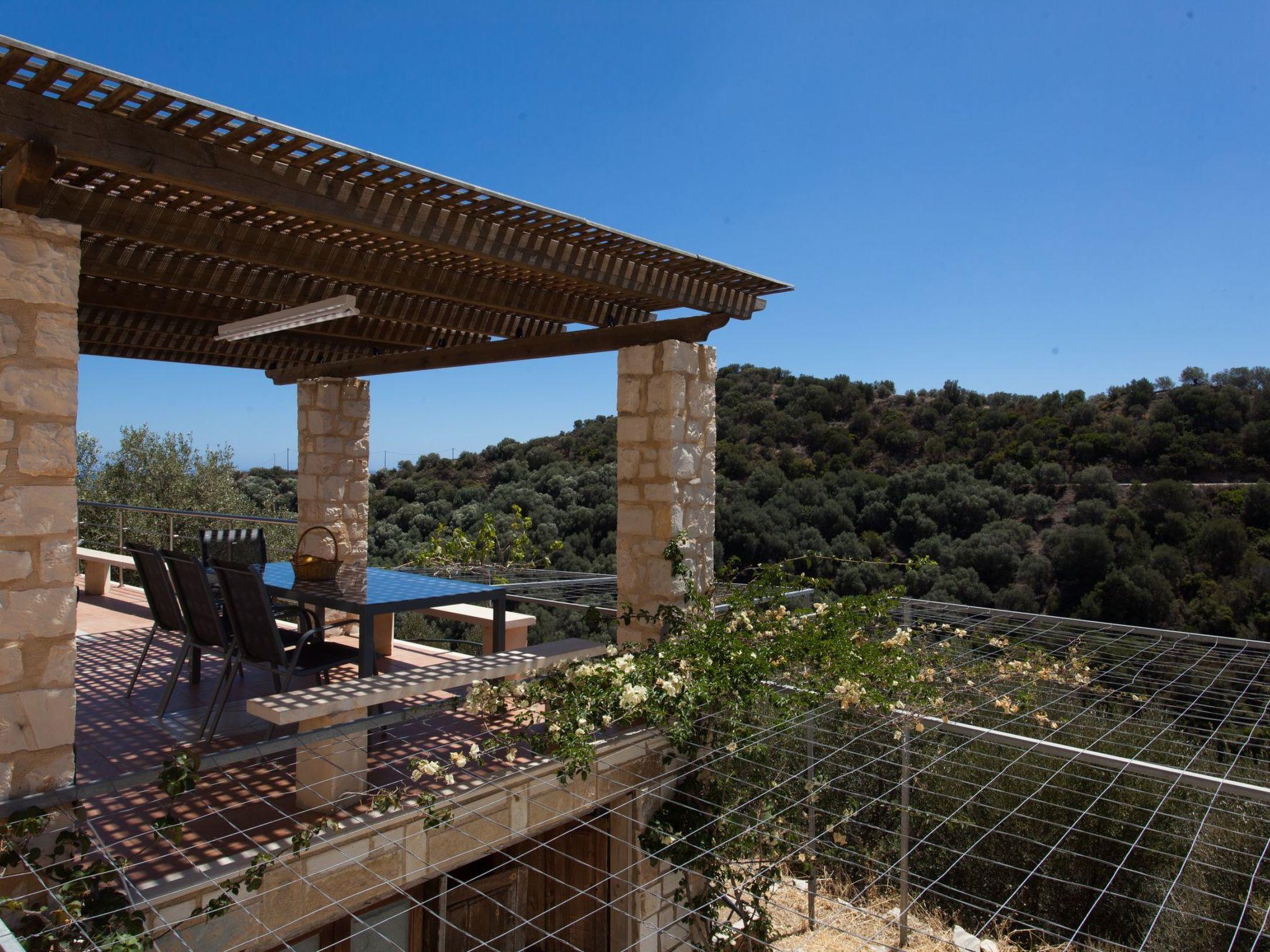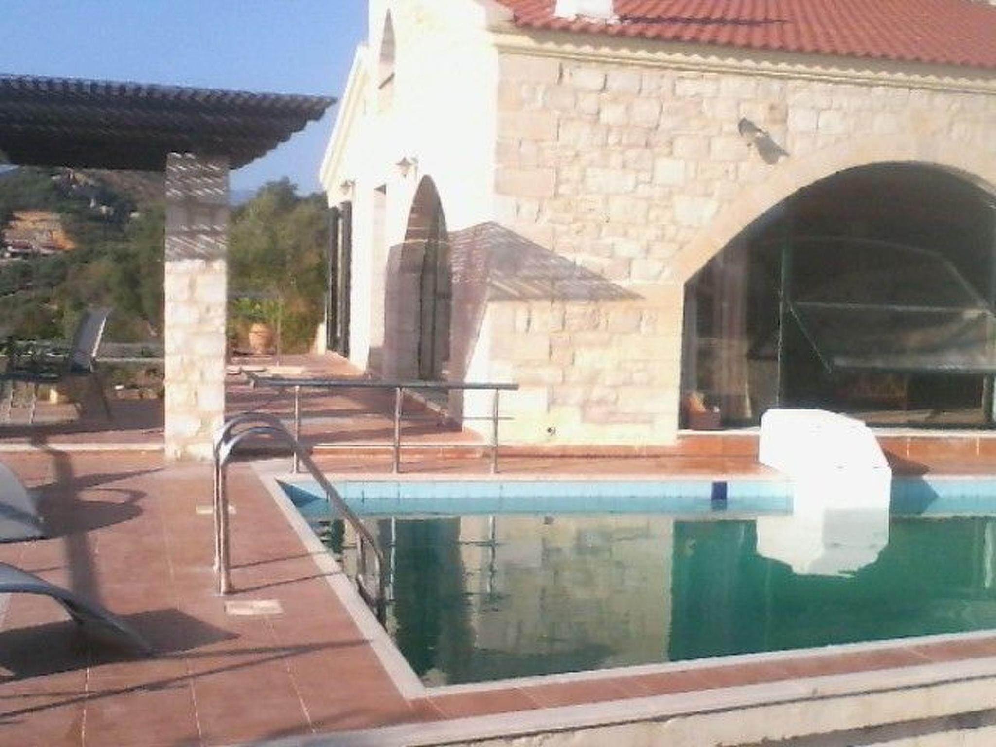 A beautiful stone-built, ecological, bioclimatic and bioenergetic house, perched on top of a verdant hill of 11,550 square meters of land, 1,800 meters from the sea The location is after the village of Ano Stalos, on a private road with minimal to zero traffic ! The villa is conveniently located 25 minutes from the airport, and 10 minutes from the city of Chania, 7 minutes from the amazing beach of Stalos. 750 meters from the center of the village of PanoStalos , with 2-3 lovely taverns, and two traditional cafes.\r\nIn the coastal zone of Stalos-Ag. Marina (about 20 minutes on foot), one of the most famous tourist destinations of Chania, there are plenty and of all kinds of shops.It is a four-bedroom house with a medium sized private pool of 32 sqm that its surrounding area offers stunning sea and mountain view! There are two floors! At the first floor of 96 sq. Meters you will find the large living room with 2 large window frames - windows 4,5 and 5,5 meters each that provide plenty of light and great view wherever you sit. in the eight-seat living room or dining room with the large glass table with the 8 chairs.Free internet Wireless WIFI Free Satellite tv! The well-equipped kitchen including all the cooking and serving tools! In the first floor there are two main bedrooms, one with a large double bed of 180 cm bedside table, toilet with mirror and built-in very large wardrobe. The other bedroom has two single beds and comfortable wardrobes and large balconiy with great view. Among them you will find the large main bathroom of the house with a long bathtub. In the second floor is a 48 sqm long floor. There is a bedroom with a double bed of 160 cm, a bedside table, a toilet with a large mirror and a built-in wardrobe.The other bedroom has two single beds. Among them you find a bathroom with shower!There is a large storage room in the basement with wood for the fireplace. a workshop, a washing machine that you are free to useThe exterior space is quite large and spacious, with a breathtaking view of the mountain and the sea, with a dining room on the veranda under a lovely pergola for eight people, next to the pool and near the barbecue. The pool is about 36 square meters, minimum depth 60 centimeters, and a maximum depth of 2.00 m. The operation of the cleaning machine is by solar energy, and the water renewal is regular! In the garden there are plenty of fruit trees and a new plantation of 200 trees of avocados Access to all areas of the house and the property is free. The area is very safe. There are no neighbors and soil morphology prevents unwanted visitors. Wild animals do not exist.The exterior space is quite large and spacious, with a breathtaking view of the mountain and the sea, with a dining room on the veranda under a lovely pergola for eight people, next to the pool and near the barbecue. The pool is about 36 square meters, minimum depth 60 centimeters, and a maximum depth of 2.00 m. The operation of the cleaning machine is by solar energy, and the water renewal is regular! In the garden there are plenty of fruit trees and a new plantation of 200 trees of avocados \r\nAccess to all areas of the house and the property is free.\r\nThe area is very safe. There are no neighbors and soil morphology prevents unwanted visitors. Wild animals do not exist.The beautiful city of Chania, with its old struggle with the famous Venetian narrow streets, with its magnificent Venetian harbor with hundreds of taverns, cafeterias, entertainment venues and all sorts of shops, is approximately 10-15 minutes by car. The highway is only 2 km from our home and so it is very easy to go to the famous landmarks of the law (Samaria’s Gorge, Balos , Grambusa, Elaphonisi ,Paleohora-Gialiskari,Falaserna,etc…)