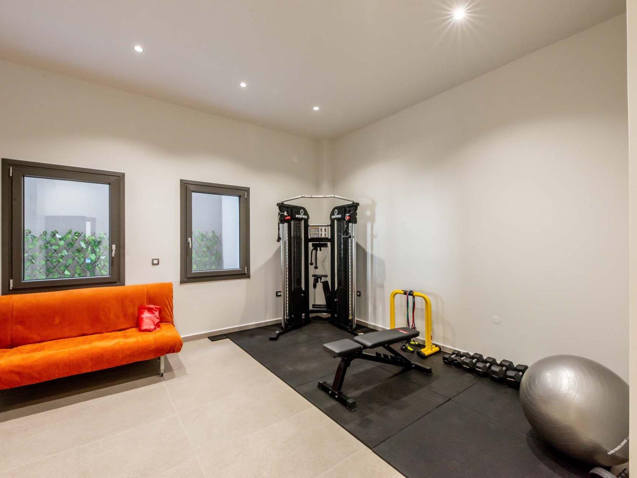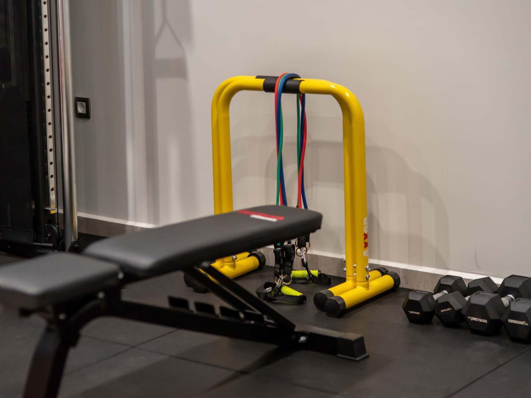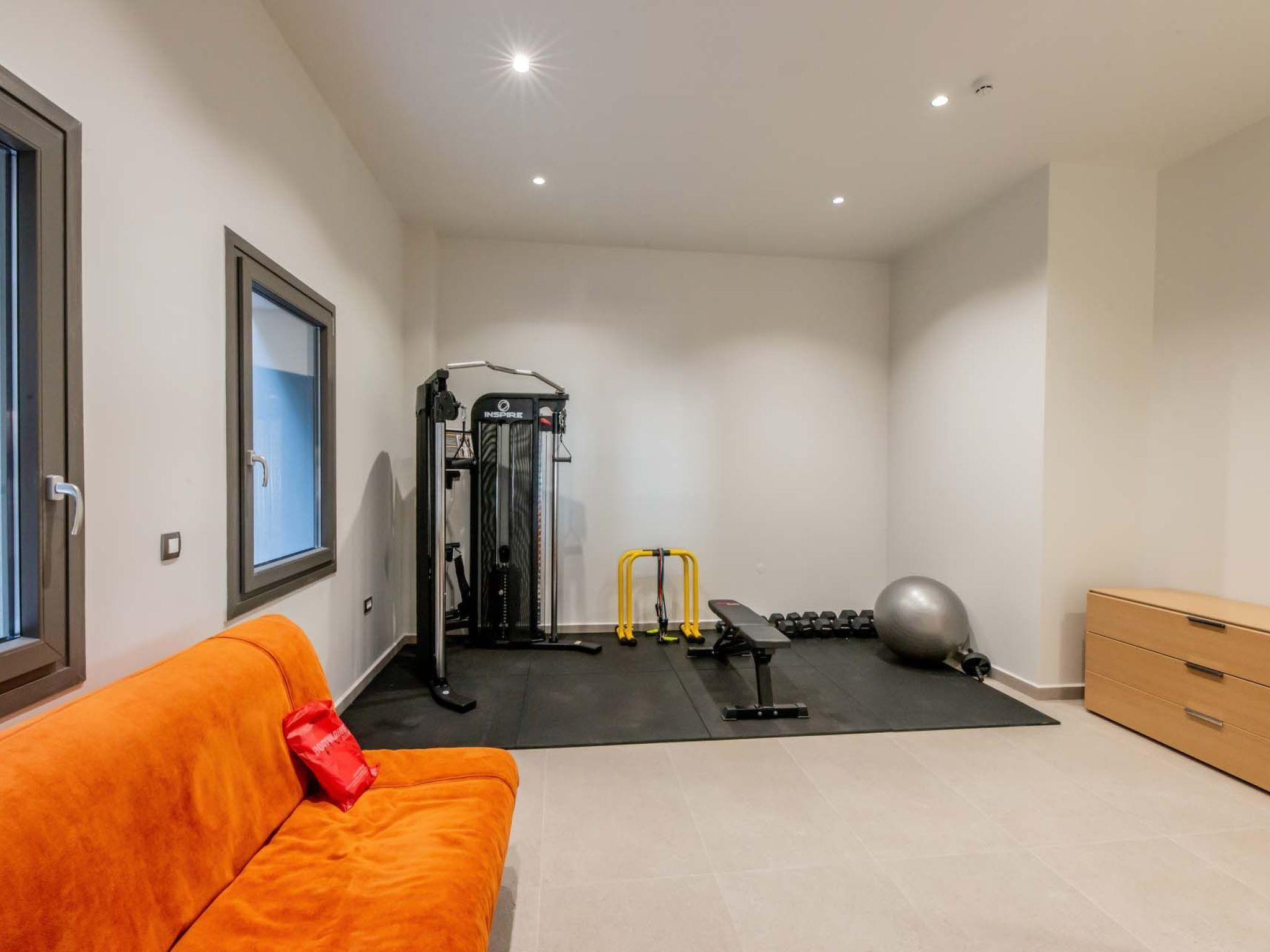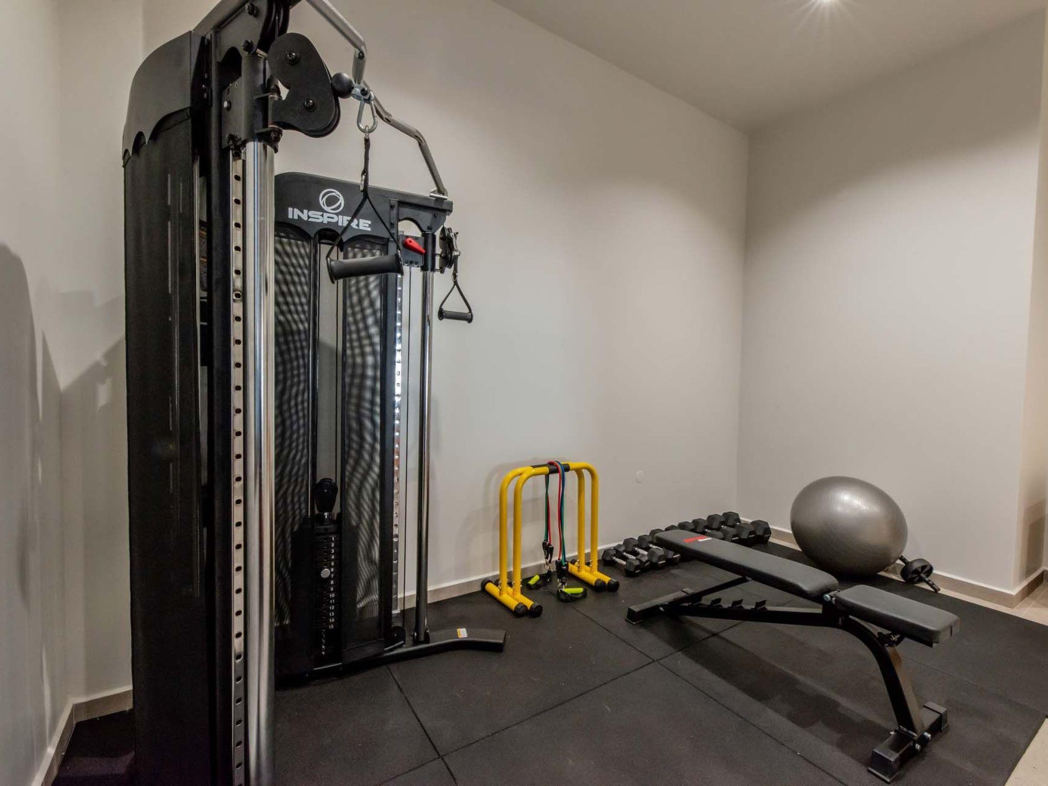 Gym (multi fitness device, dumbbells, fitness ball, fitness bench) Sofa bed in the gym area for 2 people (1,60 X 2,00), ensuite shower