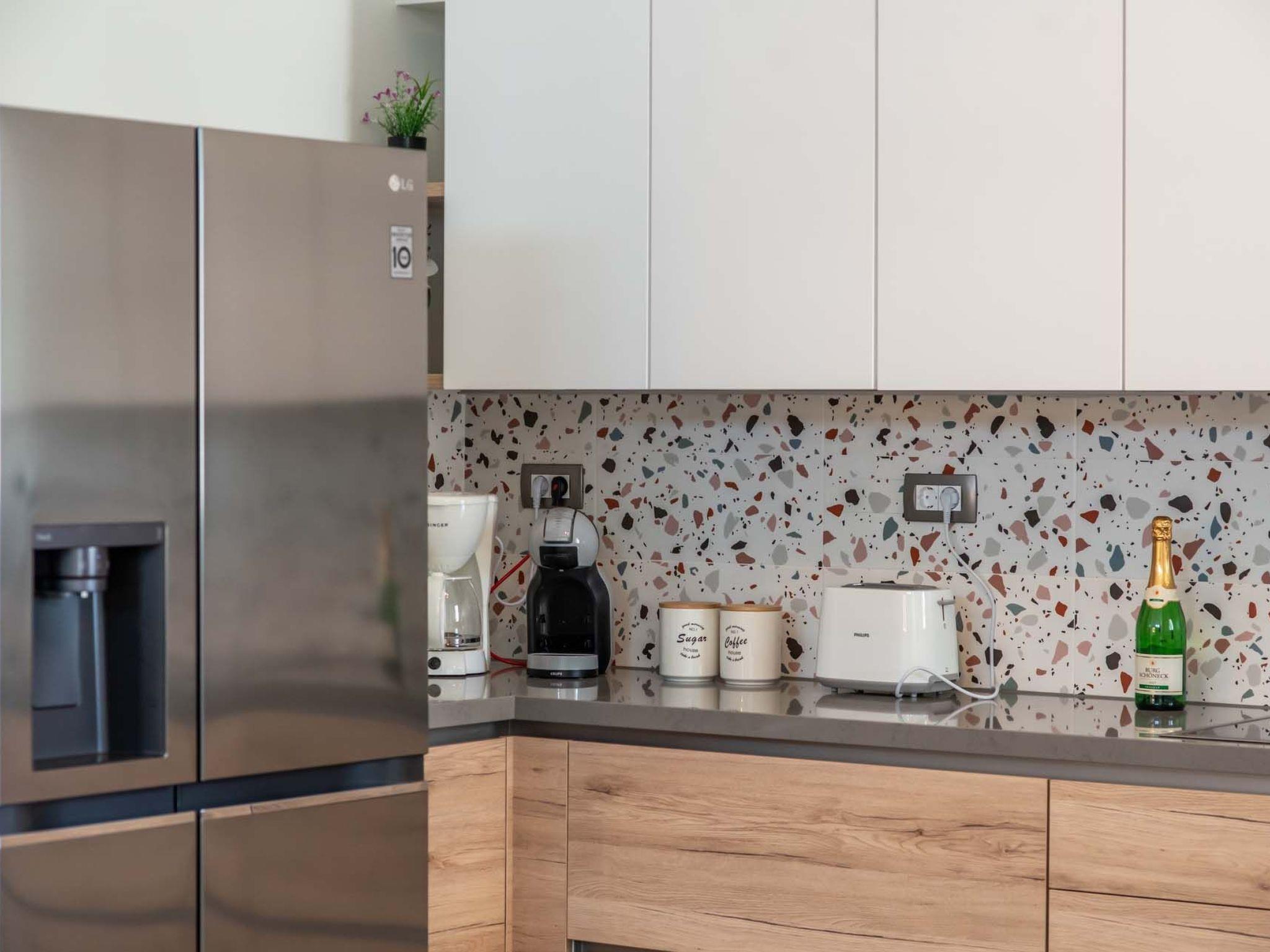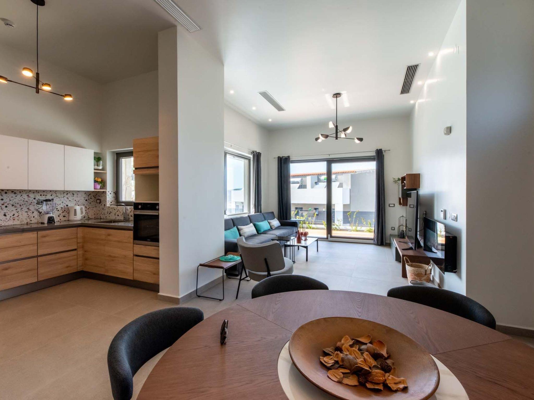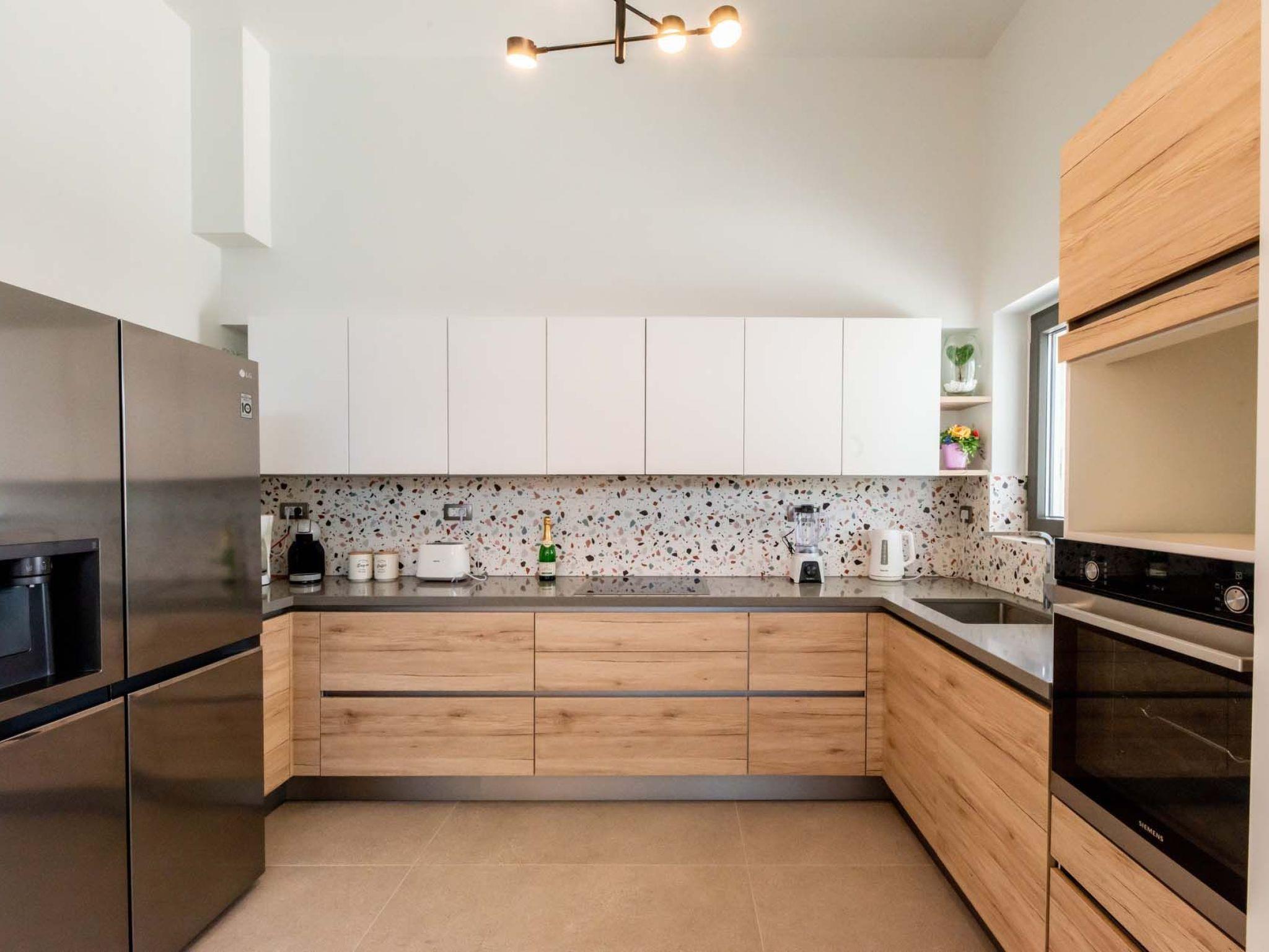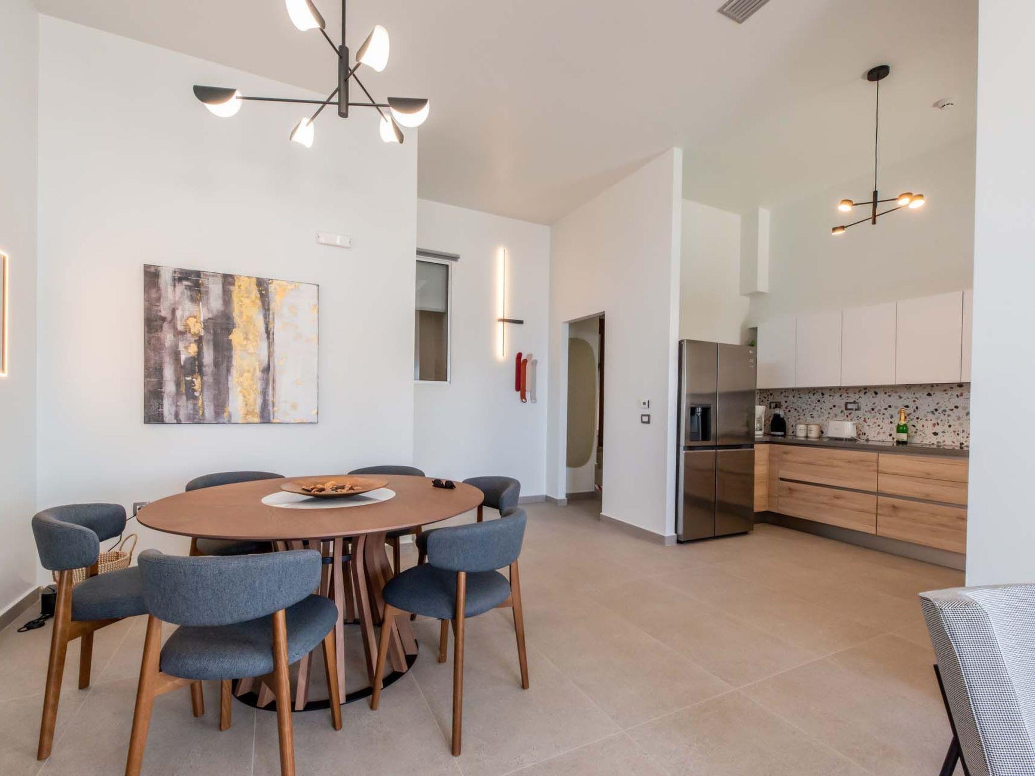Open plan fully equipped kitchen with a dining area for 8 guests & modern appliances