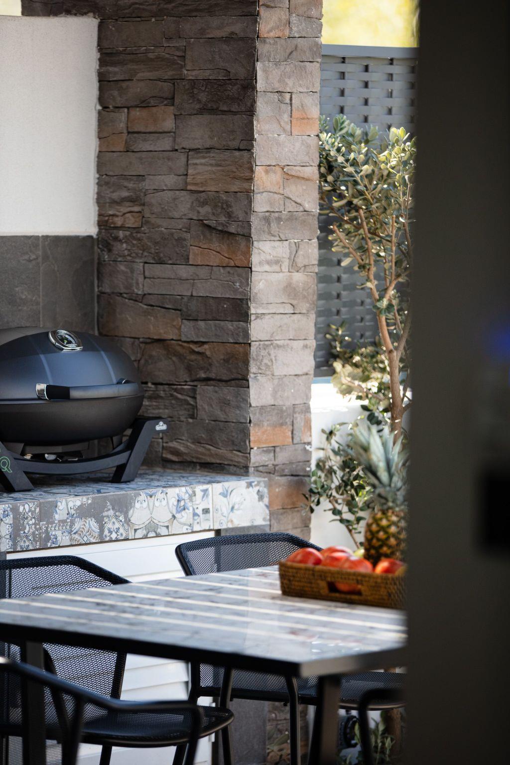 Fully equipped outdoor kitchenette and electric grill BBQ
