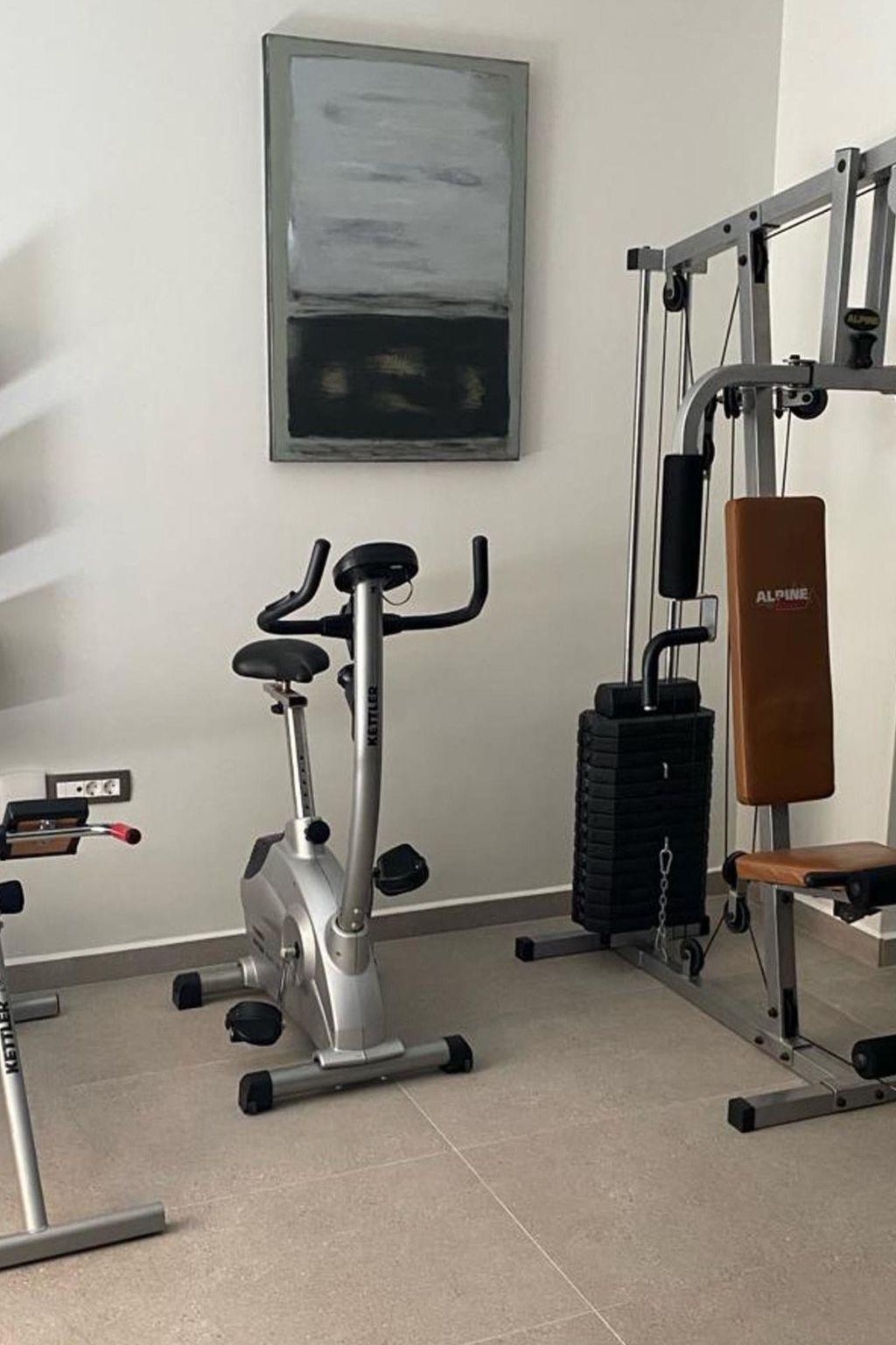 Gym area (multifunctional gym machine, stationary bicycle, back extension machine, dumbbells)
