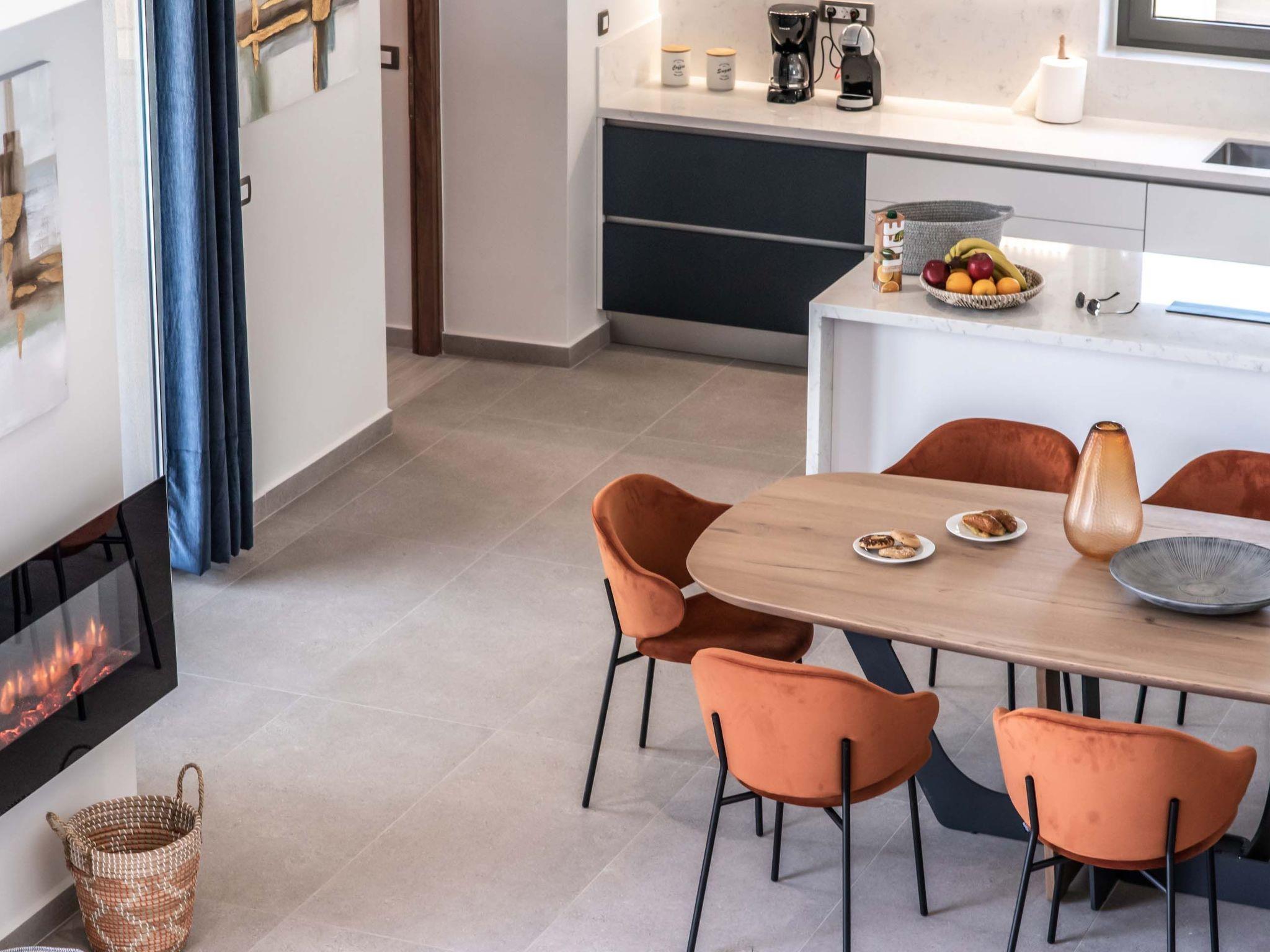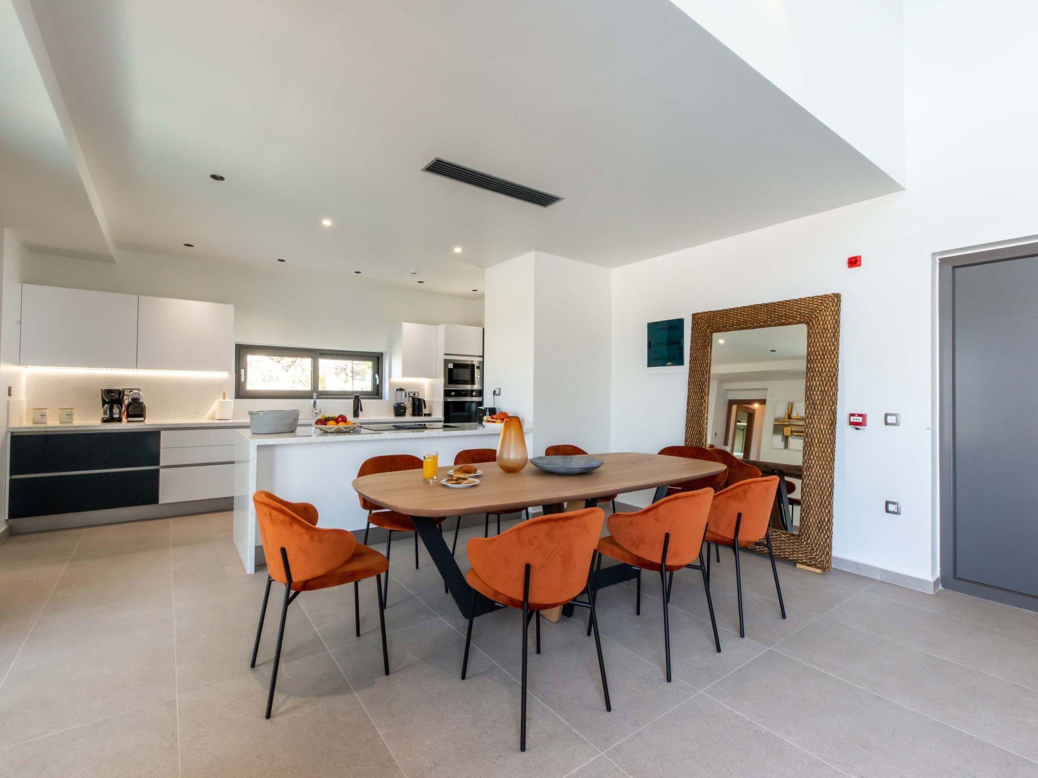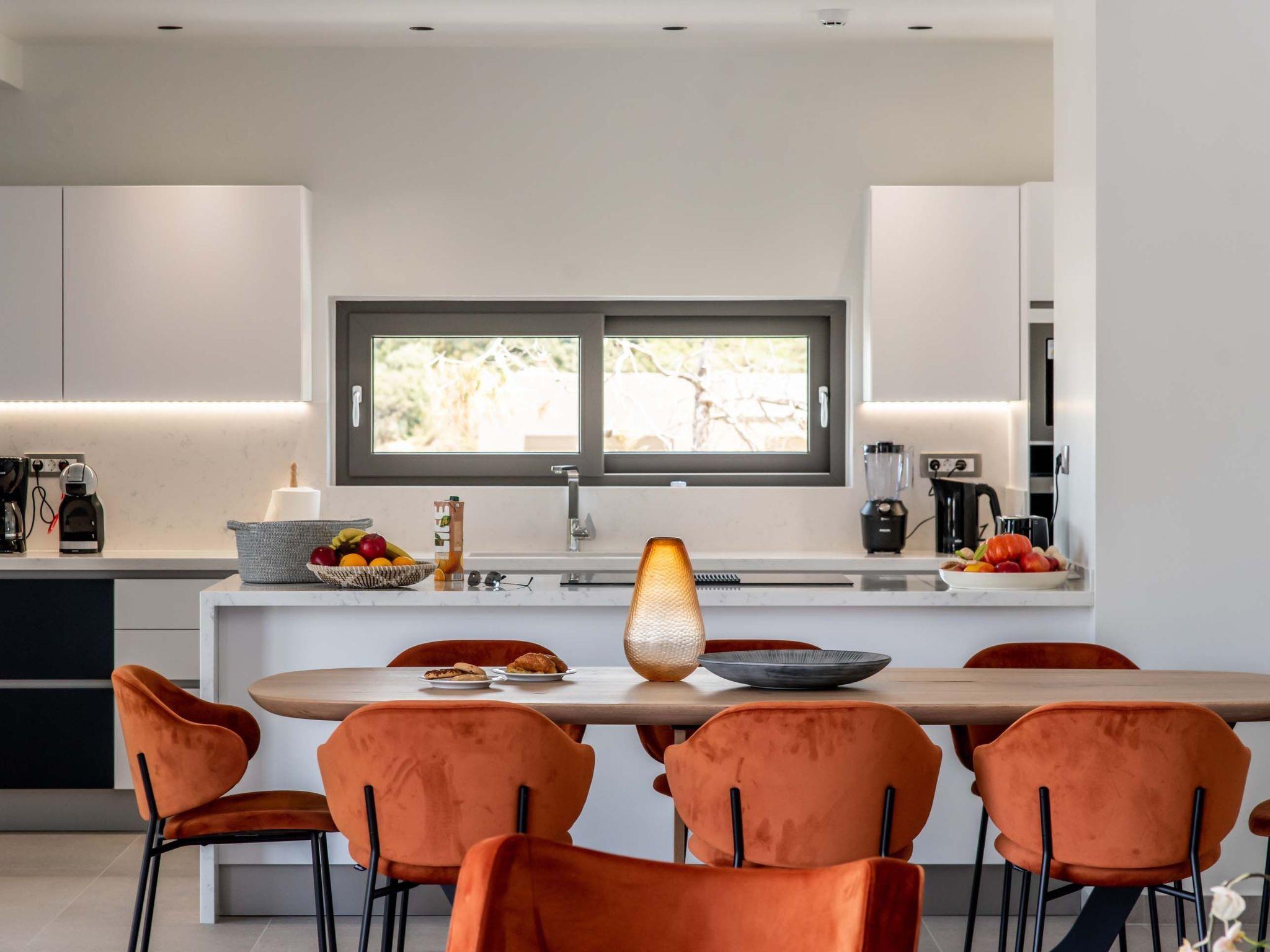 Open plan fully equipped kitchen with a dining area for 8 guests & modern appliances