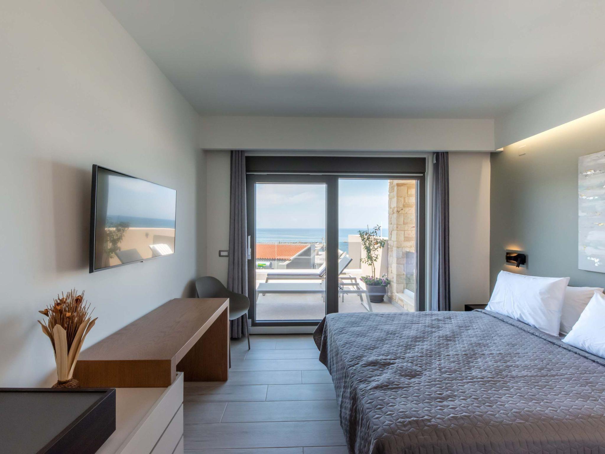 Bedroom 1: Double size bed (1.66x2.06), A/C, 43’’ Smart Satellite TV, ensuite bathroom with shower, sea view, direct access to the pool area