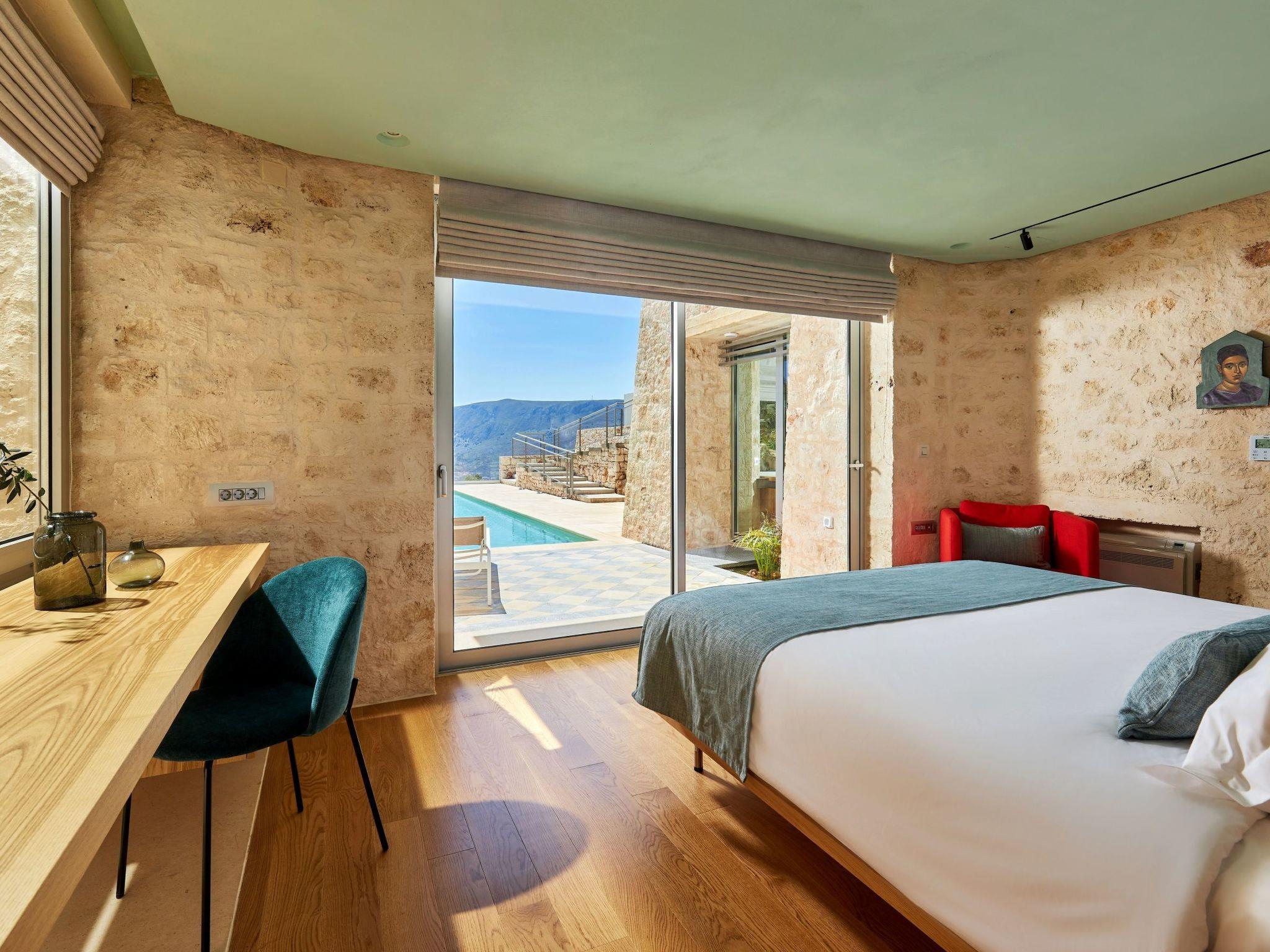 The Rock Apartment – A double bed apartment with a kitchen and living room. Carved into natural rock, featuring glass walls and total tranquillity.