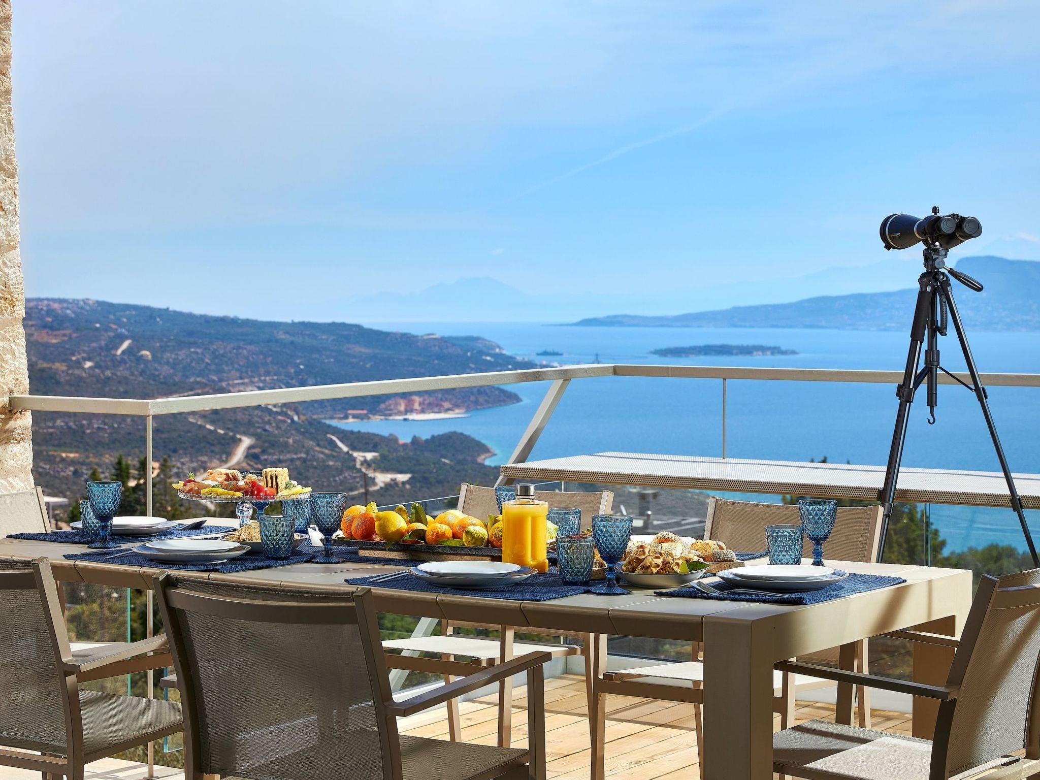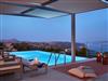 Enjoy the beautifully landscaped outdoor entertainment area with two heated pools, a fully equipped outdoor kitchen, a BBQ, a shaded dining area, and sun loungers, all with sweeping views over Souda Bay.
