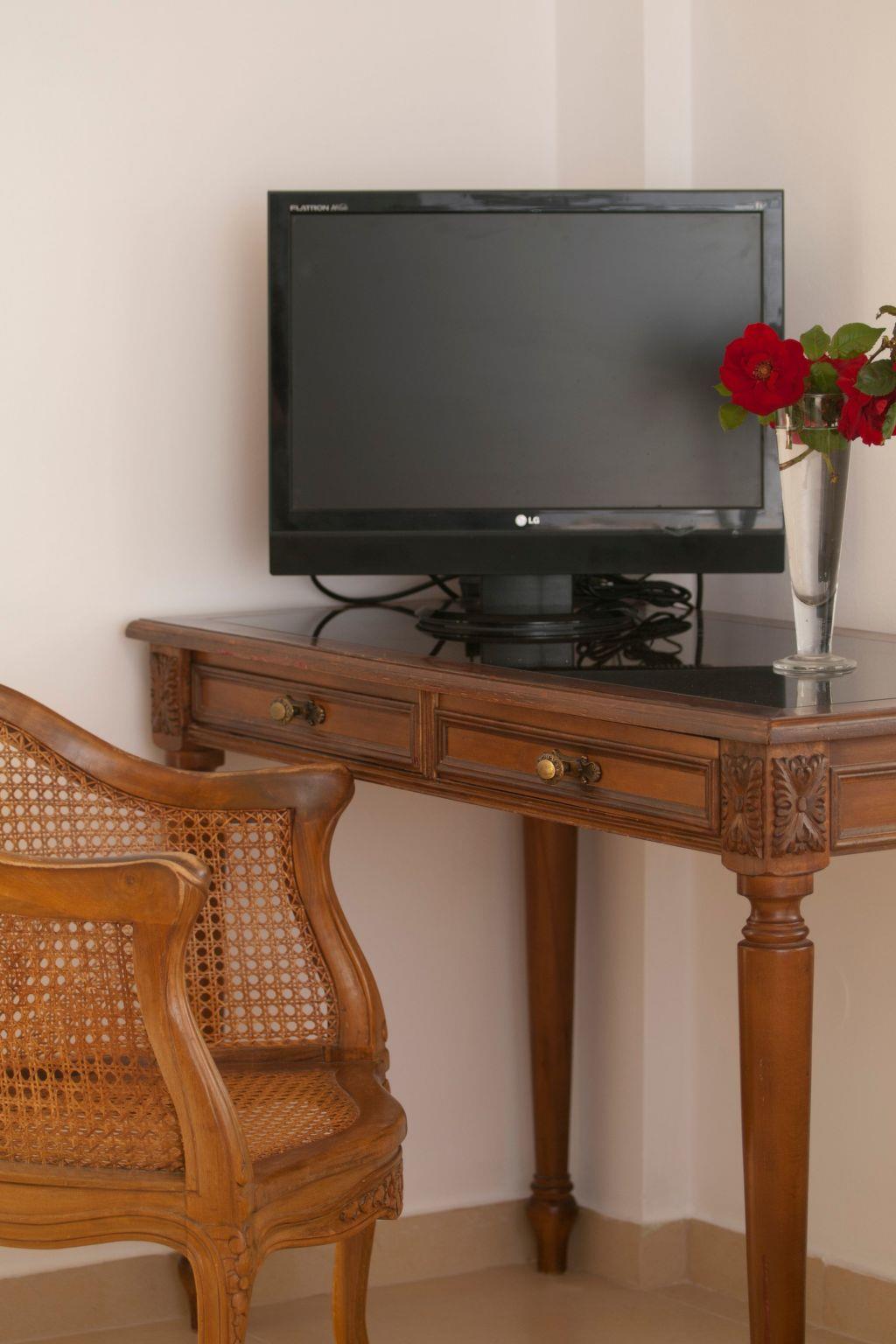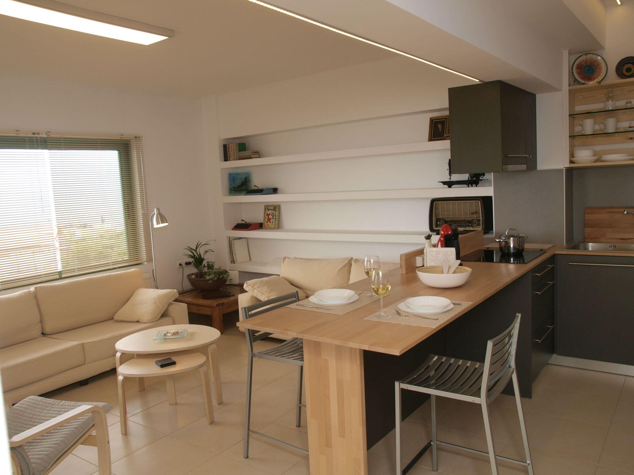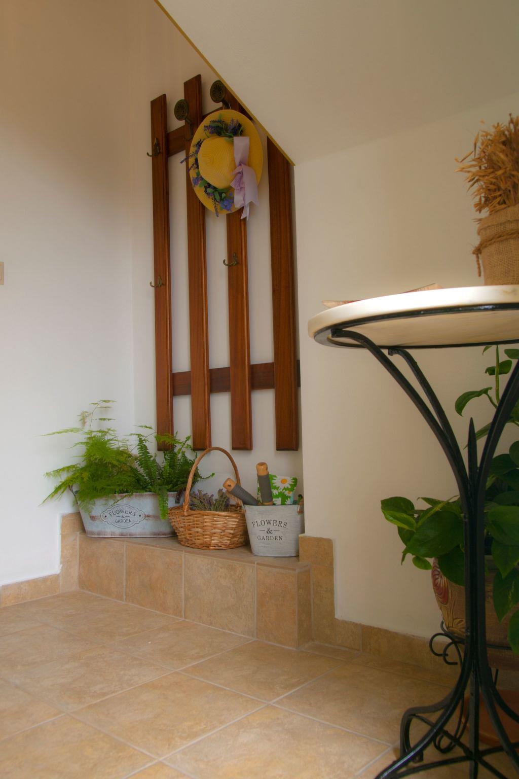 The appartment is dominated by the element of natural wood. Basic furniture were designed and constructed with love and taste in hand, while some vintage pieces of special beauty are distinguished, such as the desk and two mirrors of the bedroom and bathroom, the 40's radio and the old sewing machine.The apartment is designed for people who love nature as it is located next to the rock garden, which is a small botanical garden and is shaded by large pine trees. Already in the entrance of the apartment awaits visitors a "rural" corner, with gardening tools for those who want to spend some time soaking in the garden and learning from the owner the uses and qualities of Cretan herbs.