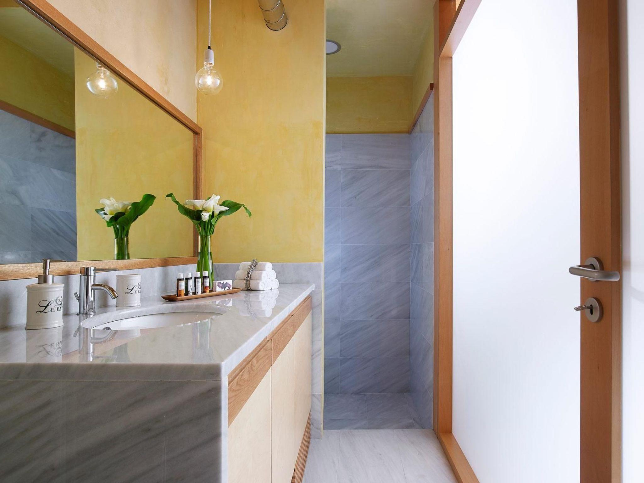 Two of the three bedrooms have access to their own balcony furnished with a table and chairs, with an extensive view over the rooftops of the fishing village. The living room opens directly onto your private roof terrace with a big wooden table and six chairs. You can spend cosy, leisurely evenings here around the grill, under a starry sky and with a view over the old town.