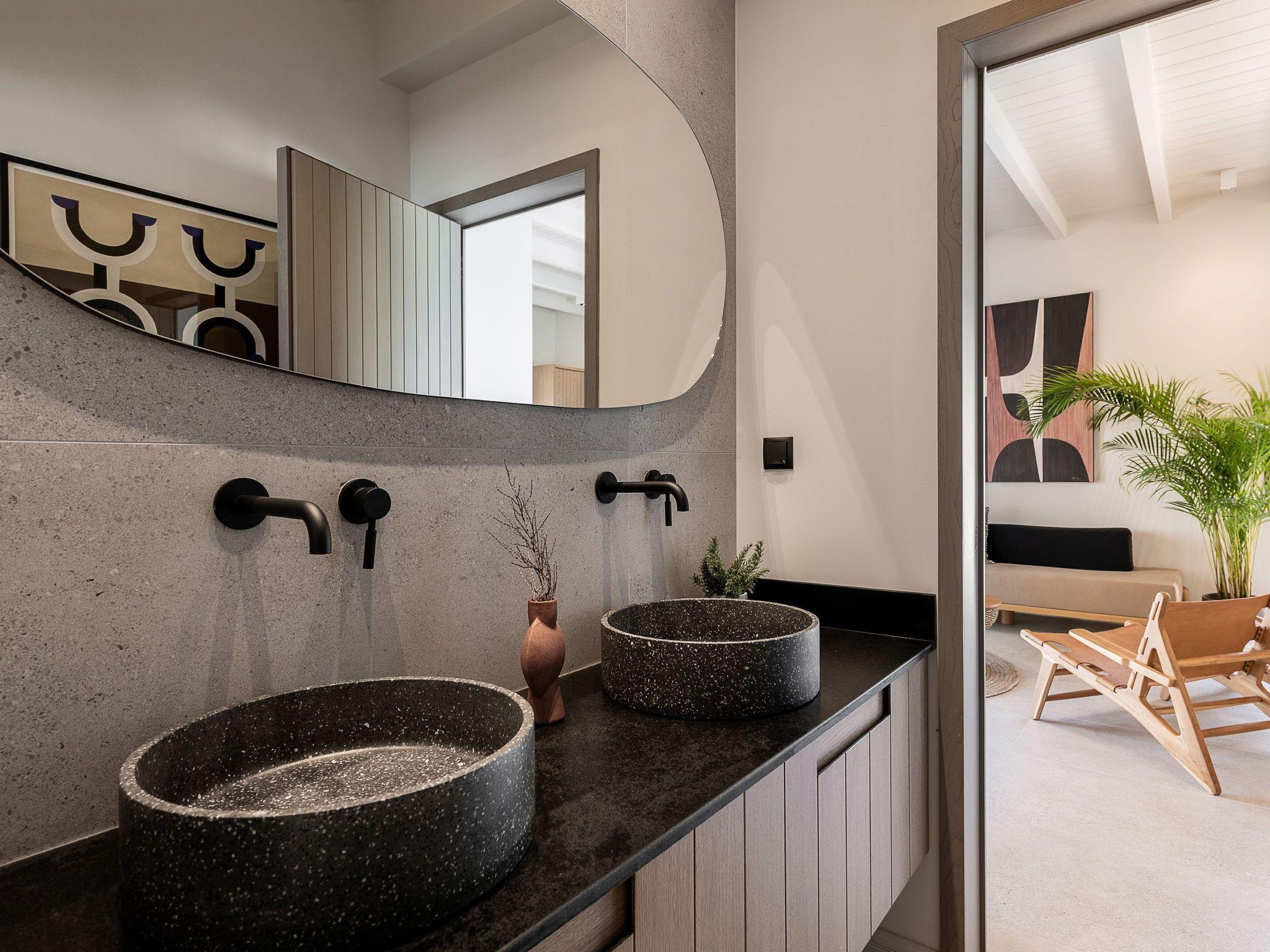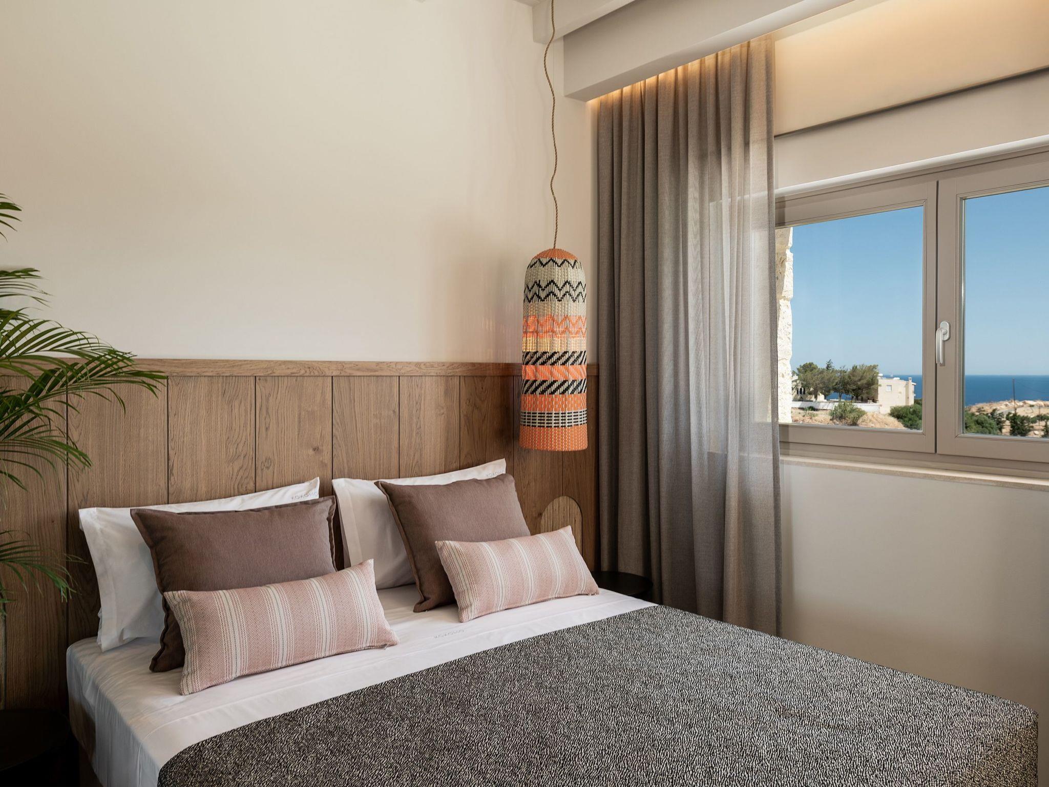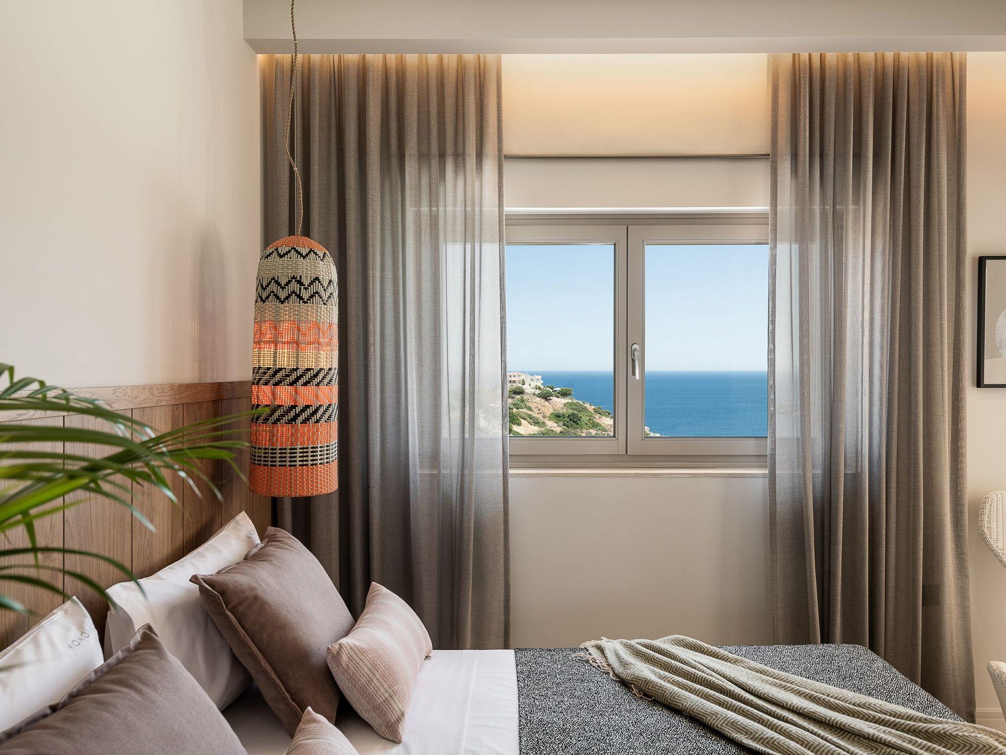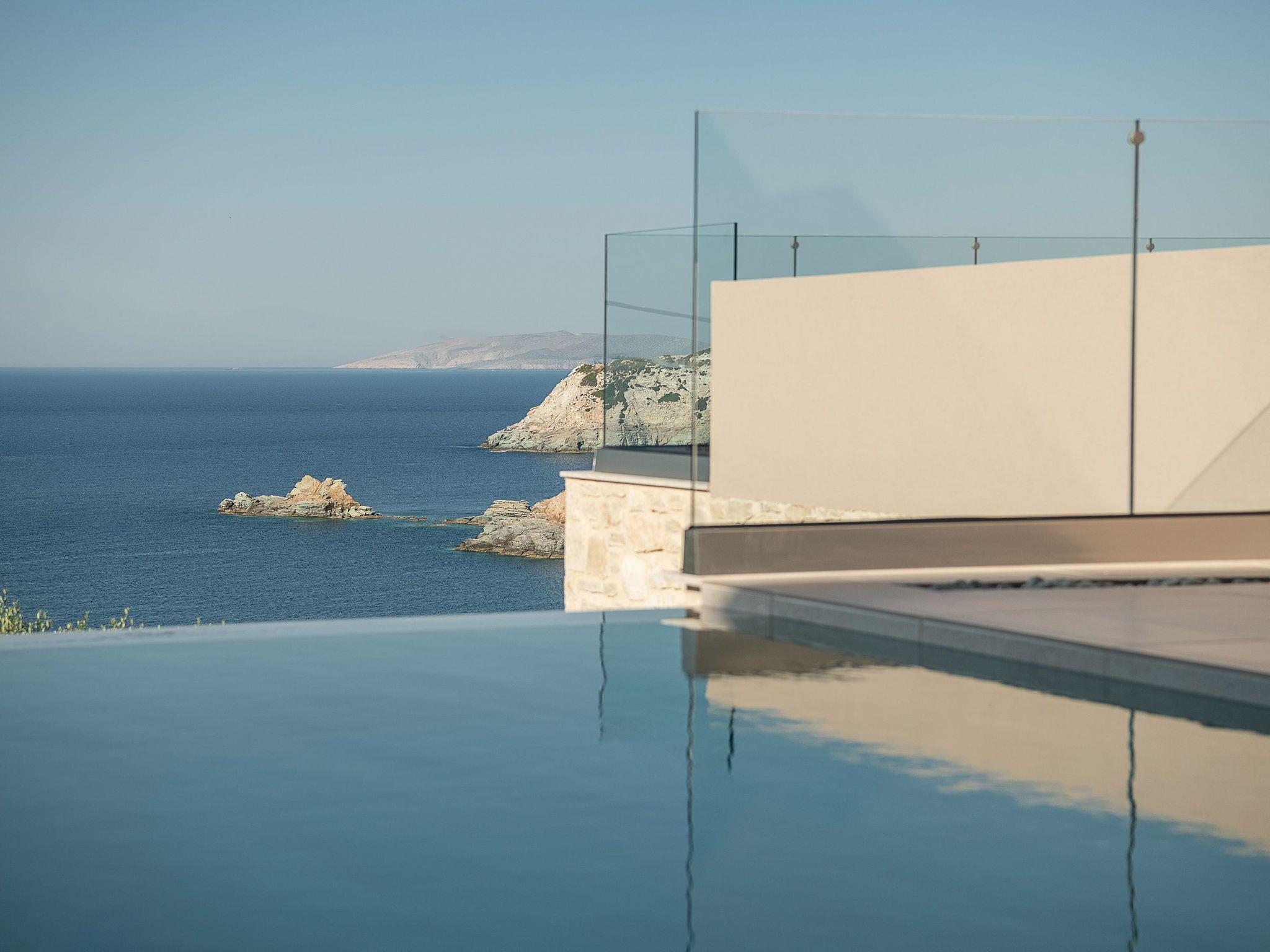 Kokomo Villas are located on a hill overlooking the bay of Lygaria in the greater area of Agia Pelagia. It can be reached from Heraklion/Heraklion Airport in about 25 minutes. It is easily accessible from the Highway and ideal as a base for exploring places of interest. Although close to various magnificent beaches, restaurants and supermarkets, it is also perfect for relaxing in privacy.The villa is characterized by high aesthetics and stunning panoramic views of the Cretan Sea. The earthy tones of the spaces merge into the deep blue of the sea and sky, offering an unforgettable sense of harmony and gentleness. Every aspect, material and element has been carefully selected to wrap you in a state of calmness and satisfaction. All you need to do is enjoy.Villa Thea hosts 1 bedroom with king size bed and panoramic sea view as well as directs access to the front veranda. Guests will enjoy the lovely stylish bathroom with double sinks and double showers. The spacious living-room with a gorgeous view of the sea is connected to a fully equipped open kitchen and dining room. The living room also opens out to the front veranda, which offers a dining table and barbeque (gas). Just below the veranda, there is the pool area which has a private swimming pool with sunbeds, an outdoor shower and lounge poufs.Furthermore, Kokomo Villas has solar panels installed to provide some of the energy needed in the property through them. IMPORTANT NOTICE: This property is not suitable for children from 2 to 7 years old, since there is an infinity pool and some not covered areas