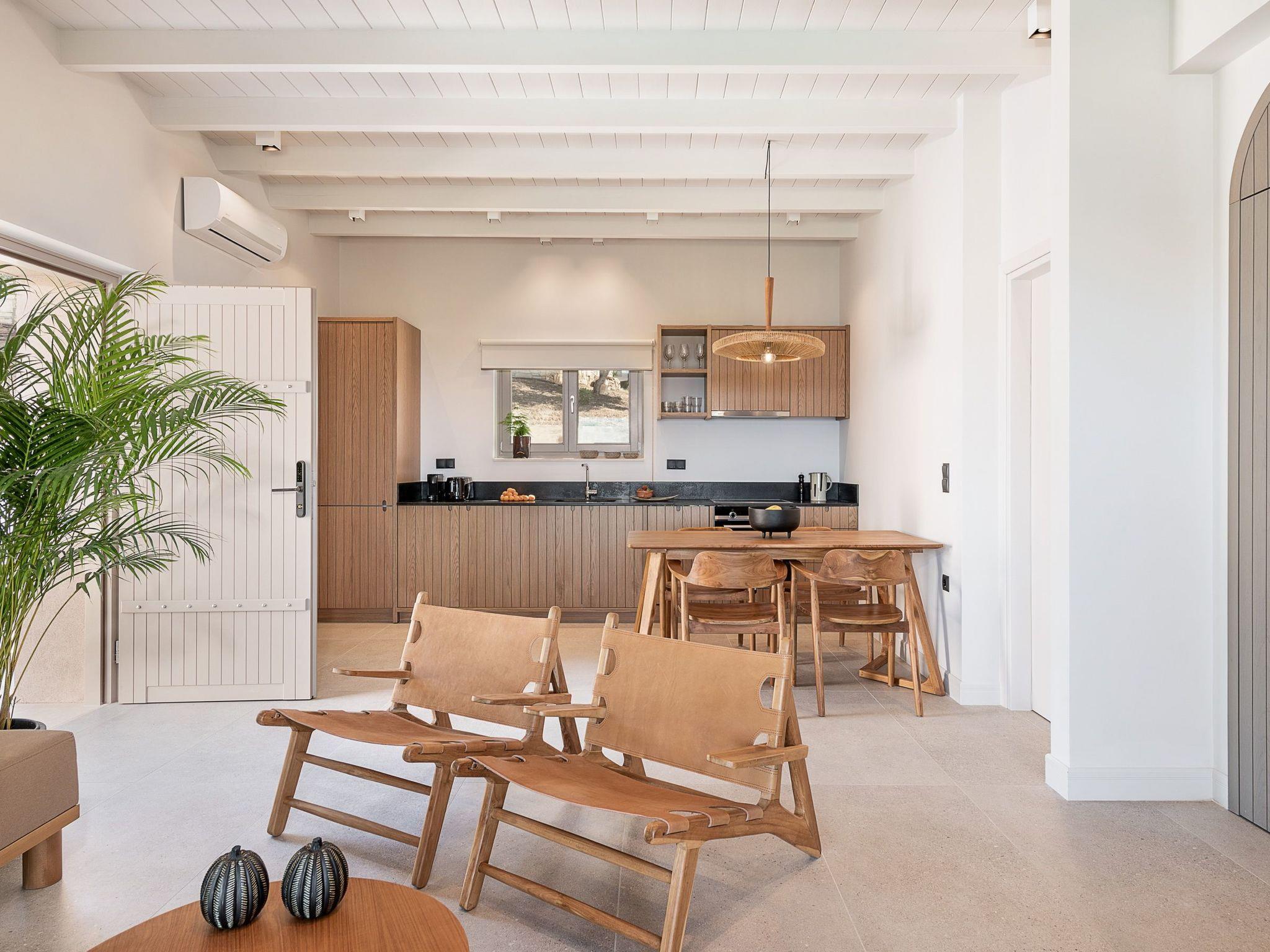 Exterior Area:-First of all, all the exterior areas of the property are private and also provide full privacy- 24m2 swimming pool and depth 1.40- Fully equipped portable barbecue area with gas- outdoor dining tables under shadows with views to the sea and the surrounding landscape- Different places to relax under a shade or under the sun along with sun beds, umbrellas, dining tables or exterior sofas- Parking spaces