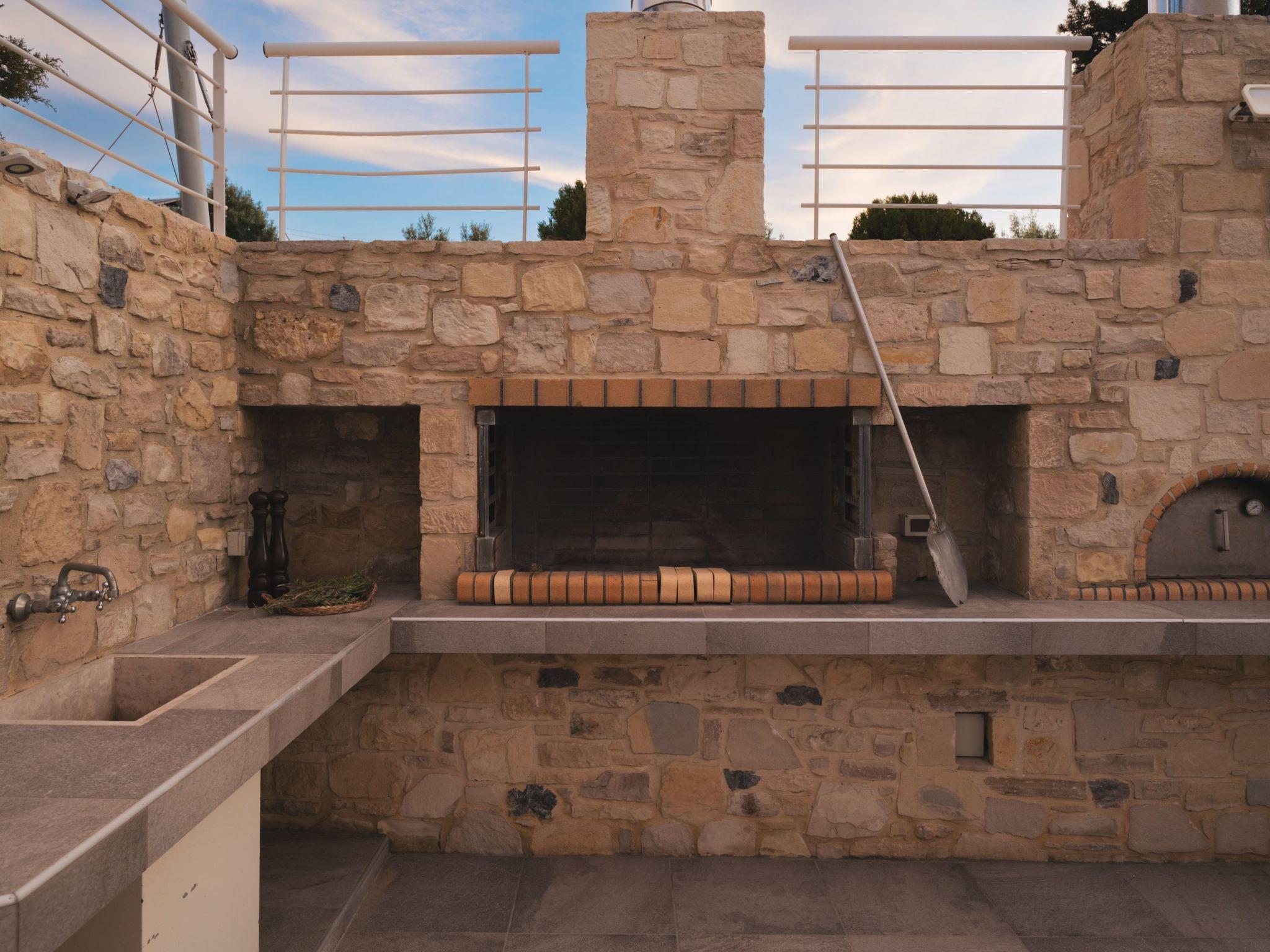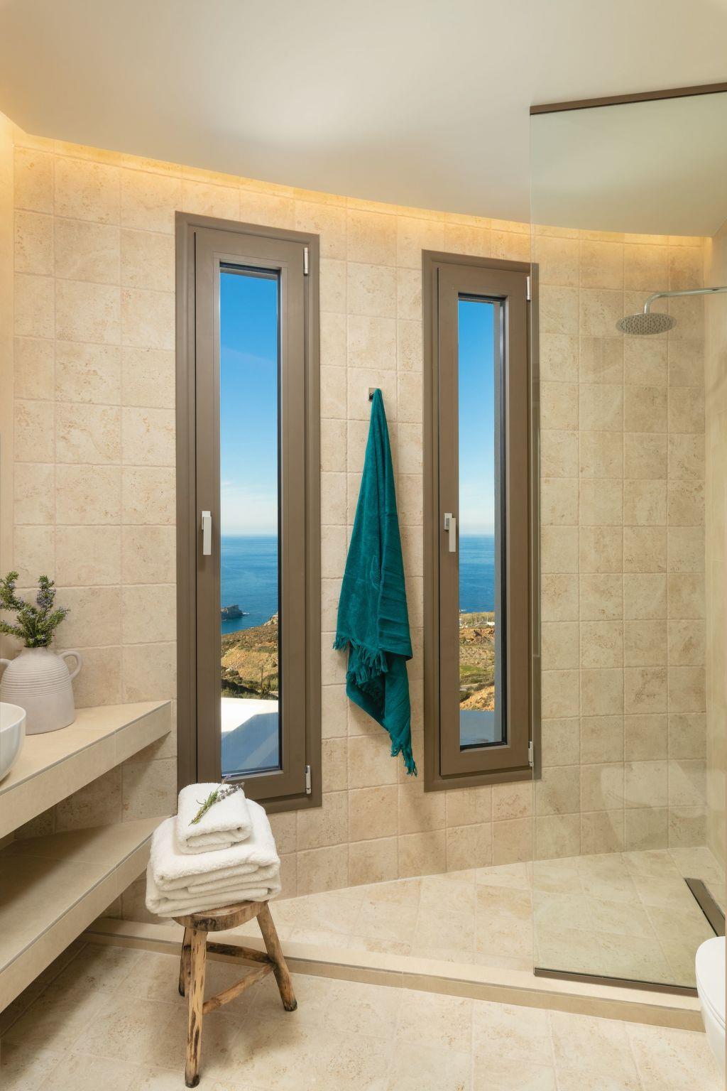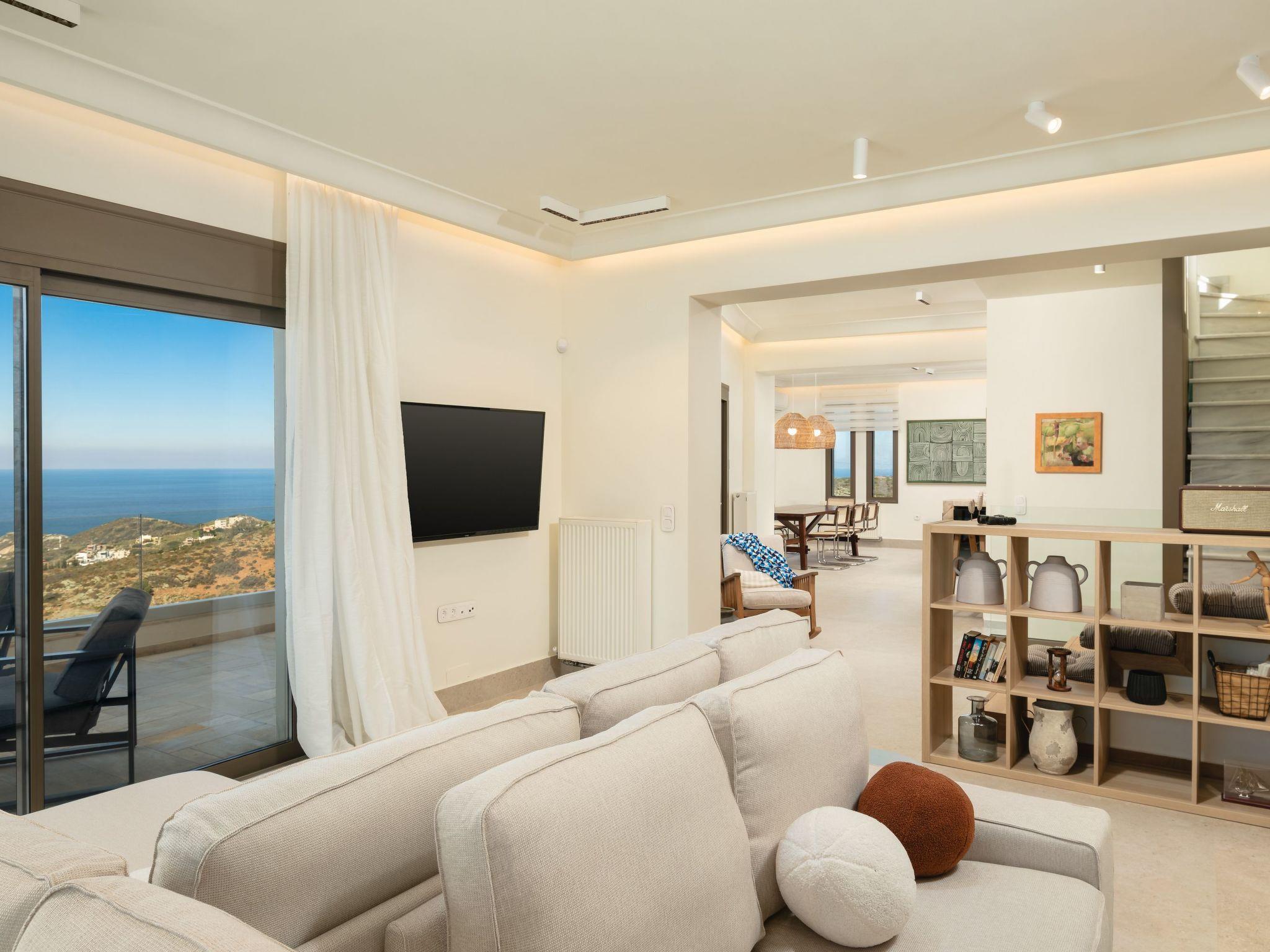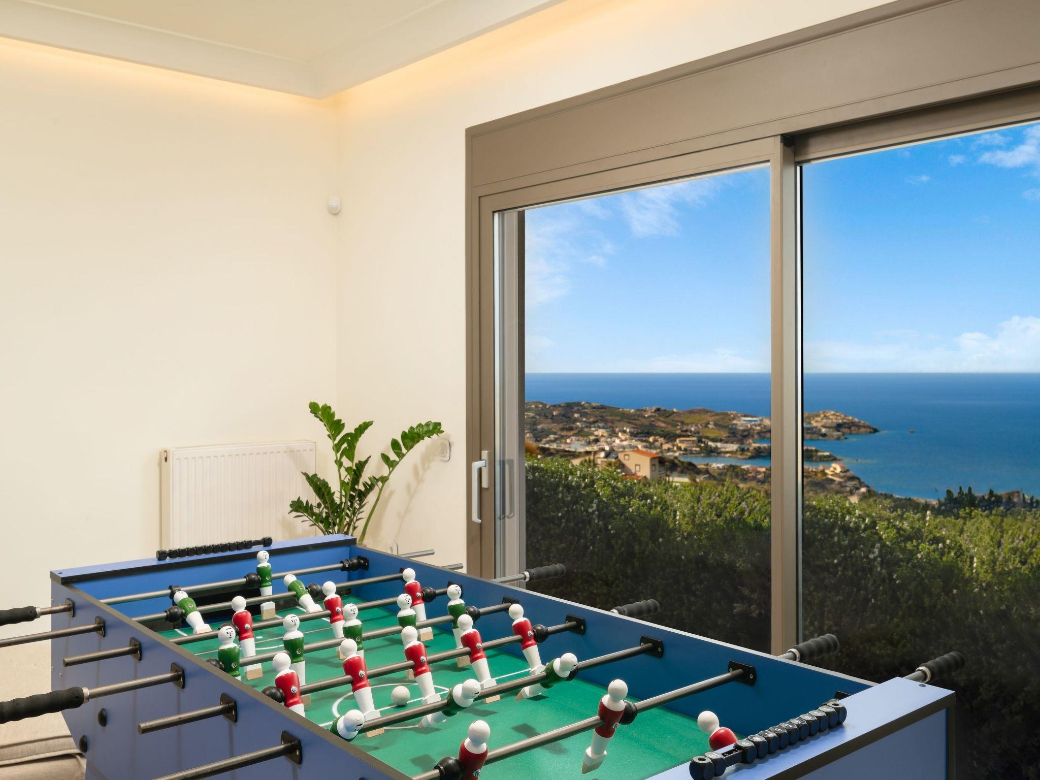The villa features 6 spacious bedrooms with comfortable beds, all with air conditioning and ensuite or dedicated bathrooms. Enjoy restful nights and wake up to the sound of the Cretan breeze.