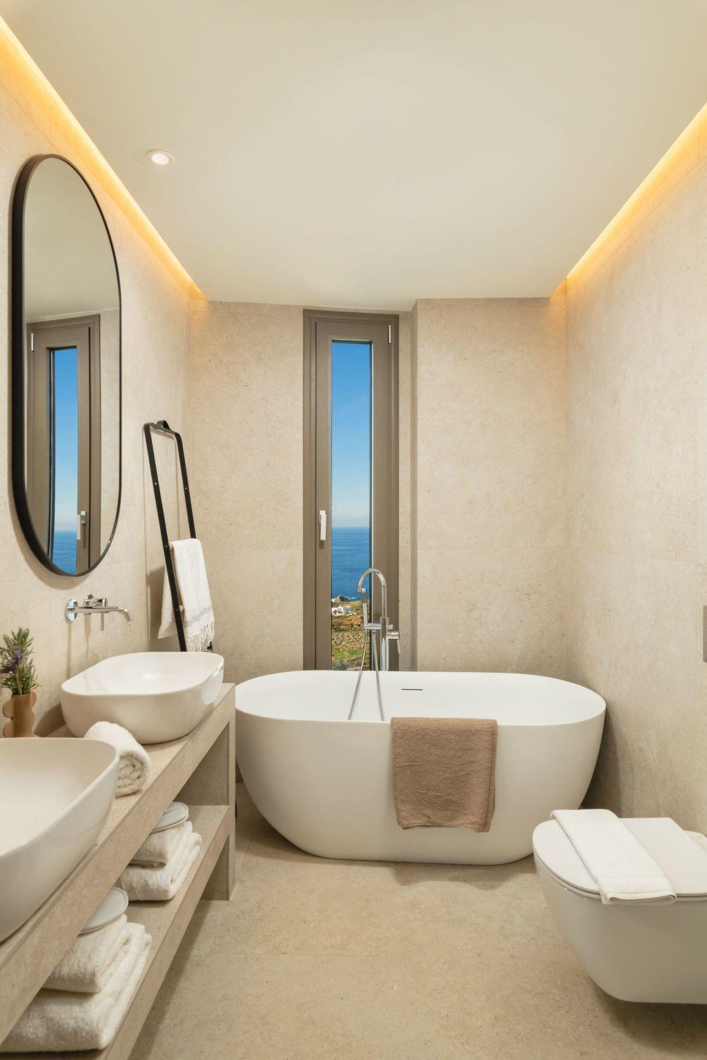 Just a short drive from Heraklion, Blue Key Villa offers a luxurious escape for families and groups of up to 14 guests. The villa offers two stylish living rooms, designed for relaxation and entertainment, with a smart HDTV, Bluetooth stereo, air conditioning, and a PlayStation 4. The second living room features a home cinema setup, Bluetooth stereo, table soccer, and access to the spa zone (yoga, sauna, steam room). It’s the ideal space for both winding down and socialising.
