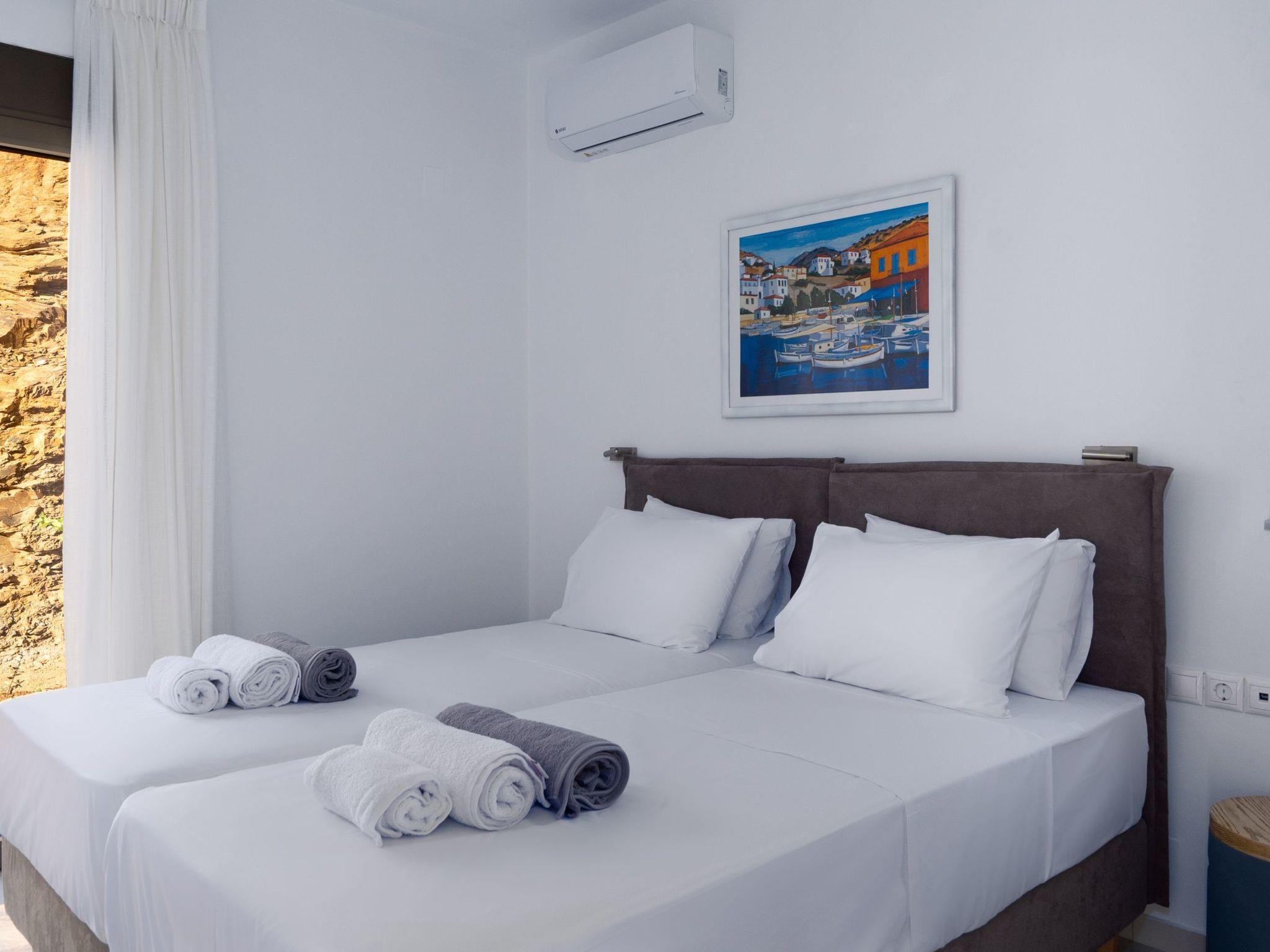 Build by local architects and builders these villas capture the essence of their fine location. Situated on the bay of Aghia Pelagia, enjoys excellent views of the deep blue of the Aegean Sea. The interiors are modern and spacious for the residence while their high-class kitchen ensures meals of excellence. Dinning is available both inside and outside under pergola with the magnificent vies. The exteriors are permeated by the tantalizing scenes of levanter rosemary and theme. Pool loungers and shade sitting makes daytime leisure around the pool as relaxed as possible. Bedrooms are equipped with all you can wish for a dream night. Ensuite bathrooms and showers ensure the privacy of each bedroom. Larger groups wishing to travel and enjoy together, both villas can be combined