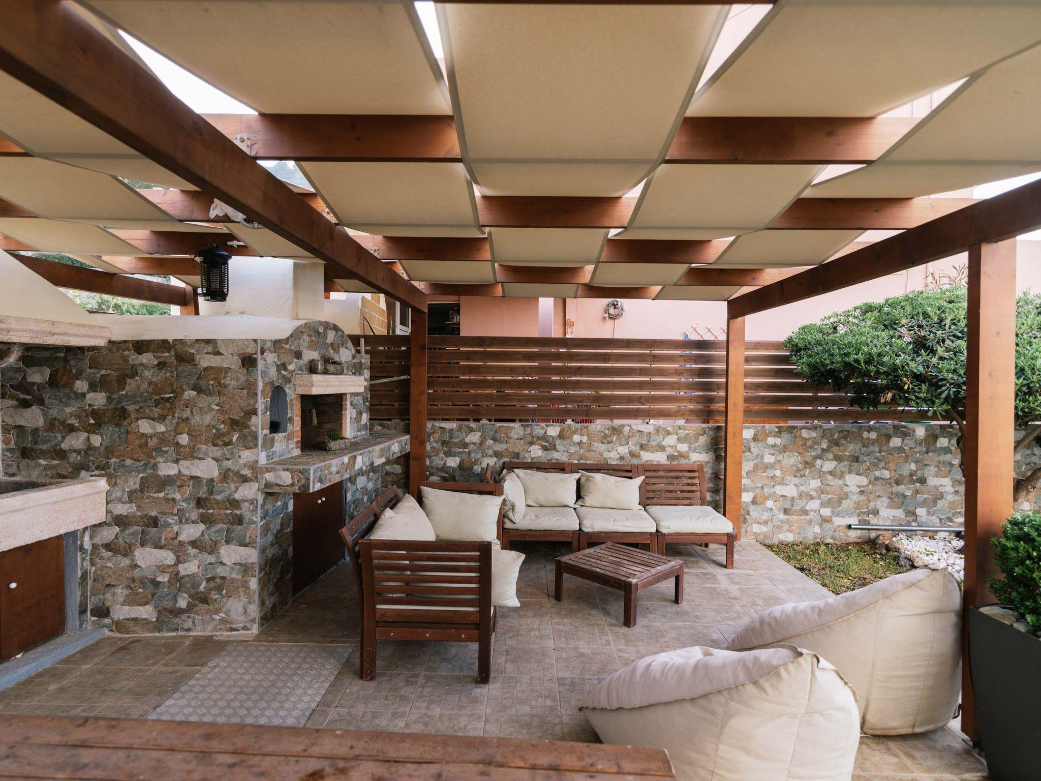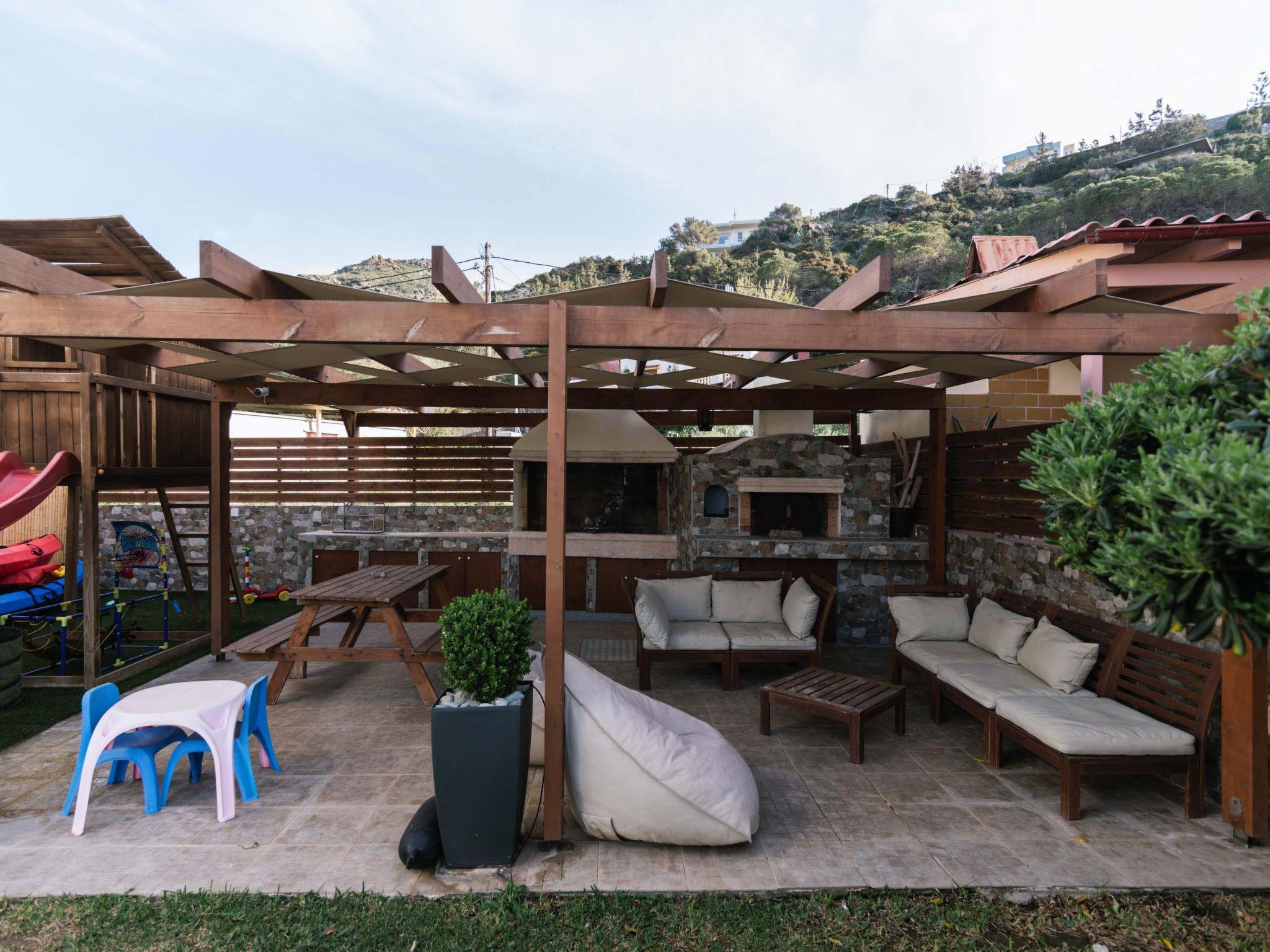 The villa offers lovely panoramic sea views, with a private big courtyard that includes a BBQ,a beach hut,two kano kayak + a SUP and a swimming pool.