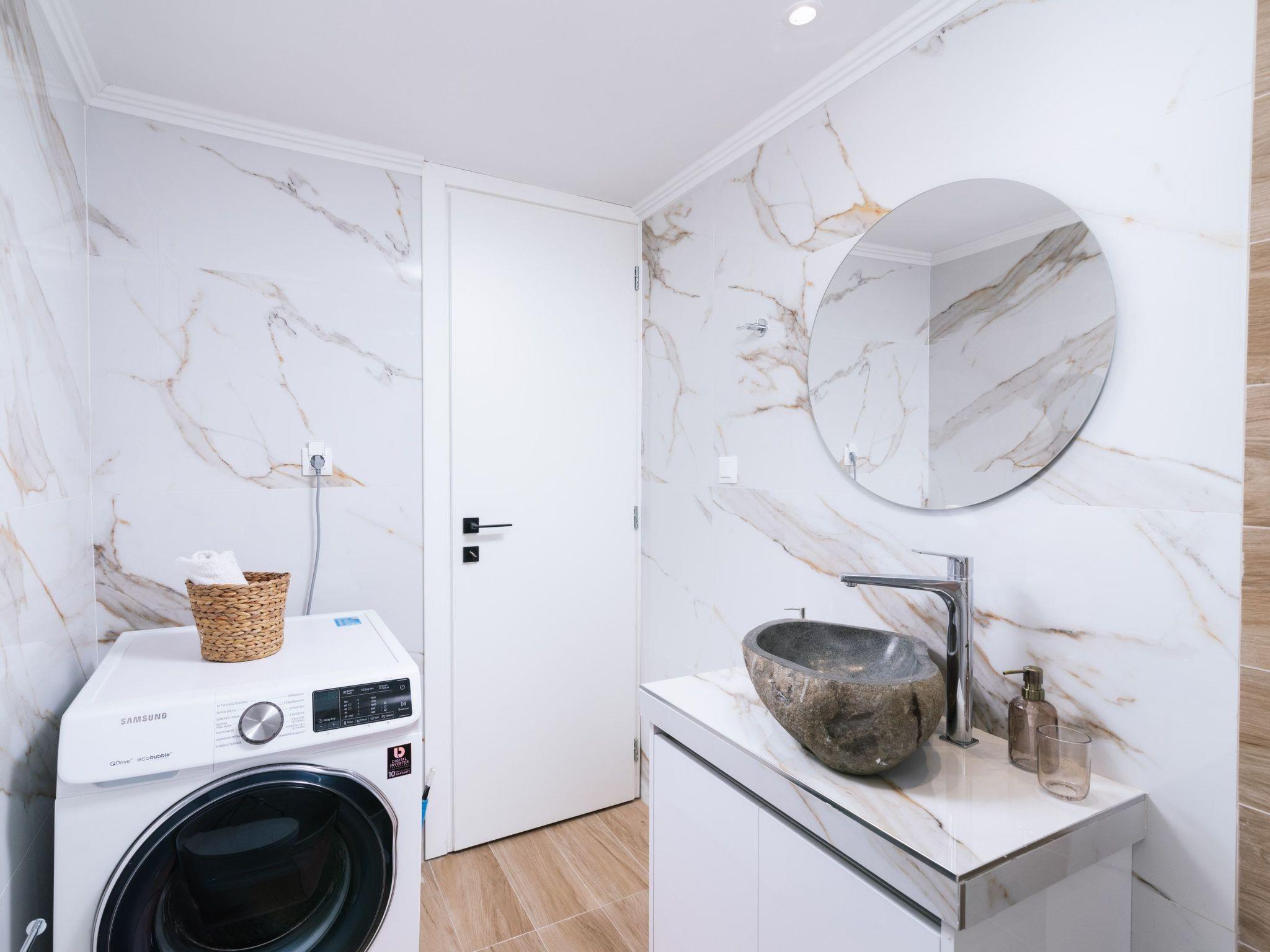 Also two bathrooms with washing machine are provided and an outdoor shower in the courtyard.