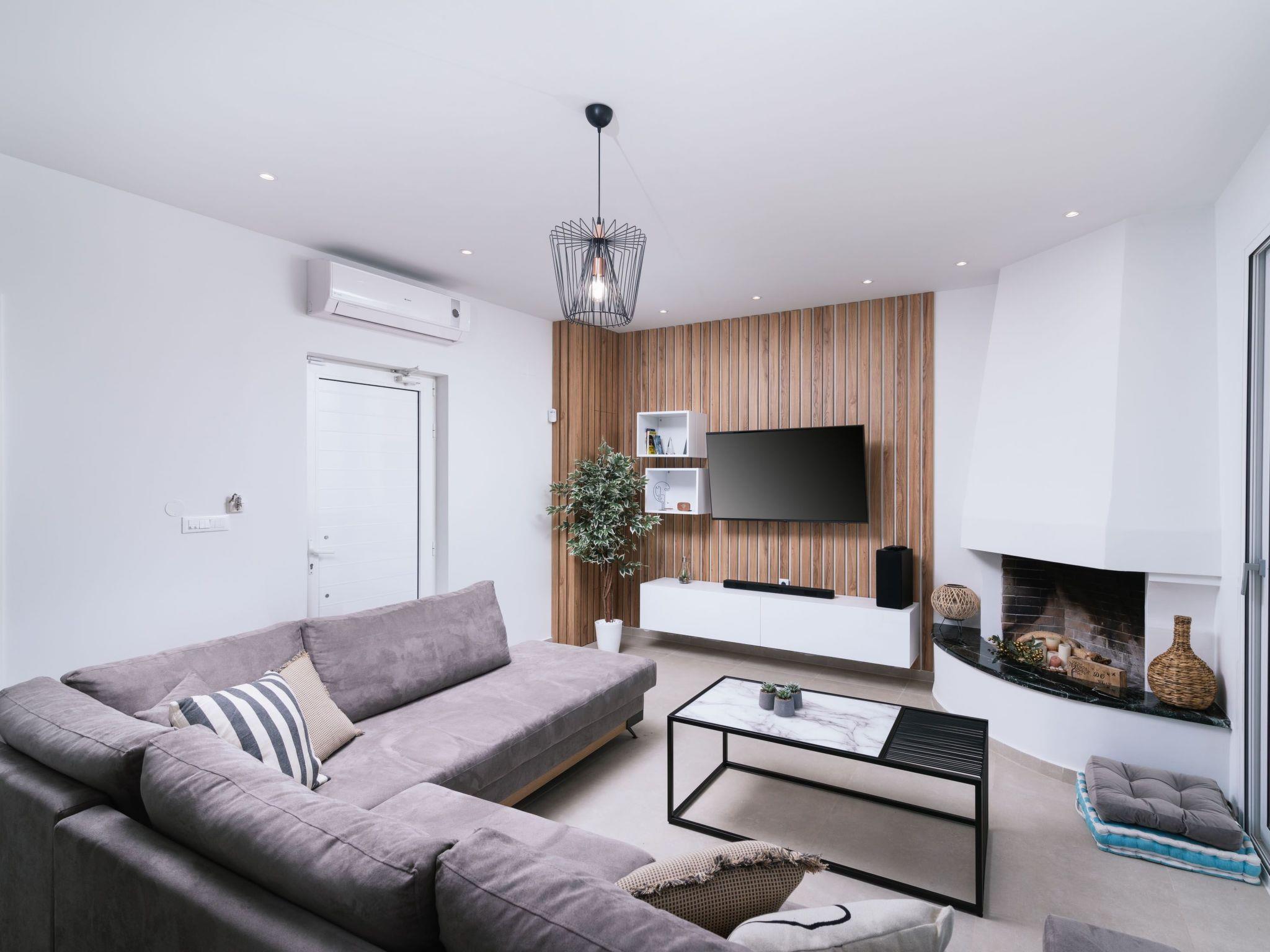 The house offers three fully equipped bedrooms with lovely panoramic sea views, an open plan living room with a fully equipped kitchen with large windows with gorgeous sea views and a big fully equipped dinning table.