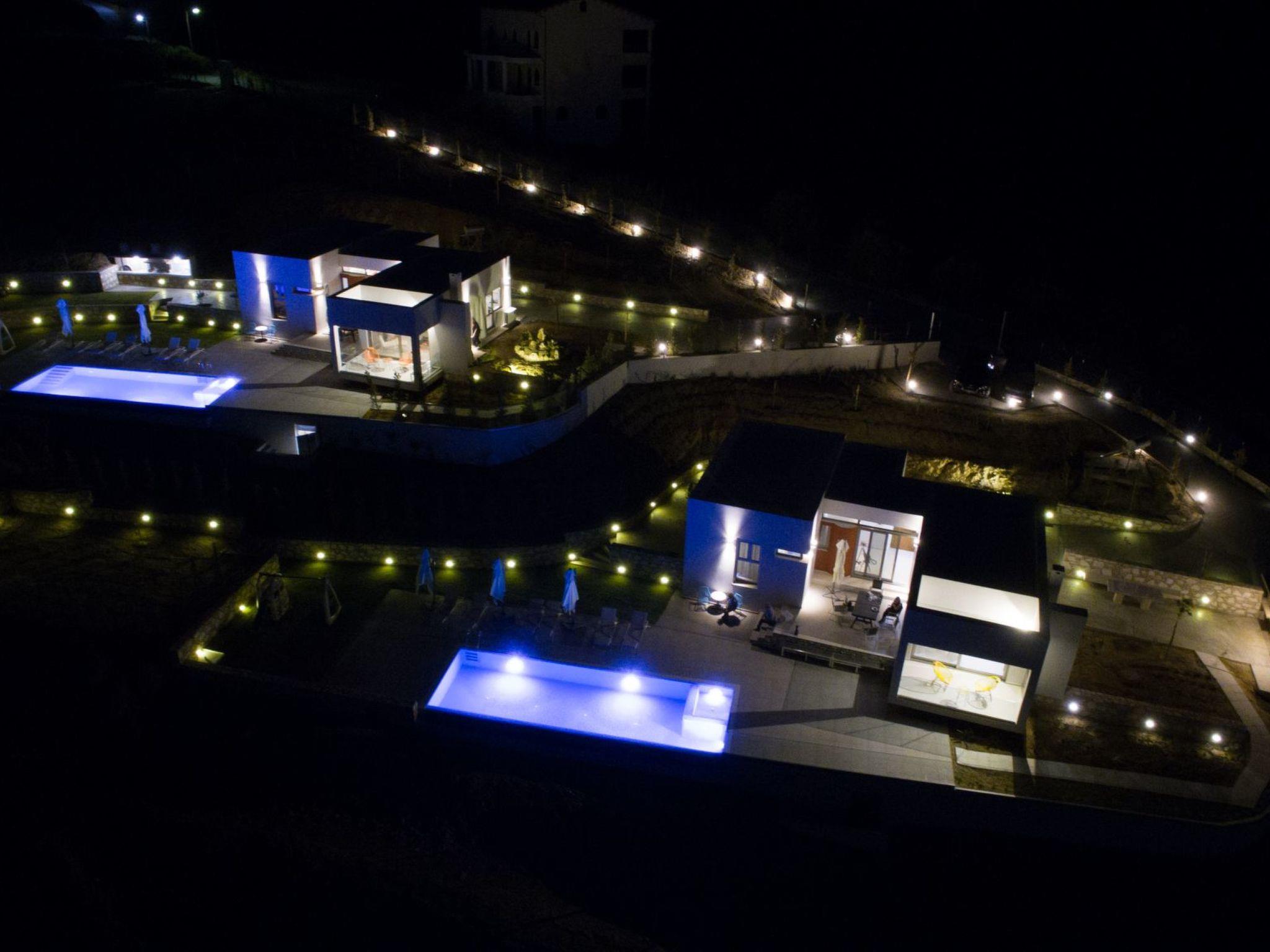Each villa has its own, 3.5 x 10 m illuminated swimming pool. The private pool is surrounded by sun loungers and sun shades. And next to the terrace is an outdoor kitchen complete with traditional stone grill. Children will appreciate the playground with a slide and swings.