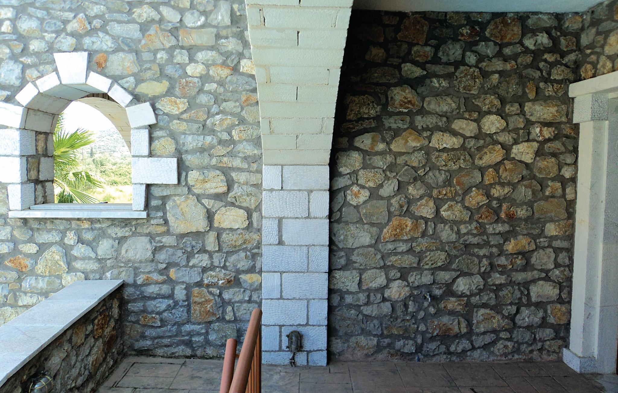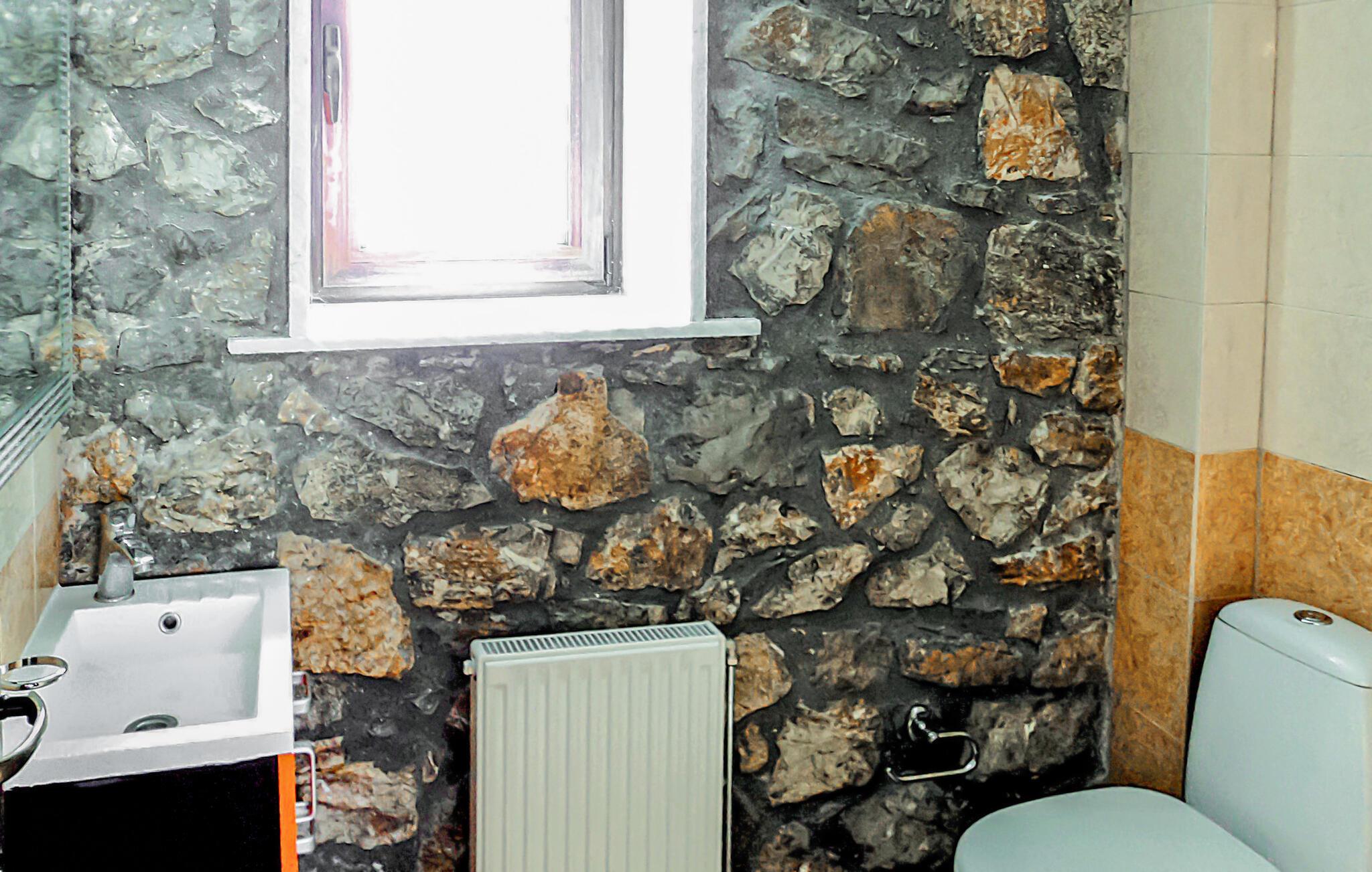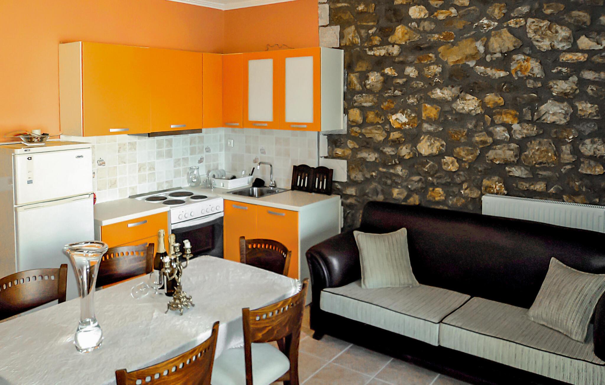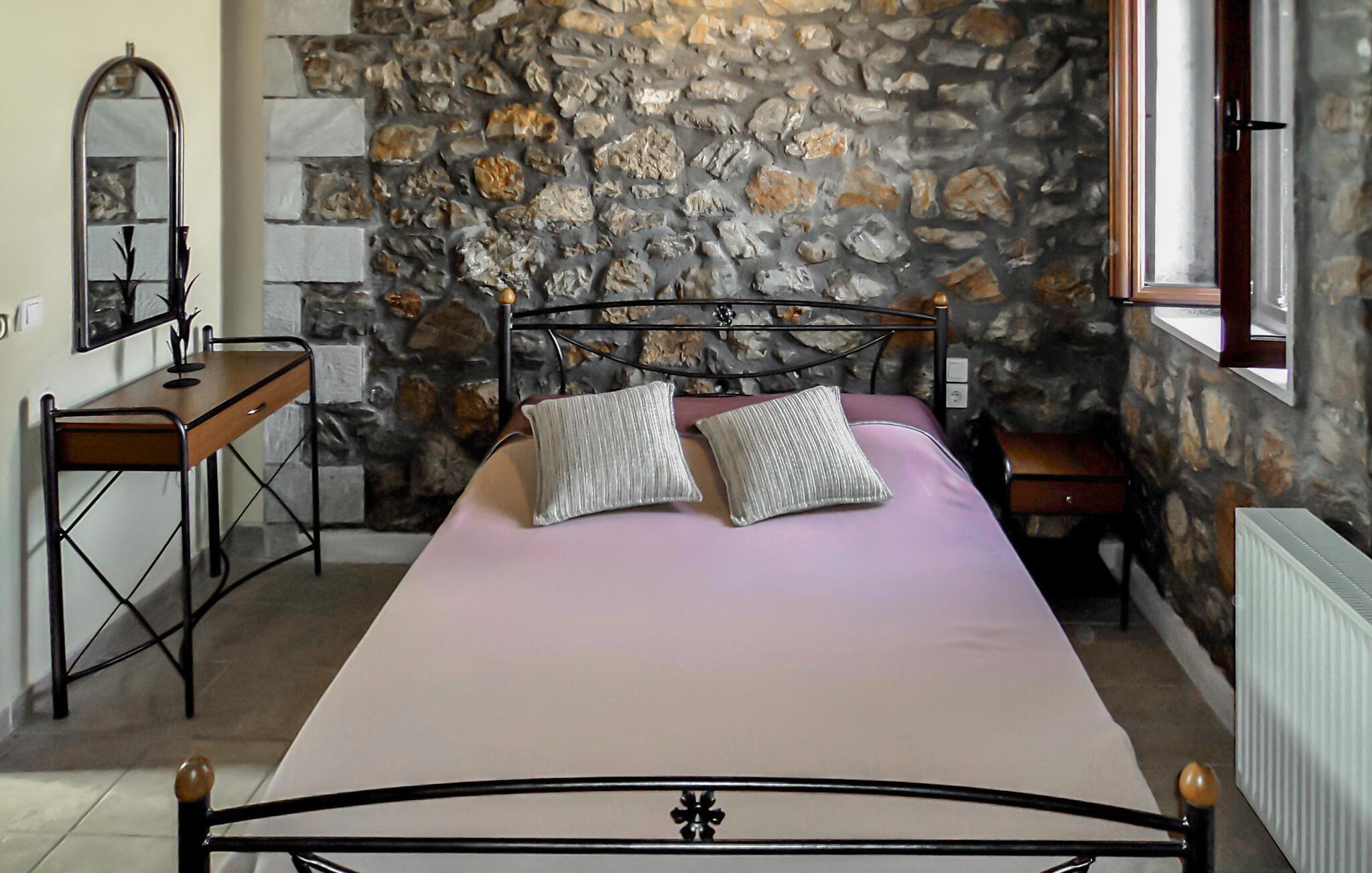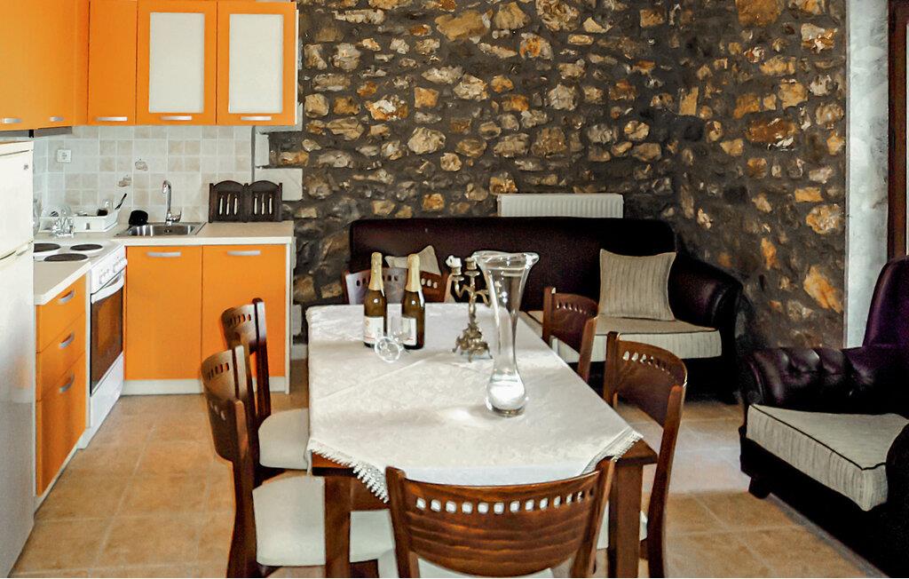 Dette hus af sten er fordelt på to etager af et af tre rækkehuse, hvis gæster deles om en swimmingpool.