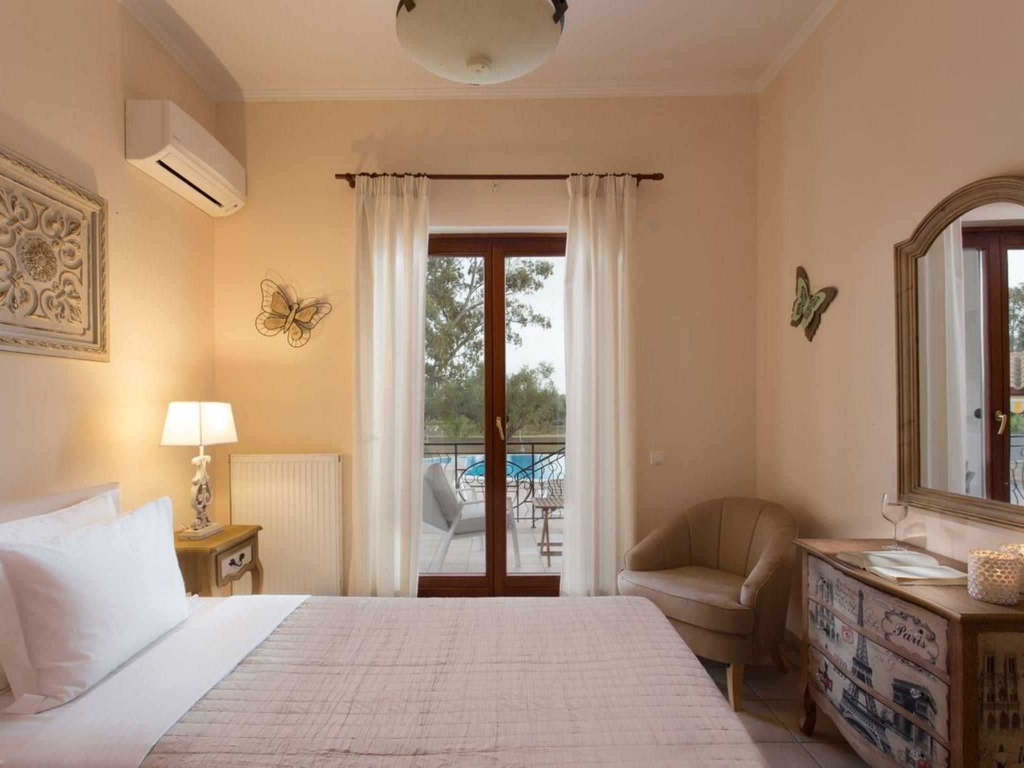 Location:Let's take you away to your own private Garden of Eden! The luxurious country house is built in the middle of an overgrown property with vineyards, olive trees, many fruit trees and flowers. The distance from the road ensures absolute peace, tranquility and privacy. The village of Agios Kirykos, in which the estate is located, is famous for its vineyards and olive groves, as well as the whole area where the most famous wineries of the island are located. There you can buy the finest wine bottles. The estate itself has a rich history, over the past 200 years, of local grape variety production from which some of the most delicious Zakynthian wines are still made in traditional ways. In the village the national poet, Dionysios Solomos - who is one of the most important poets in the world - inspired some of his most famous erotic poems. The environment in the estate is idyllic, the view to the surroundings simply wonderful and the climate very friendly to the visitor. The Mediterranean nature in the estate shows its most affectionate face as if it is eager only to delight the traveler.