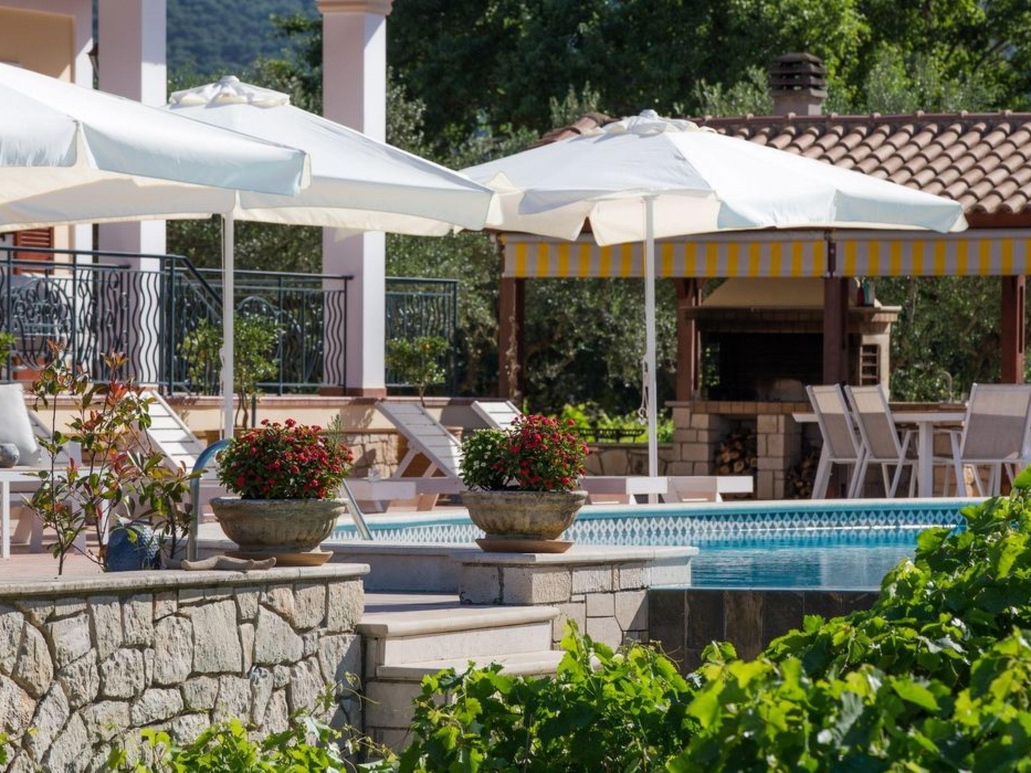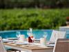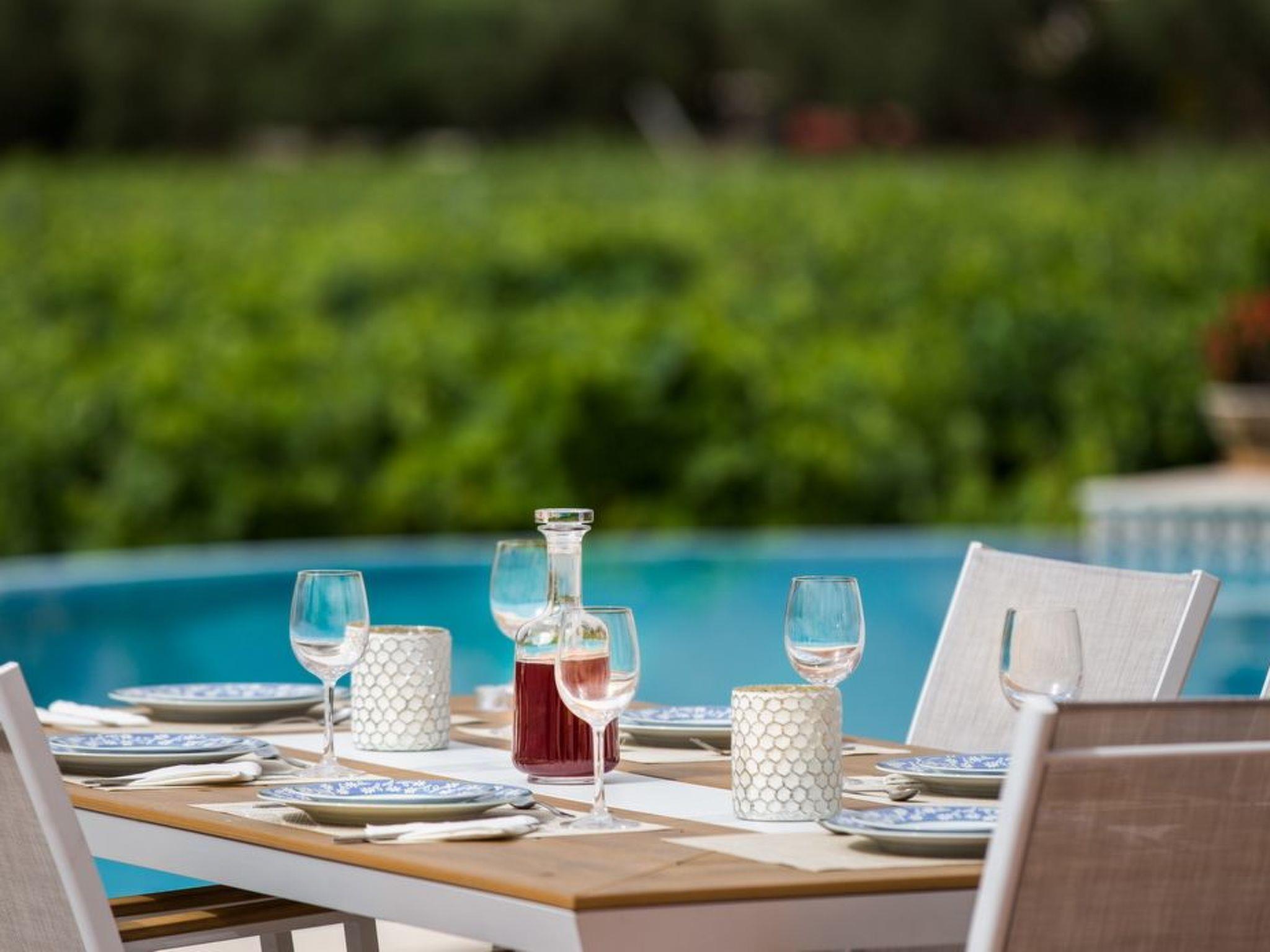 Outdoor area:The veranda of 235sqm is covered, has a dining table and a fantastic view over the pool, the lawn playground under the olive trees and the tennis court. The villa has its own independent, gorgeous infinity 120sqm pool with open-air hydro-massage.Next to the pool a large roofed BBQ is built, with dining tables for 14 persons.The terrace around the pool, ideal for events, is 600sqm.The tennis court with lighting, thus permitting playing at night, awaits you to enjoy endless hours of carefree play. Tennis equipment is provided (extra charge).Children can play on the lawn among the olives, try fruit from our hedges and explore our vegetable garden with our organic vegetables. A bicycle and jogging path 800m long leads you through the whole vineyard. Free bicycles are provided.Binoculars and telescope are provided on request.Wine tasting from our vineyard. Olive oil tasting from our own olive grove.