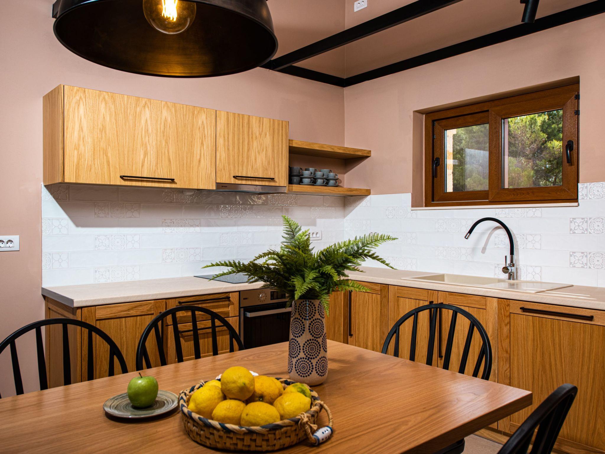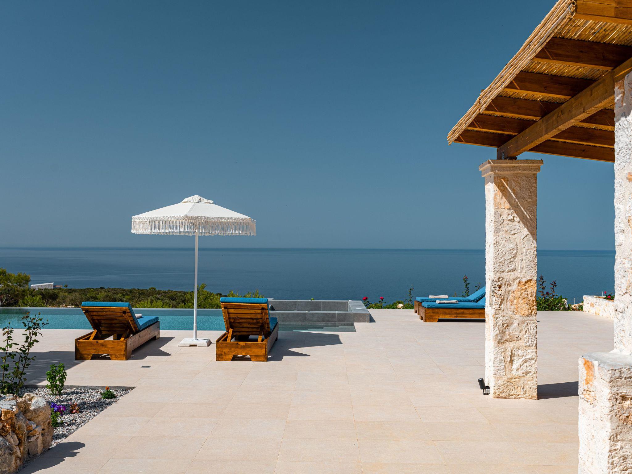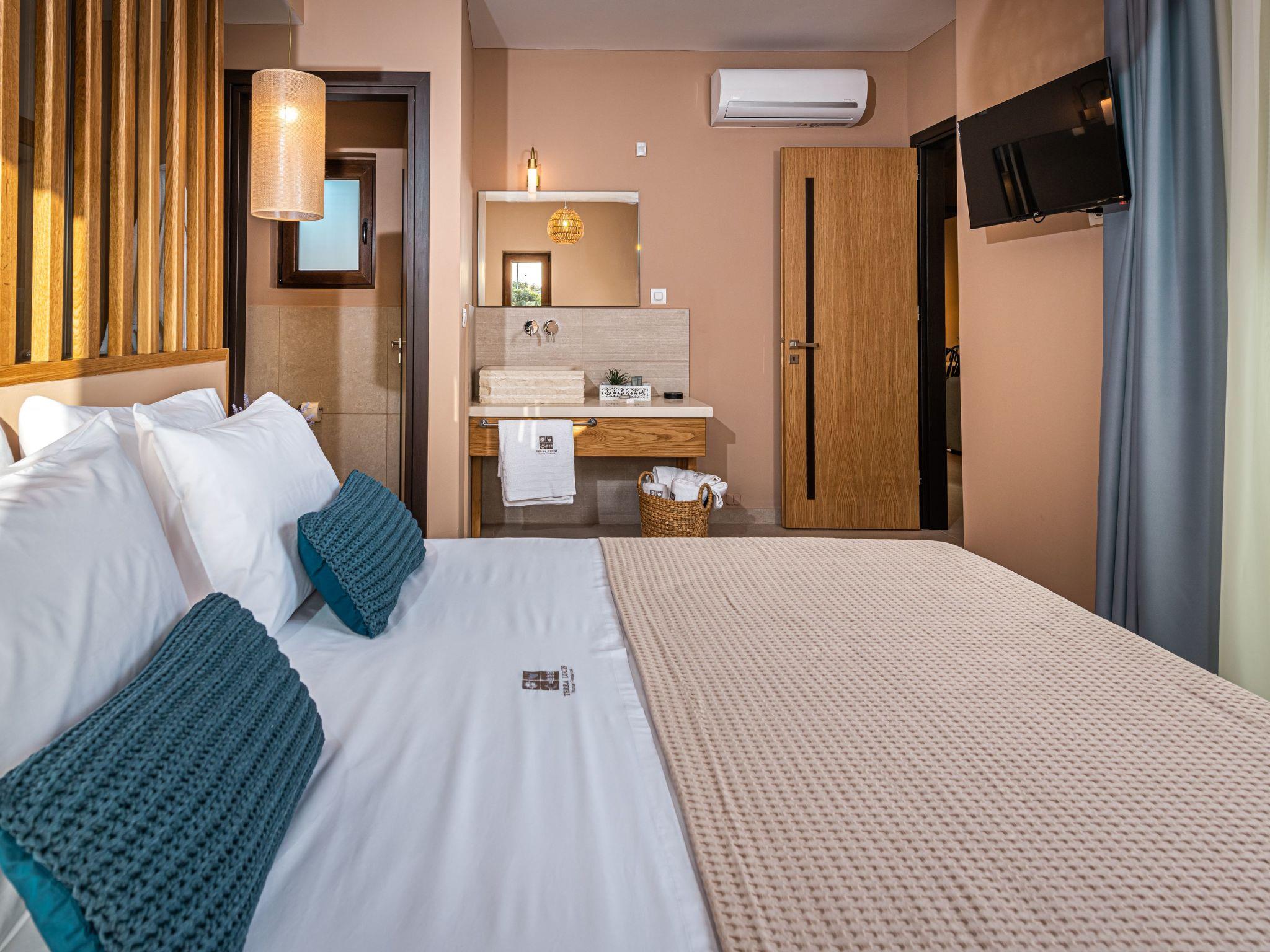 The west side of Zakynthos is the wild side of the island. Unlike the rest of the island with the endless sandy beaches, here the access to the clear blue waters of the Ionian is from a few, very specific points. One of them, Porto Limnionas, is located in the area we chose to create the Terra Lucis Mountain Residences.In this area in general and in particular near to our accommodation, the tourist development is mild and does not follow the rhythm of the major tourist resorts of the island.Here the visitor can really feel what Ionian Sea and Zakynthos means, listen to the natural sounds, smell the herbs and flowers, feel connected to the vast sea, swim under the sun or the moonlight, touch the blessed fruit of the olive tree or just enjoy the setting sun in the endless blue of the Mediterranean.There is a BBQ area with an external kitchen and garden furniture as well as sunbeds and umbrellas in the outside area next to the pool.The private infinity pool also features an outside jacuzzi and an outdoor shower in the pool area.There is enough parking space in the property and two cars can be parked in a shaded place.Mare Villa is a two bedroomed 107 square meters villa situated in a 2,75 acres plot of land.It consists of two master bedrooms one with a king size bed and the second with two single beds that can be made up as a double with a topper,both with ensuite bathrooms and a living room with a fireplace and two sofa beds. There is a safe box in each room which is bolted in the wardrobe.There is a fully equipped kitchen and a shared bathroom next to the living room.All bathrooms have showers. Both living room and dining area are in the same room, they have access to the outdoor area and a view to the pool and the sea.The dining area indoors and outdoors can sit 6 people. Mare Villa is situated on the ground floor and can accommodate up to 6 people plus a baby in a baby cot provided by the property.All rooms have Smart TVs, access to the terrace, sea view and individually operated A/Cs.There is a BBQ area with an external kitchen and garden furniture as well as sunbeds and umbrellas in the outside area next to the pool.The private infinity pool also features an outside jacuzzi and an outdoor shower in the pool area.There is enough parking space in the property and two cars can be parked in a shaded place.Terra Lucis Mountain Residences - Mare Villa is situated just off the traditional village of Agios Leon and only 800 meters from the famous Limnionas Beach, and the Porto Limnionas Tavern one of the most renowned eateries on the whole island, a place visited my practically everyone who wishes to eat traditional Greek food and watch an amazing sunset.Agios Leon village is just 3 km away where you can find a mini market, a meat market, traditional bakeries, a tourist shop, a gas station with an info point and an olive press where you can visit and learn how the locals make their virgin olive oil. Agios Leon also offers traditional and organic products such as wine, olive oil, dairy as well as local handmade ornaments and woven.When Great Britain ceded Zakynthos and the rest of the Ionian Islands , to the Kingdom of Greece in 1864, it was agreed between the two States that there should be no public land on the islands and that the land should be used by the inhabitants, like it used to be during the Venetian occupation three centuries ago.Using this right, our family started to cultivate wheat and olives, collect resin from the pine forest and also built a lime kiln in this very piece of land that our property is currently situated.The bonds of our ancestors with this area are very strong. The love of the younger generations for the land that nourished our family for many years is also strong.The excellent microclimate of the area, which makes it sunny and quite warm, even in the winter months, combined with its special flora, is the main reason for choosing this location to create an environmentally friendly accommodation ideal for the visitor who seeks contact with nature away from the roar of mass tourism.It is worth noting that an endemic flower called Limonium Zacynthium grows in the area near the sea of Limnionas. This small flower can not be found anywhere else on the planet.