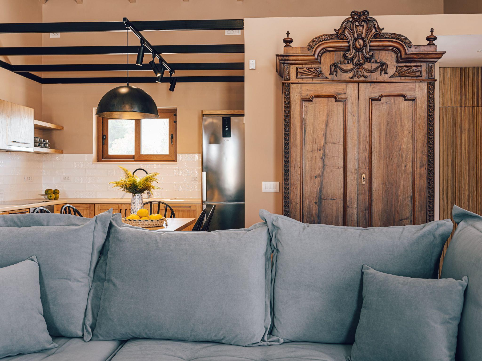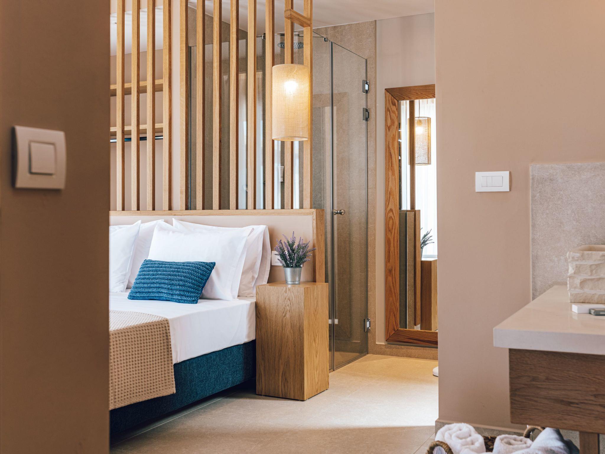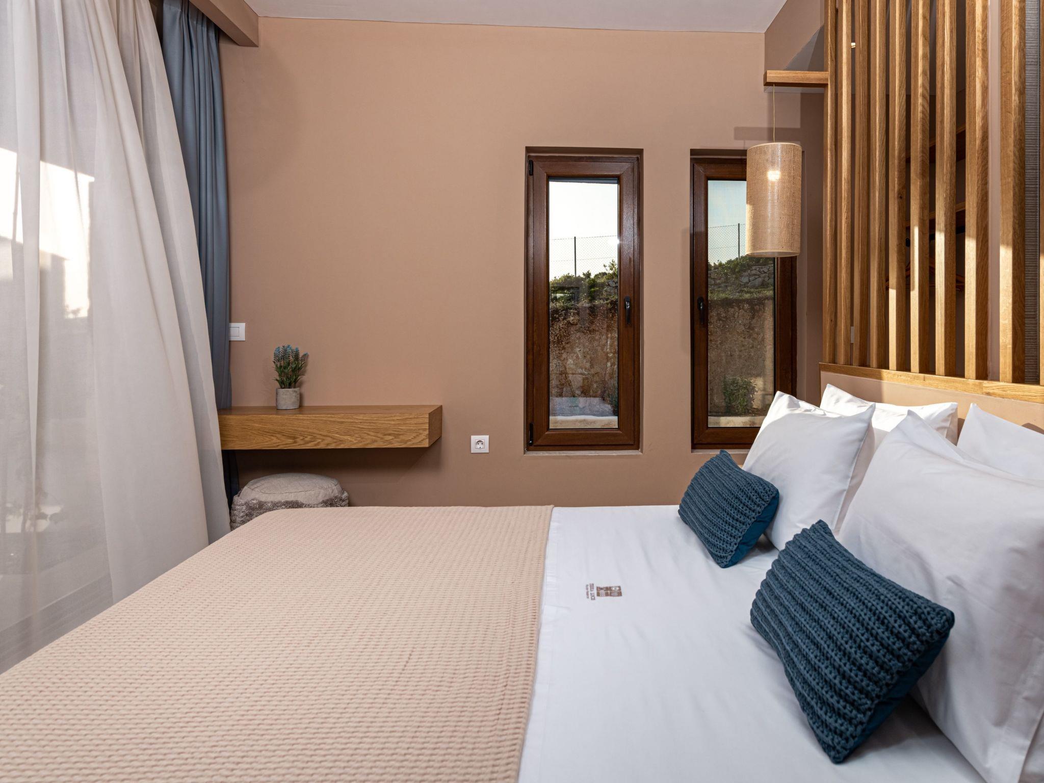 The west side of Zakynthos is the wild side of the island. Unlike the rest of the island with the endless sandy beaches, here the access to the clear blue waters of the Ionian is from a few, very specific points. One of them, Porto Limnionas, is located in the area we chose to create the Terra Lucis Mountain Residences.In this area in general and in particular near to our accommodation, the tourist development is mild and does not follow the rhythm of the major tourist resorts of the island.Here the visitor can really feel what Ionian Sea and Zakynthos means, listen to the natural sounds, smell the herbs and flowers, feel connected to the vast sea, swim under the sun or the moonlight, touch the blessed fruit of the olive tree or just enjoy the setting sun in the endless blue of the Mediterranean.There is a BBQ area with an external kitchen and garden furniture as well as sunbeds and umbrellas in the outside area next to the pool.The private infinity pool also features an outside jacuzzi and an outdoor shower in the pool area.There is enough parking space in the property and two cars can be parked in a shaded place.Mare Villa is a two bedroomed 107 square meters villa situated in a 2,75 acres plot of land.It consists of two master bedrooms one with a king size bed and the second with two single beds that can be made up as a double with a topper,both with ensuite bathrooms and a living room with a fireplace and two sofa beds. There is a safe box in each room which is bolted in the wardrobe.There is a fully equipped kitchen and a shared bathroom next to the living room.All bathrooms have showers. Both living room and dining area are in the same room, they have access to the outdoor area and a view to the pool and the sea.The dining area indoors and outdoors can sit 6 people. Mare Villa is situated on the ground floor and can accommodate up to 6 people plus a baby in a baby cot provided by the property.All rooms have Smart TVs, access to the terrace, sea view and individually operated A/Cs.There is a BBQ area with an external kitchen and garden furniture as well as sunbeds and umbrellas in the outside area next to the pool.The private infinity pool also features an outside jacuzzi and an outdoor shower in the pool area.There is enough parking space in the property and two cars can be parked in a shaded place.Terra Lucis Mountain Residences - Mare Villa is situated just off the traditional village of Agios Leon and only 800 meters from the famous Limnionas Beach, and the Porto Limnionas Tavern one of the most renowned eateries on the whole island, a place visited my practically everyone who wishes to eat traditional Greek food and watch an amazing sunset.Agios Leon village is just 3 km away where you can find a mini market, a meat market, traditional bakeries, a tourist shop, a gas station with an info point and an olive press where you can visit and learn how the locals make their virgin olive oil. Agios Leon also offers traditional and organic products such as wine, olive oil, dairy as well as local handmade ornaments and woven.When Great Britain ceded Zakynthos and the rest of the Ionian Islands , to the Kingdom of Greece in 1864, it was agreed between the two States that there should be no public land on the islands and that the land should be used by the inhabitants, like it used to be during the Venetian occupation three centuries ago.Using this right, our family started to cultivate wheat and olives, collect resin from the pine forest and also built a lime kiln in this very piece of land that our property is currently situated.The bonds of our ancestors with this area are very strong. The love of the younger generations for the land that nourished our family for many years is also strong.The excellent microclimate of the area, which makes it sunny and quite warm, even in the winter months, combined with its special flora, is the main reason for choosing this location to create an environmentally friendly accommodation ideal for the visitor who seeks contact with nature away from the roar of mass tourism.It is worth noting that an endemic flower called Limonium Zacynthium grows in the area near the sea of Limnionas. This small flower can not be found anywhere else on the planet.