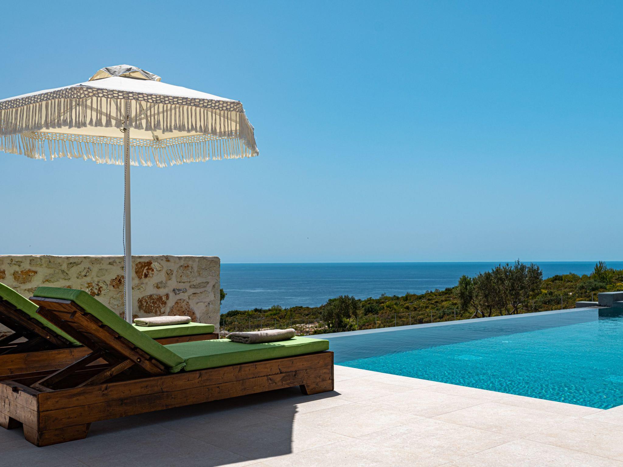 Discover the serene beauty of Aether Villa, a luxurious two-bedroom villa sprawling over 107 square meters, nestled within a 5.5 acres plot of land. Providing an impeccable blend of comfort and elegance, this villa is designed to accommodate up to 6 people plus a baby, making it the perfect retreat for families or groups seeking a tranquil getaway. With its prime location and breathtaking views of the sea, Aether Villa promises an unforgettable stay.Inside, Aether Villa boasts two master bedrooms, each with ensuite bathrooms, ensuring privacy and convenience for all guests. The first bedroom is furnished with a king-size bed, while the second contains two single beds that can be transformed into a double. Both rooms are equipped with Smart TVs, safe boxes bolted in the wardrobes, and individual access to the terrace, offering stunning sea views and individually operated A/Cs for maximum comfort. The living room, featuring a cozy fireplace and two sofa beds, alongside the fully equipped kitchen and an additional shared bathroom, provide ample space and amenities to ensure a pleasant stay.Step outside to discover the villa's external wonders, including a private infinity pool complemented by an outdoor jacuzzi and shower, promising refreshing moments under the sun. The BBQ area, complete with an external kitchen and garden furniture, invites guests to enjoy al fresco dining while basking in the beauty of the surroundings. With sunbeds, umbrellas, and ample parking space, including shaded spots for two cars, every detail is meticulously crafted to enhance your outdoor experience.Nestled just off the quaint village of Agios Leon, Aether Villa's enviable location offers easy access to the pristine Limnionas Beach, only 800 meters away, and the famous Porto Limnionas Tavern. Immerse yourself in the local culture by exploring Agios Leon village, where traditional bakeries, a mini market, and an olive press await. Indulge in the taste of traditional and organic products such as wine, olive oil, and dairy, enhancing your stay with authentic Greek experiences.Aether Villa invites you to embrace the luxury of tranquility and the excitement of exploration. Whether seeking relaxation by the private pool, indulging in gourmet outdoor meals, or venturing into the charm of Agios Leon and the beauty of Limnionas Beach, this villa offers the perfect backdrop for a memorable holiday. Experience the epitome of Greek hospitality and the warmth of the sun in a place where every detail is crafted for your delight.