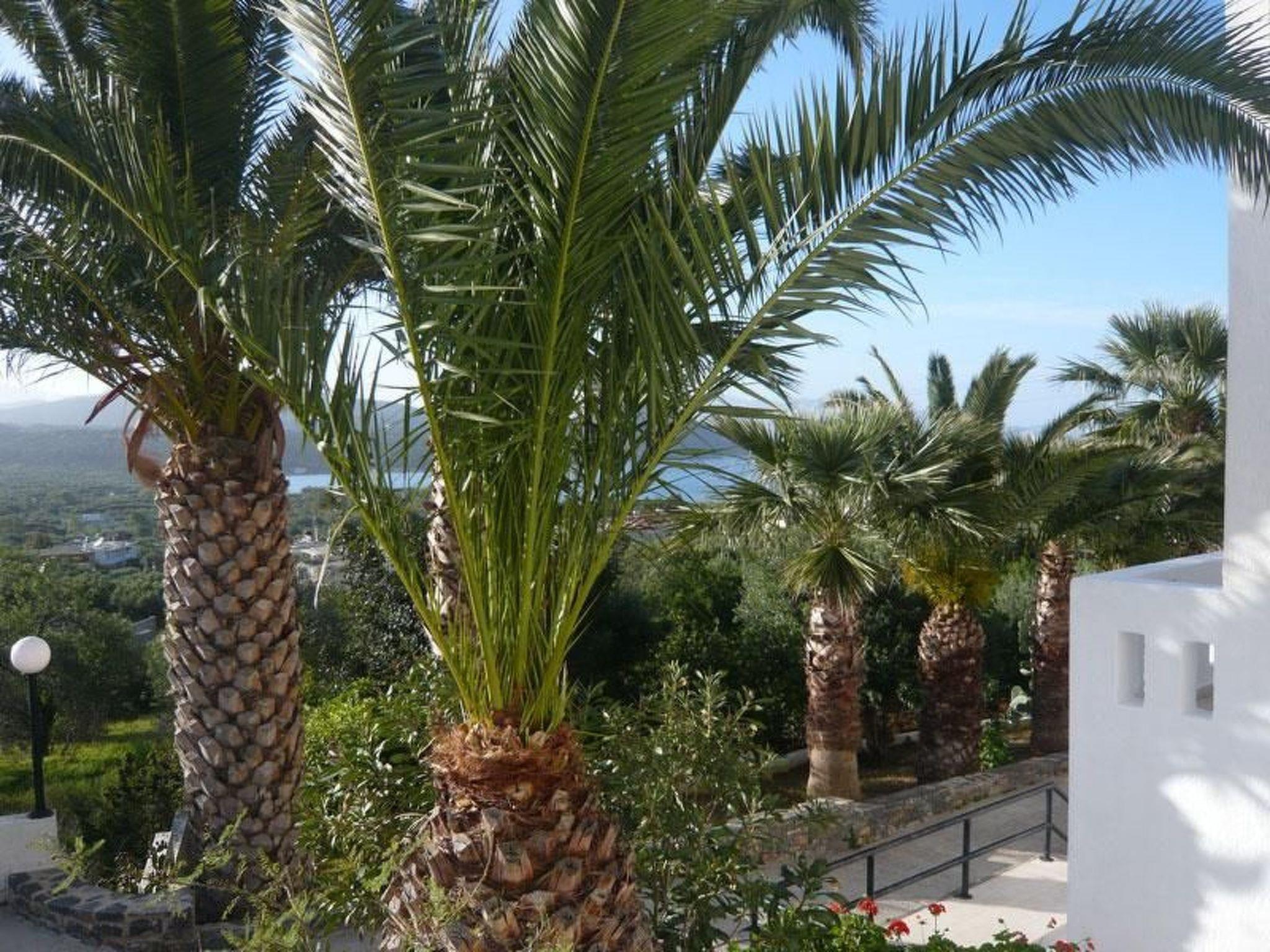 The terraced garden, which is planted with all kinds of colourful flowers and a whole range of different fruit trees (mandarin, orange, apricot, lemon, fig, olive, banana and many more), borders on large pieces of rock which blend in harmoniously, giving the house a majestic appearance. The swimming pool (7 m x 12 m) with children's pool has been generously laid out over an area of approx. 500 square metres. The variety of views and the magic of the landscape never cease to amaze and captivate you. The guests of this property are spoilt with a unique panoramic view of the countless bays of the Mirabello Gulf, all the way to Agios Nikolaos. Tables and chairs are available on the terraces and balconies, all covered with pergolas. In the garden there is a traditional Cretan brick oven with a barbecue area where you can prepare bread and various Greek dishes. Next to it is a marble table with benches. Here you can savour the food you have just prepared under the shade of the trees and the fragrant air. Another pleasure is the marvellous view of the sea from up here. This is an image that will stay with you for a long time. The property is fenced. Your children can run around on this very large property without any worries (there is also a sandpit).