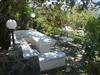 The terraced garden, which is planted with all kinds of colourful flowers and a whole range of different fruit trees (mandarin, orange, apricot, lemon, fig, olive, banana and many more), borders on large pieces of rock which blend in harmoniously, giving the house a majestic appearance. The swimming pool (7 m x 12 m) with children's pool has been generously laid out over an area of approx. 500 square metres. The variety of views and the magic of the landscape never cease to amaze and captivate you. The guests of this property are spoilt with a unique panoramic view of the countless bays of the Mirabello Gulf, all the way to Agios Nikolaos. Tables and chairs are available on the terraces and balconies, all covered with pergolas. In the garden there is a traditional Cretan brick oven with a barbecue area where you can prepare bread and various Greek dishes. Next to it is a marble table with benches. Here you can savour the food you have just prepared under the shade of the trees and the fragrant air. Another pleasure is the marvellous view of the sea from up here. This is an image that will stay with you for a long time. The property is fenced. Your children can run around on this very large property without any worries (there is also a sandpit).