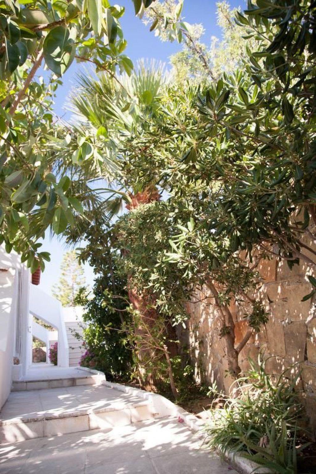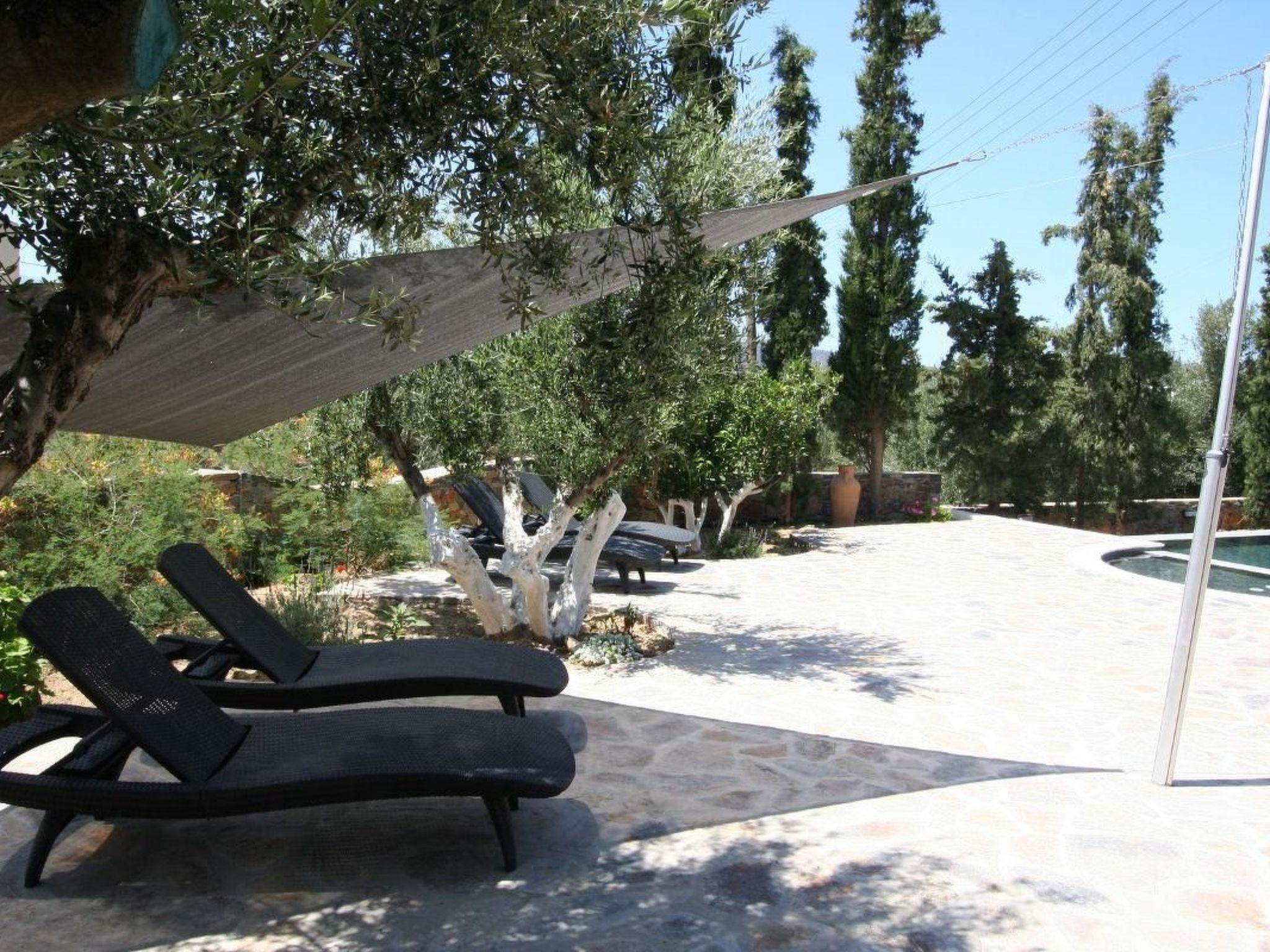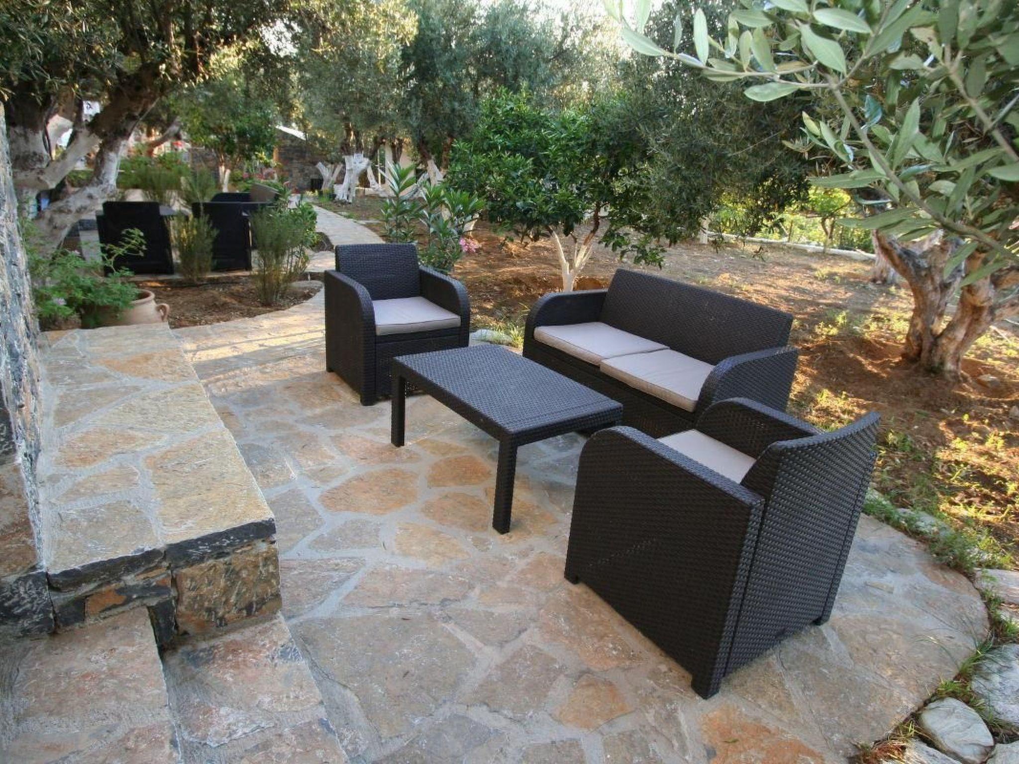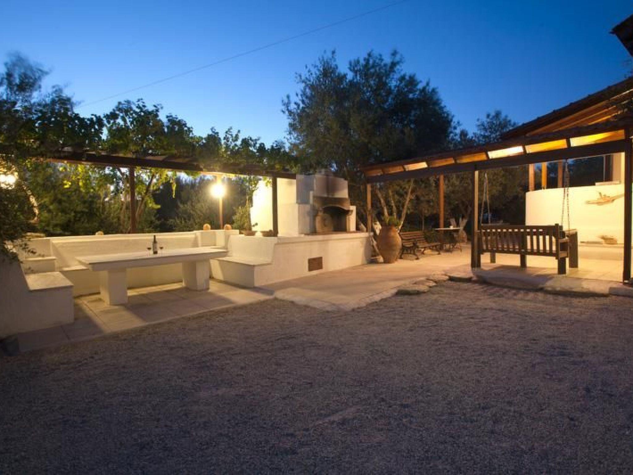 This apartment provides two bedrooms, one with two single beds (90 x 200cm), the other with a double bed (160 x 200cm). There are also bedside tables, a wardrobe and a mirror with a stool. The living room provides a table, chairs and a sofa, which can also be used as a bed for a fifth person, with access to the generous terrace with a table and chairs. The kitchen is separated visually from the living room by a low wall and is equipped with wall and floor cupboards, a sink, fridge, coffee machine, stove with electric rings, and ample cutlery and crockery. The bathroom has a shower, toilet and washbasin. There is a second terrace to the rear of the house, right in front of a colourful oasis of flowers.